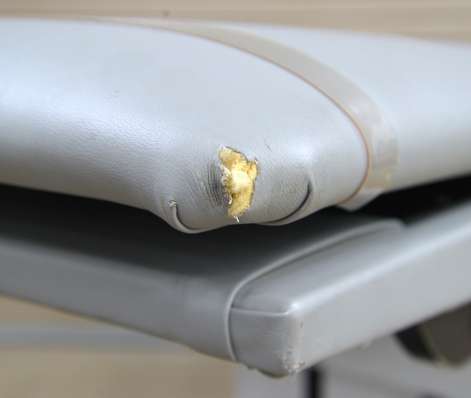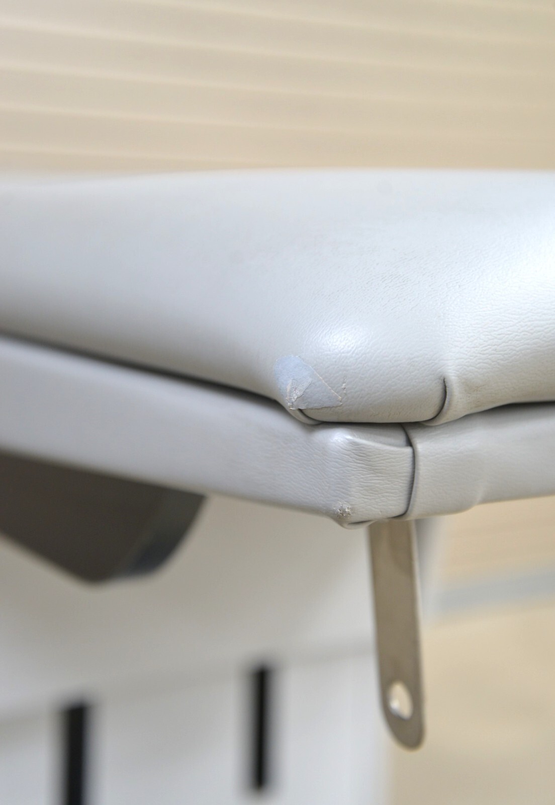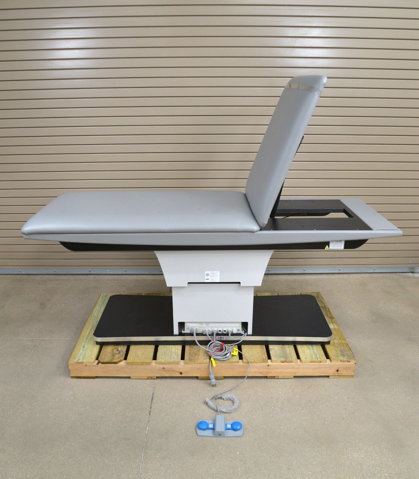 This treatment table is in good working condition. The foot switch and all manual table levers adjust the table properly.  The upholstery is in good condition with the exception of a couple small tares associated with previous use and has some shipping damages (see photos). There is a missing bracket for the paper dispenser and cutter. Includes a foot pedal and power cord. This unit comes with a 30 day money back guarantee! Includes everything in the pictures and nothing else.