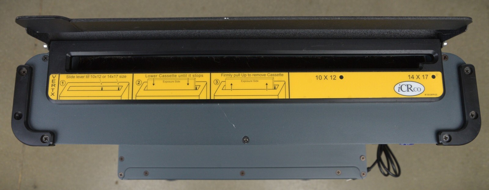 This iCRco Vertx Digital X-Ray Processor came from a working environment and is in good condition. This unit powers on properly. The cassette slot is clean and in good condition. The over all cosmetic condition is good with the exception of a few minor scuff marks from previous use (see photos). This unit comes with a 30 day satisfaction guarantee. Includes everything in the pictures and nothing else.