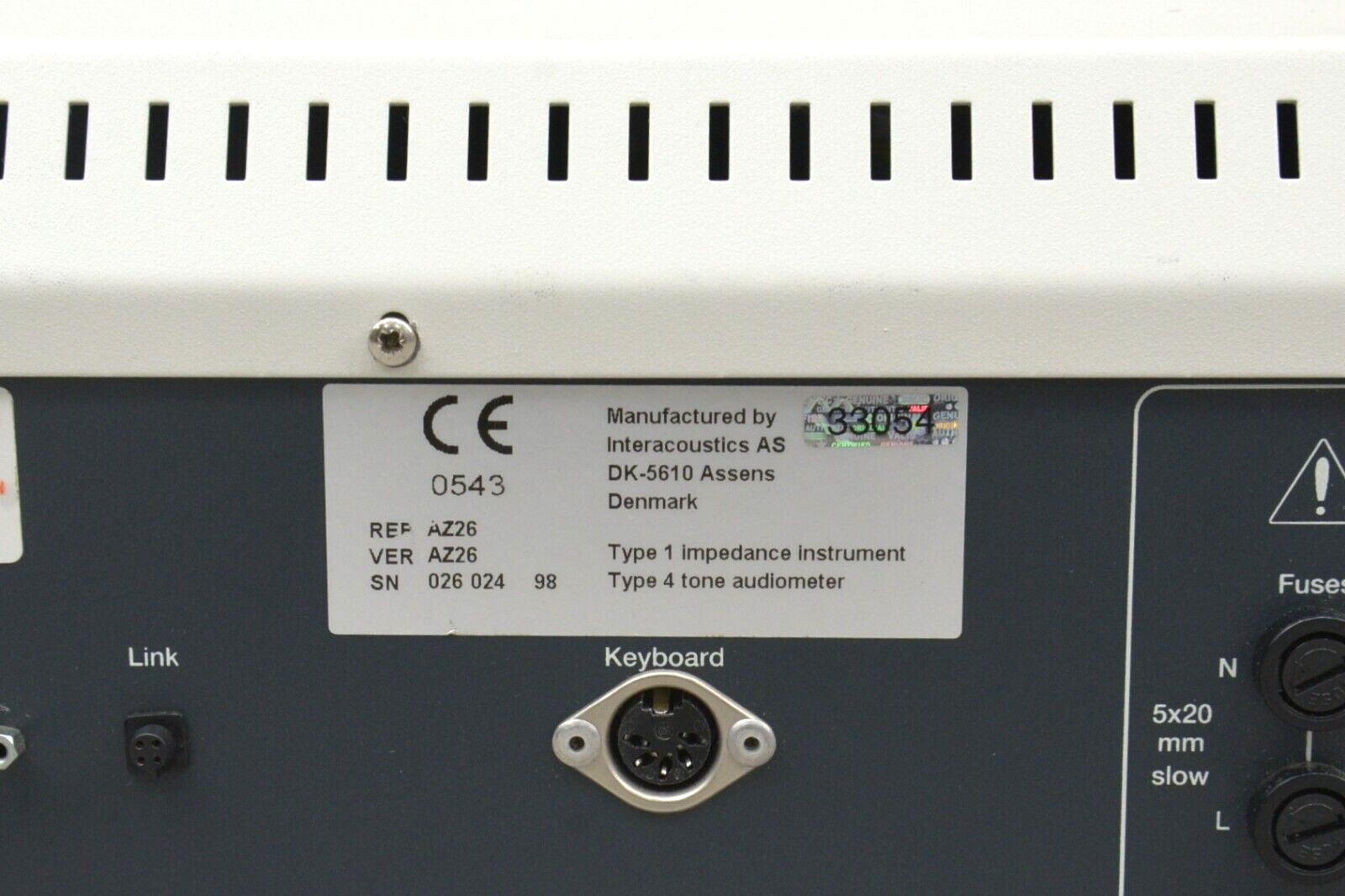 This Interacoustics AZ26 Clinical Audiometer is being sold for parts as-is. The unit powers on, but is having a problem measuring Tympanometry. For this reason, it is being offered AS-IS for parts or repair only. The unit is in good cosmetic condition. All connection points are clean and in good condition. Includes everything in the pictures and nothing else.