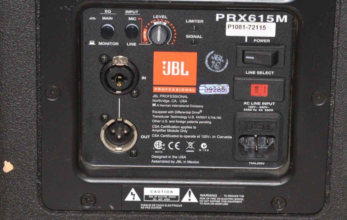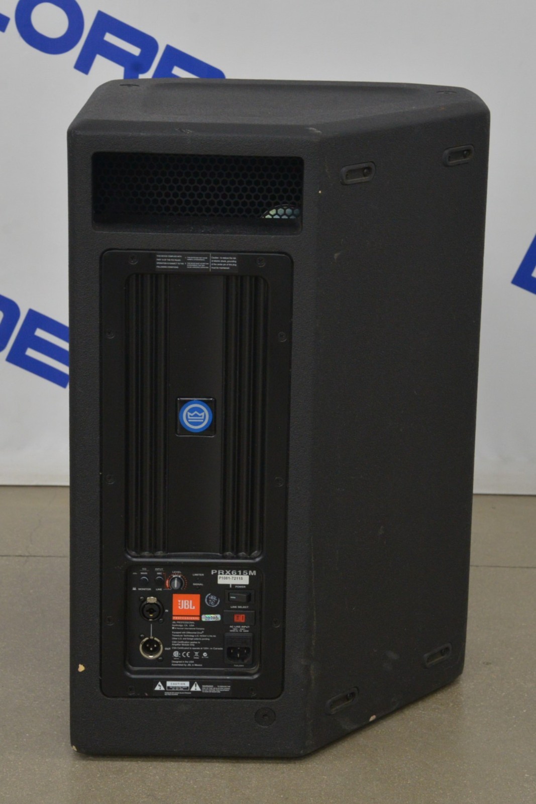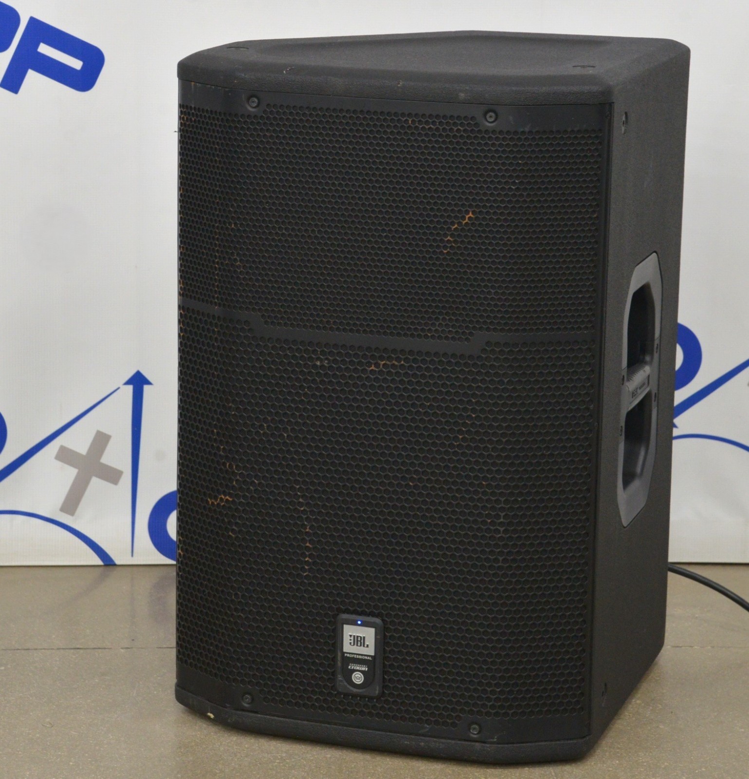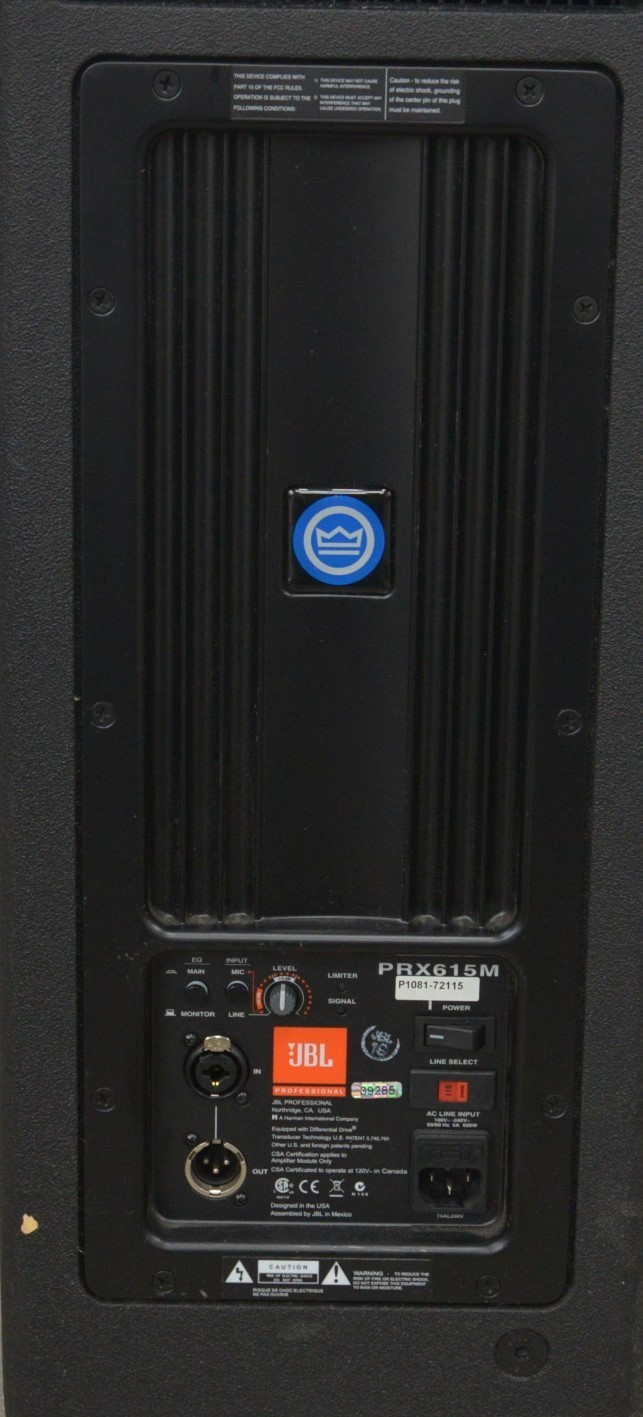 This JBL PRX-615M 2-Way Self-Powered Professional Loudspeaker is in good working condition. This unit powers on properly. This unit produces a loud, high quality sound from both bass and treble. This system is an active speaker using a digital signal processor. The audio input/output selections work properly and the volume dial responds to selection. The connections are clean and in good condition. There are minor scuff marks from previous use (see photos). This unit comes with a 30 day satisfaction guarantee. Includes everything displayed in the photos and nothing else.