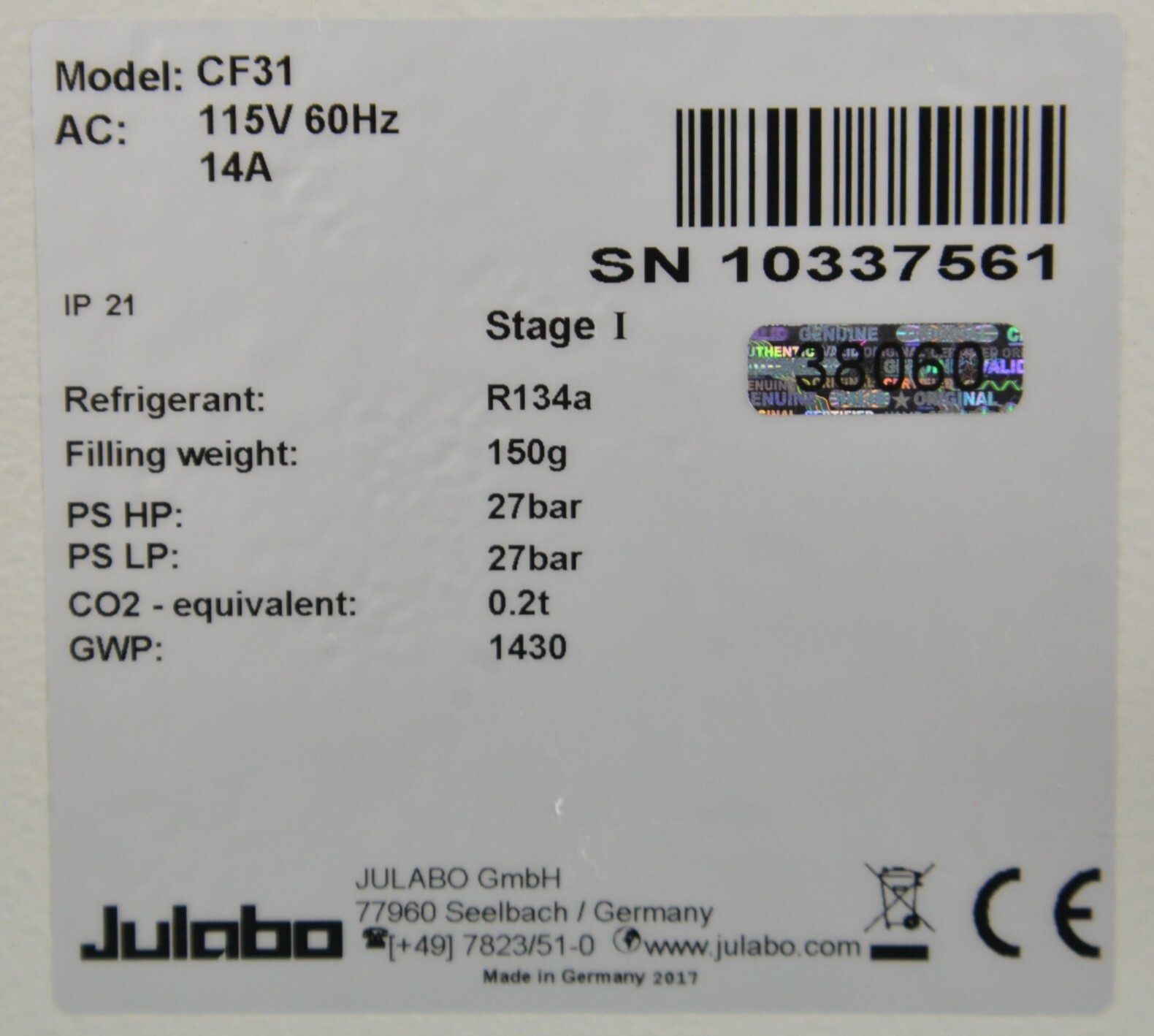 Julabo CF31 Cryo-Compact Refrigerated & Heating Circulator