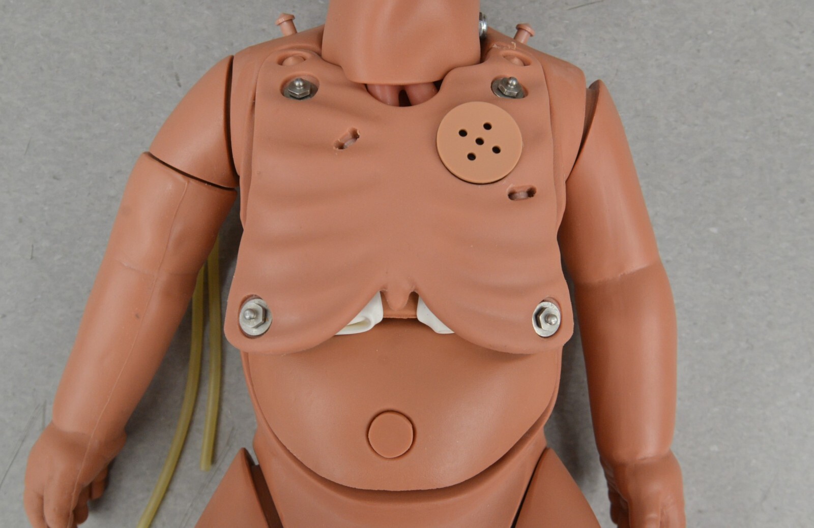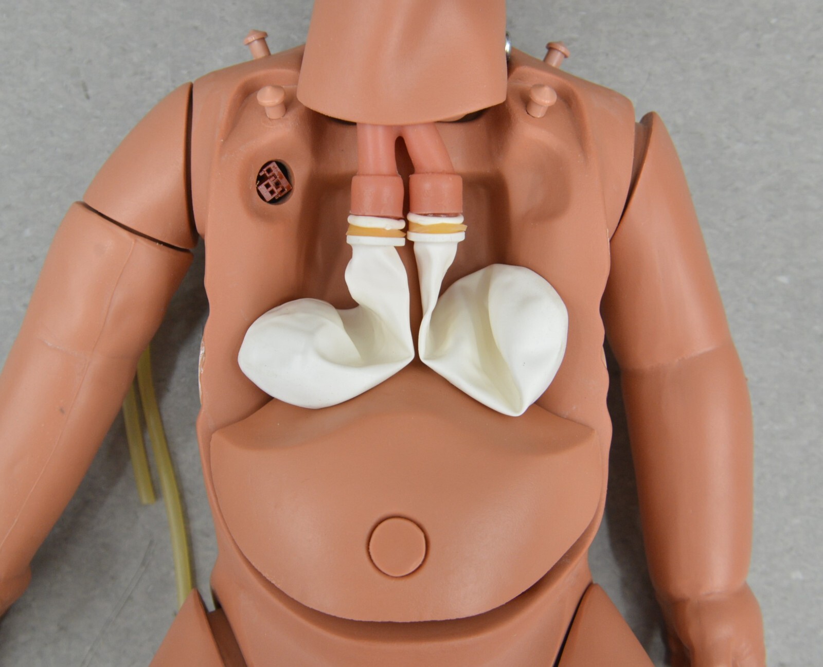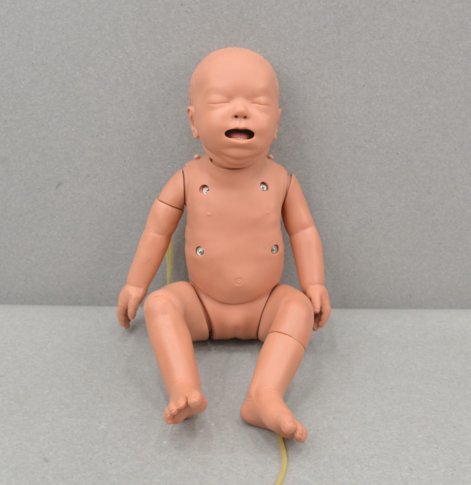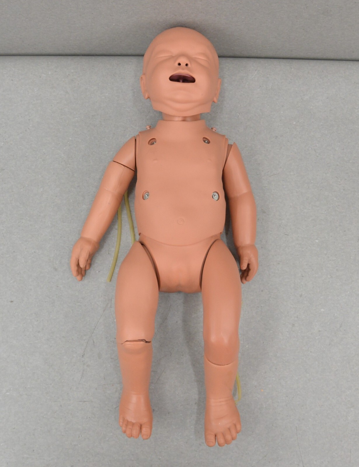 ThisLaerdal Nursing Baby Trainer Manikin Tan came from a working environment and is in great cosmetic condition. The included accessories are clean and in good condition as well. The connections are clean and in good condition. There are minor scuff marks from previous use (see photos). This unit comes with a 30 day satisfaction guarantee. Includes everything in the pictures and nothing else.