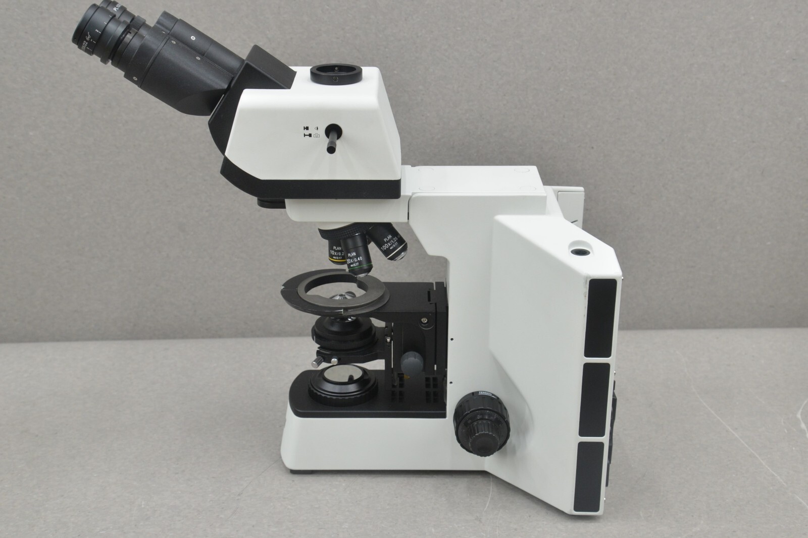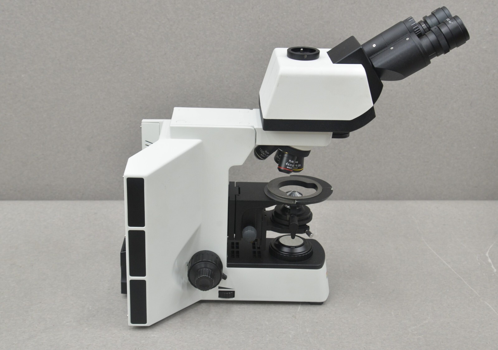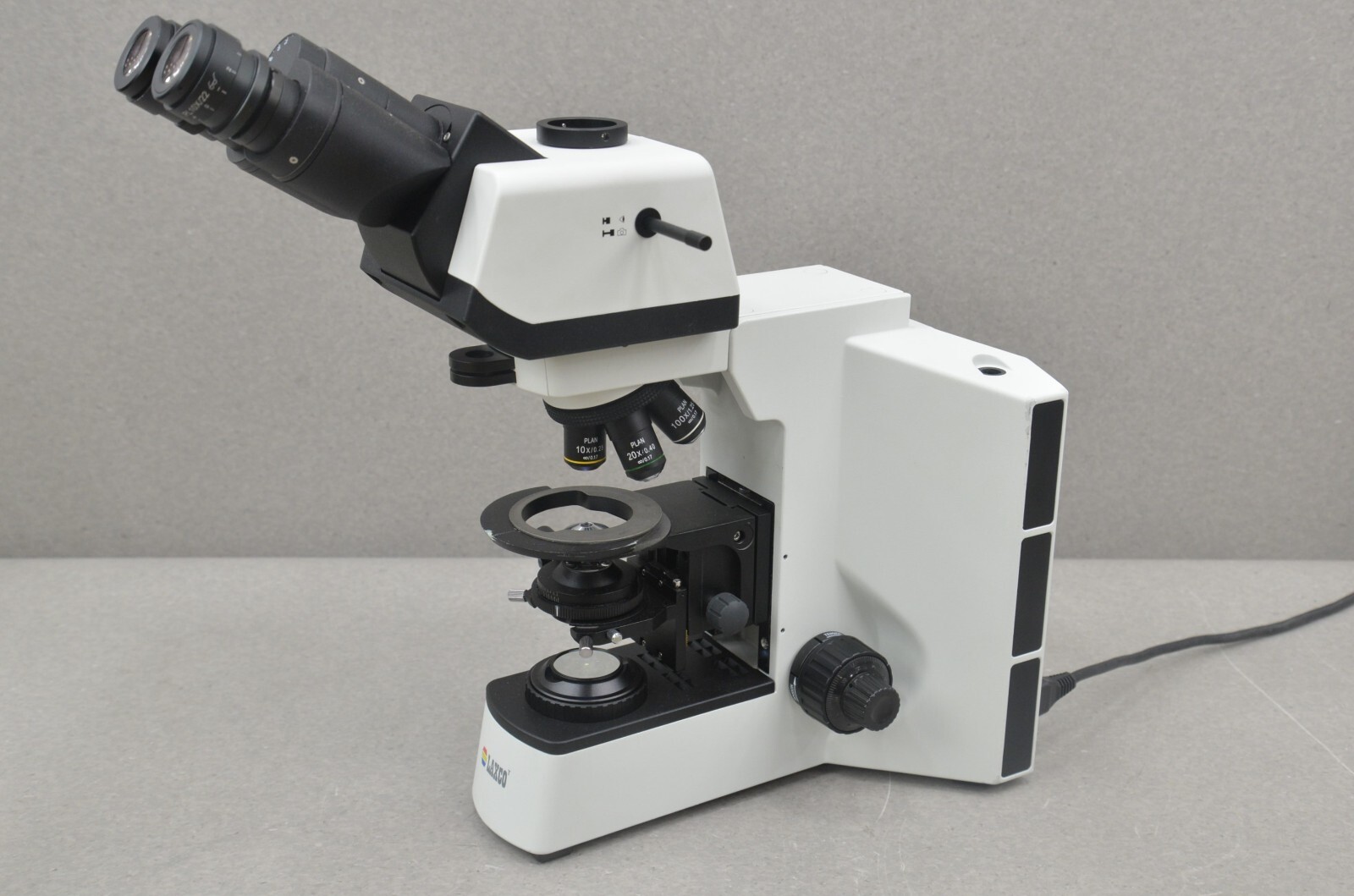 This Laxco LMC4-BF315 Trinocular Upright Clinical Hematology Microscope w/ 3W LED is in good condition except the Y axis stage adjustment slips in some positions. Because of this reason, this microscope is being offered as is; for parts or repair only. This unit powers on. The ocular lenses are clean and clear. This unit comes with the 4X,10X, 20X, & 100X PLAN objectives and they are in good condition. There are some minor scuffs common with previous use (see photos). Includes everything in the pictures and nothing else.