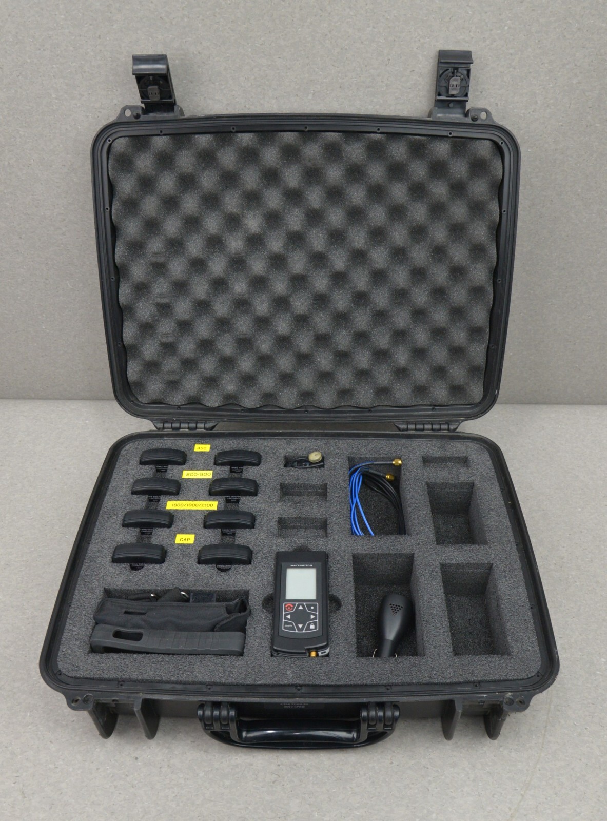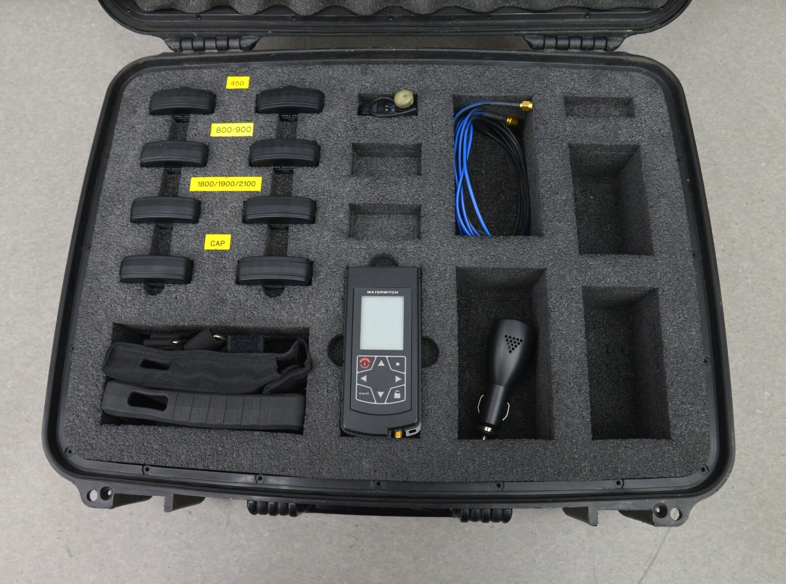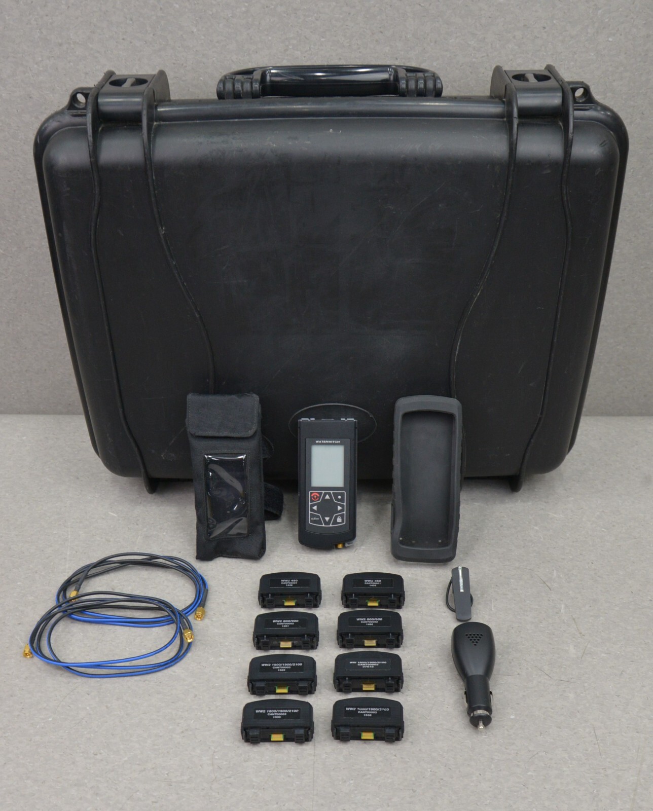This Leidos WickedWeld WaterWitch CDKT00035 Handheld RF Transmission Receiver Kit is in good cosmetic condition. This unit unit does not power on with battery or power supply, for this reason it is being sold for parts. Please see list of included items below. There are minor scuff marks on this unit (see photo). Includes everything in the pictures and nothing else.