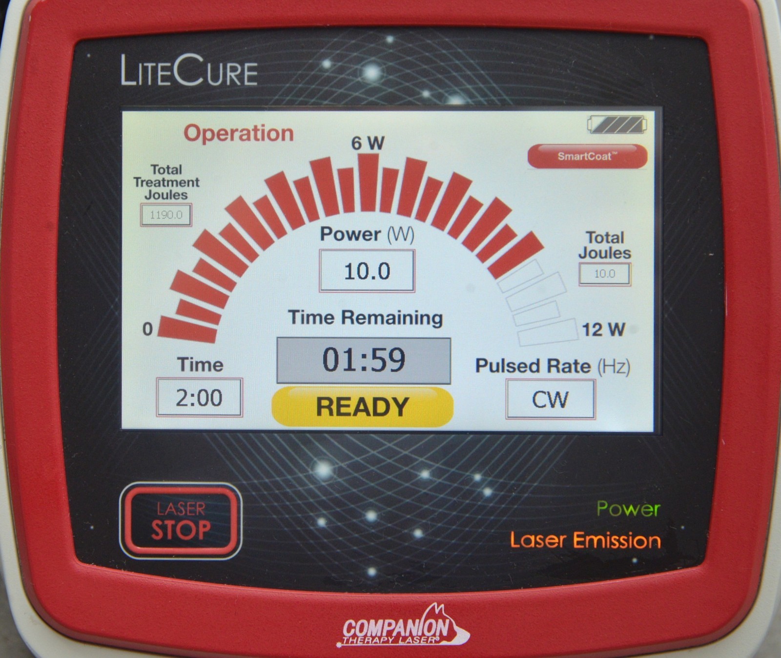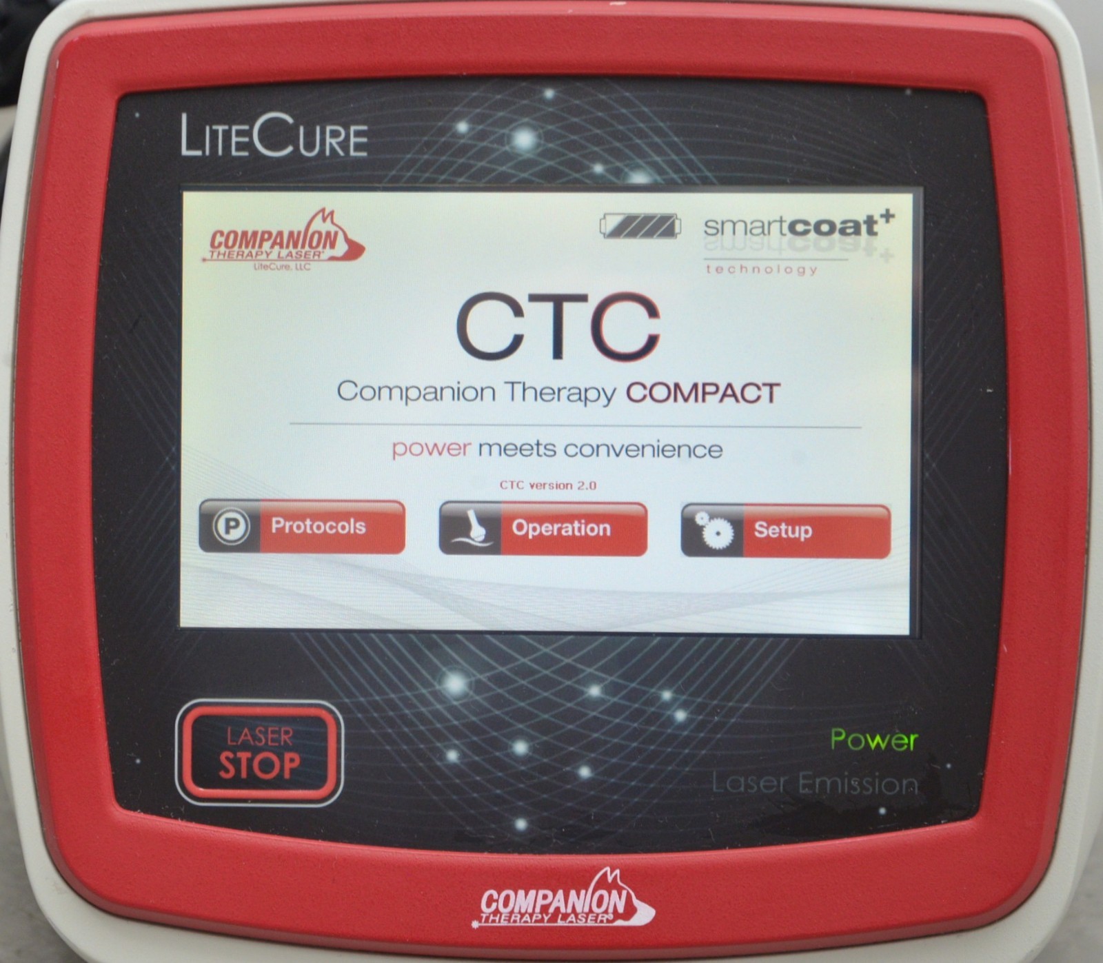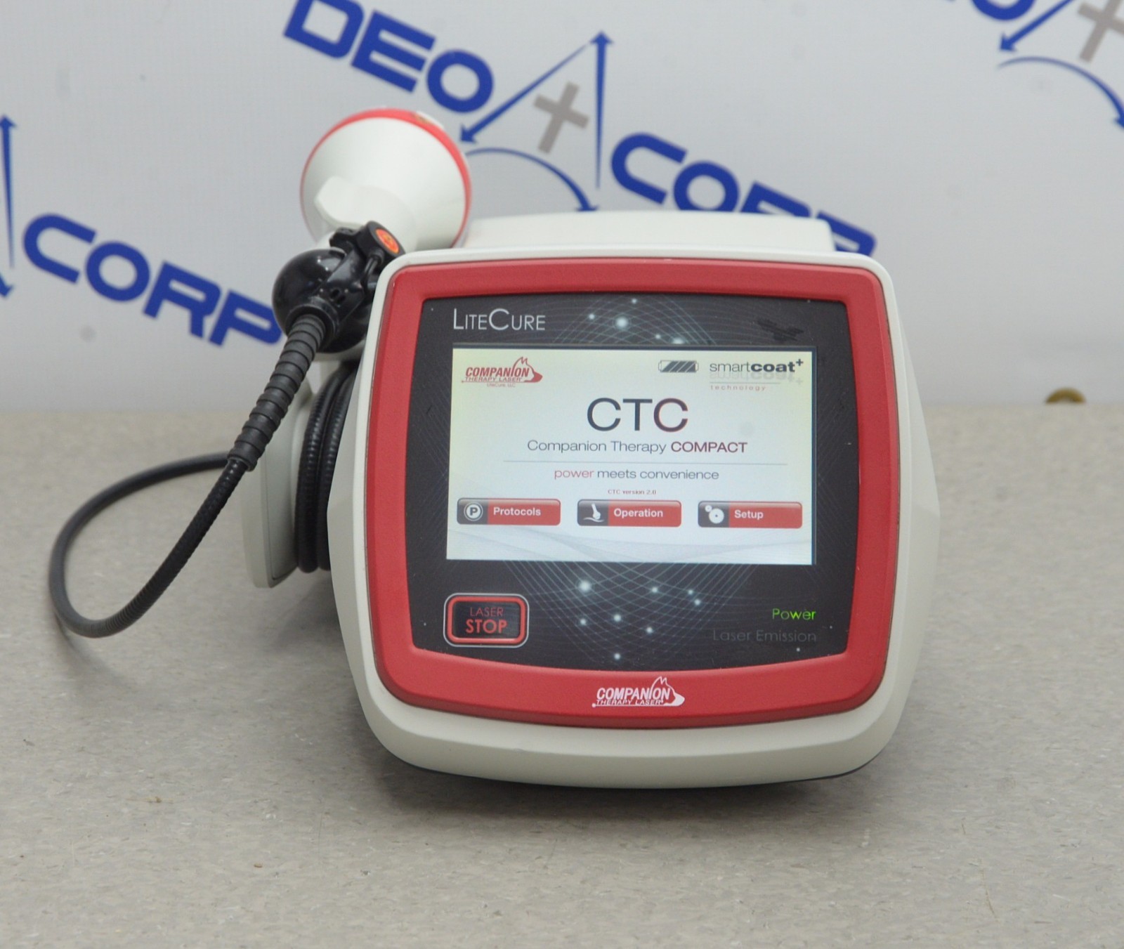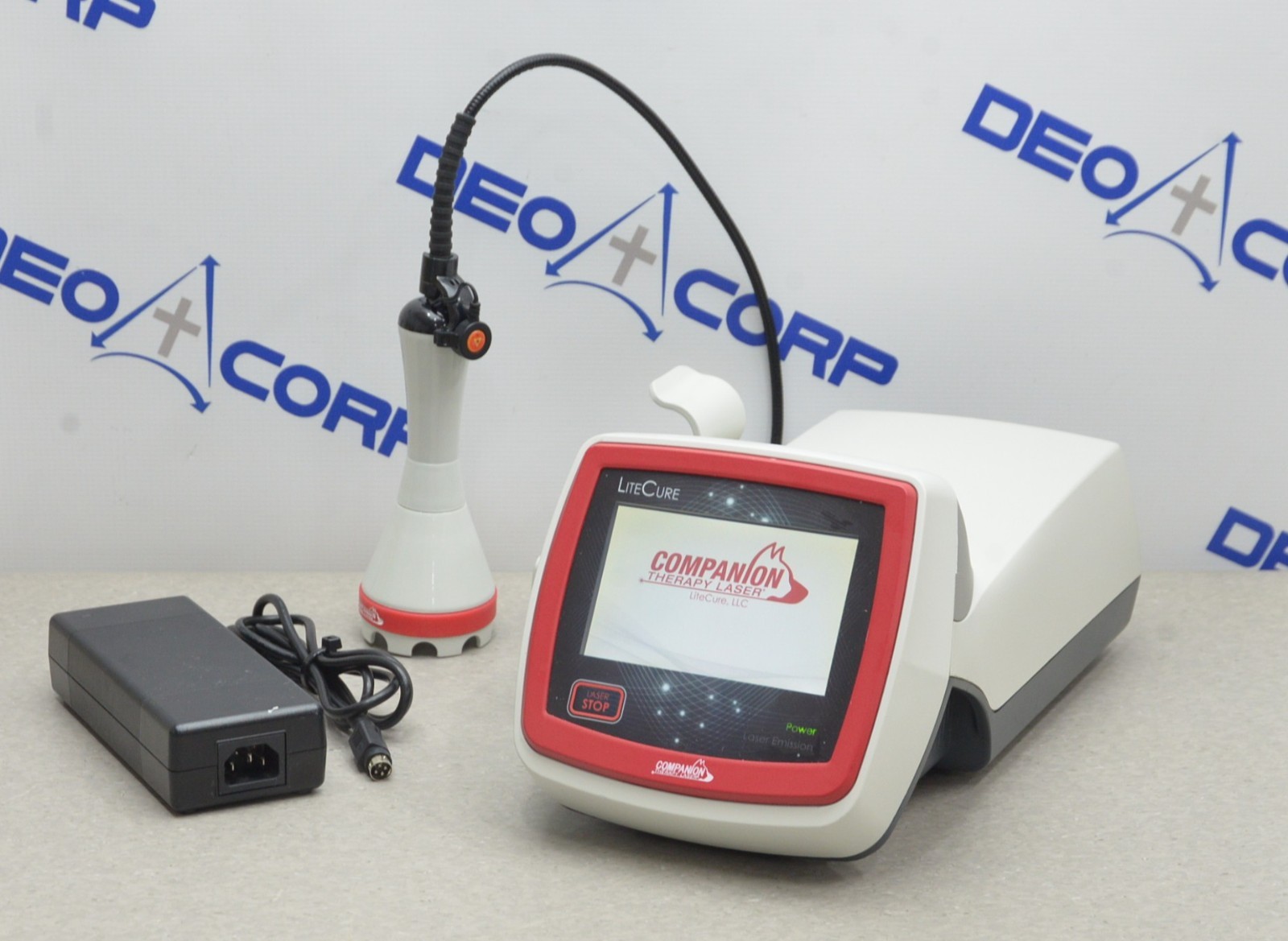 This LiteCure CTC-12 Companion Therapy Light System is in great working condition. The unit powers on and the controls respond properly to all selections. The display screen produces a clear image. The battery holds a charge. There are some minor scuff marks from previous use (see photos). This unit comes with a 30 day satisfaction guarantee. Includes everything in the pictures and nothing else.