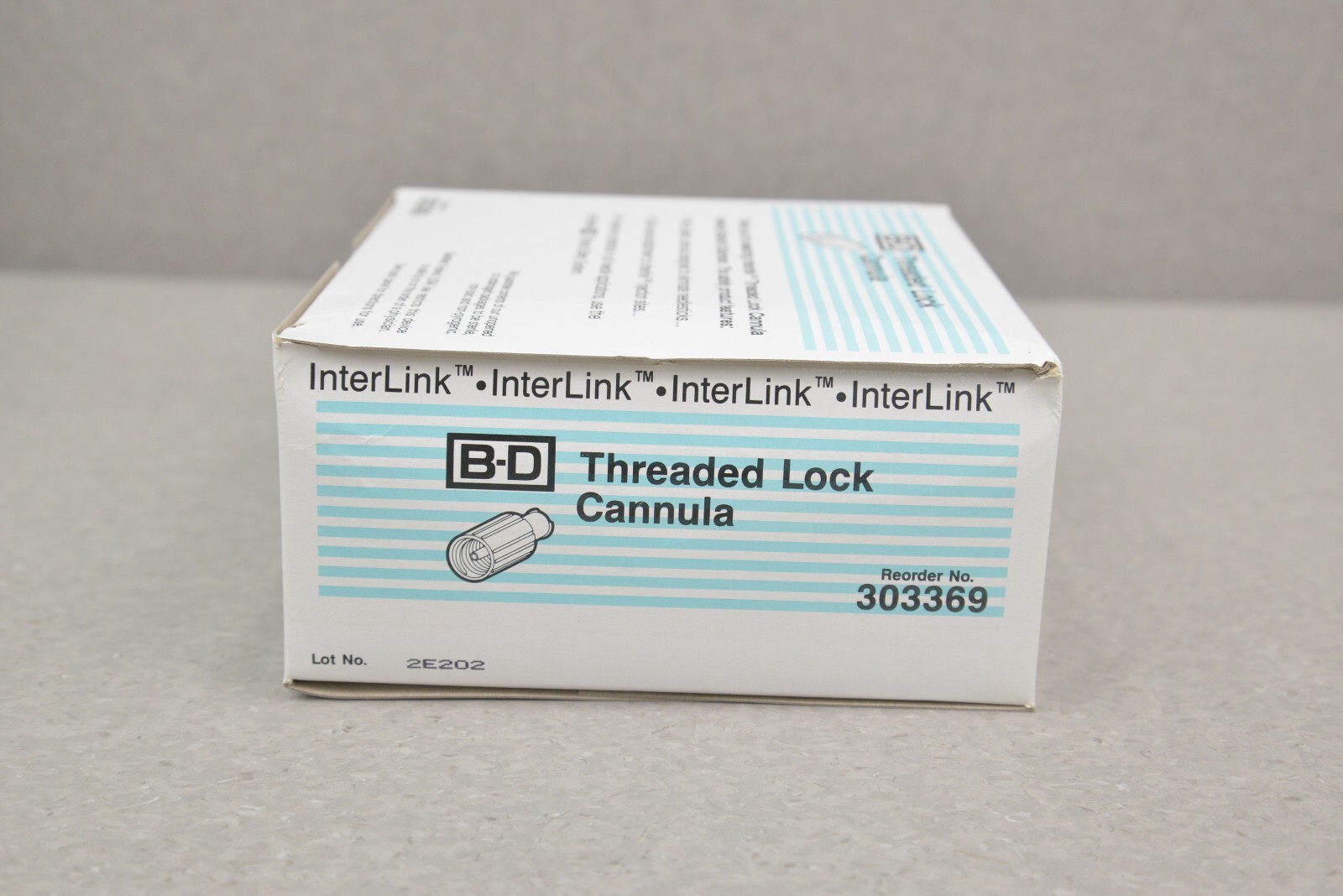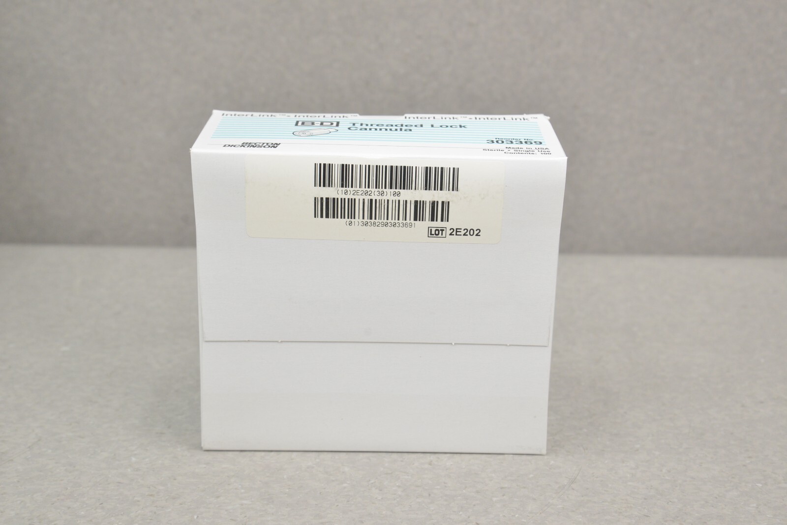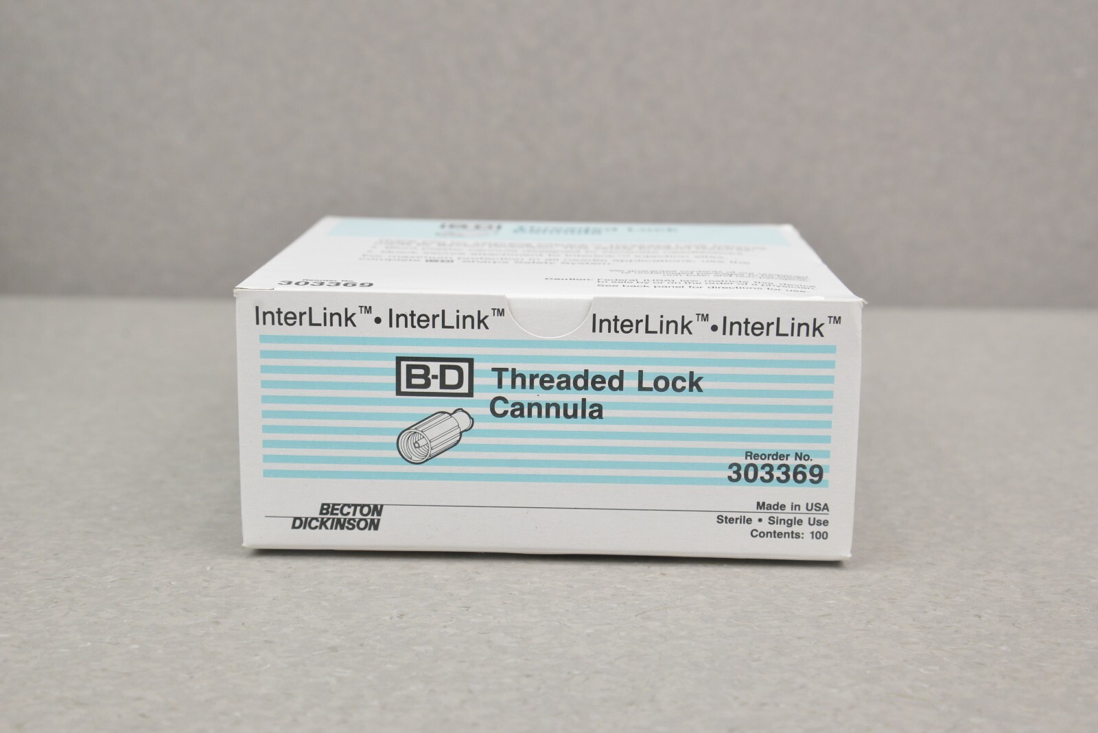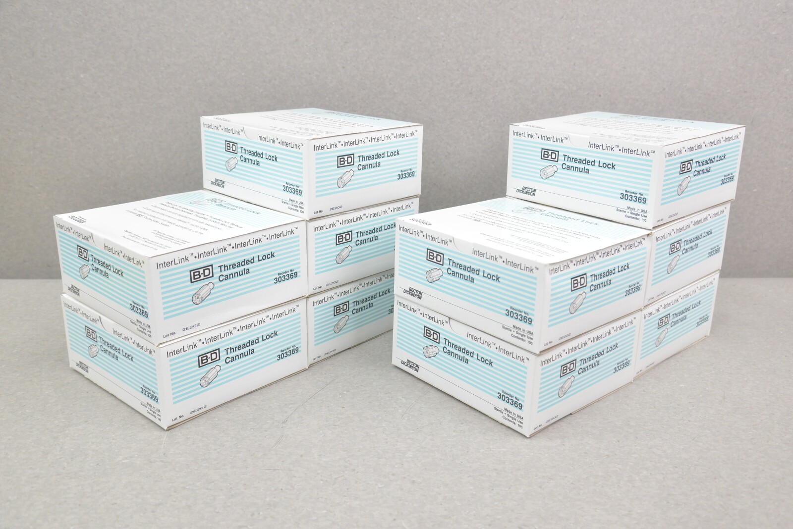 This Lot of 10 InterLink B-D Threaded Lock Cannula 303369 Single Use is new in its original packaging. These boxes came in LOT 2E202 and each box has 100 Threaded Lock Cannula Units. This lot comes with a 30 day money back guarantee. Includes everything in the pictures and nothing else.