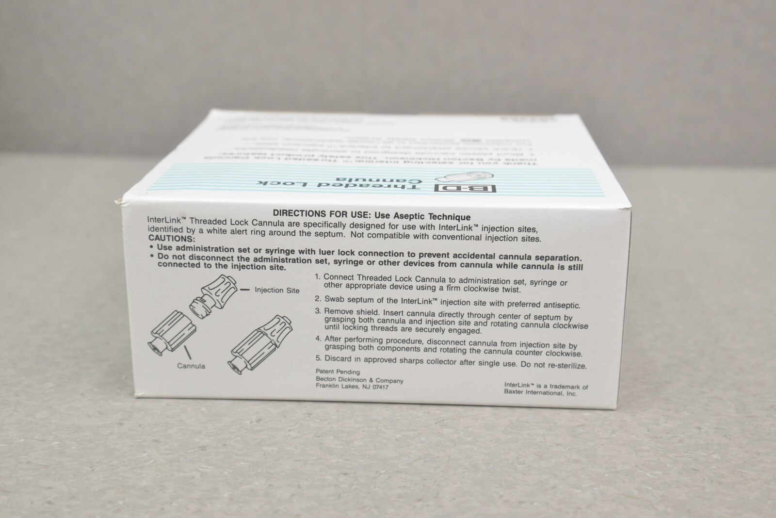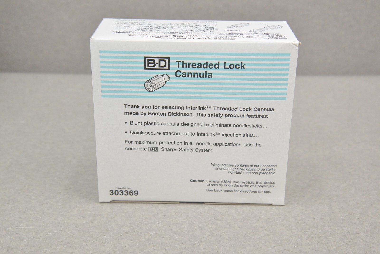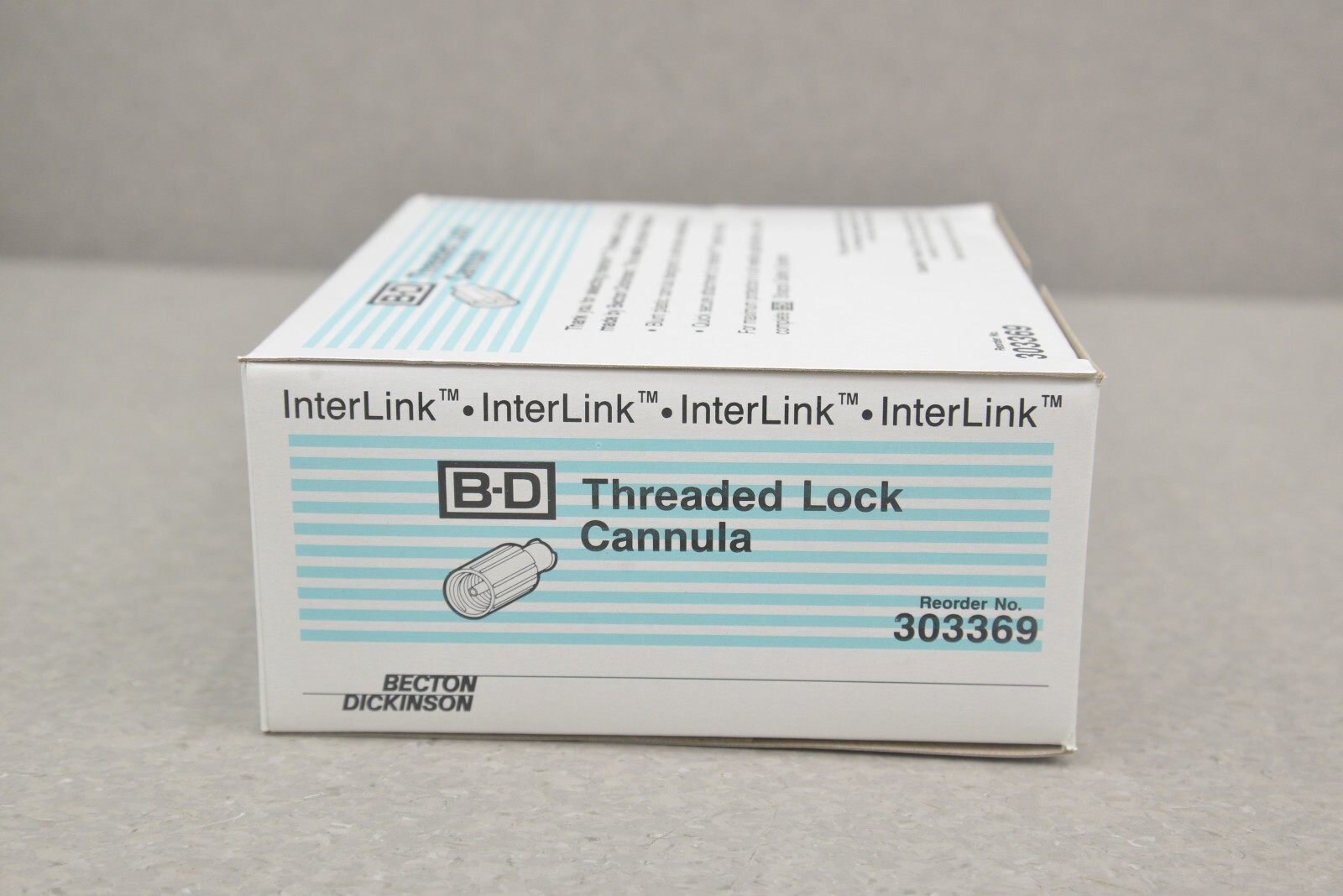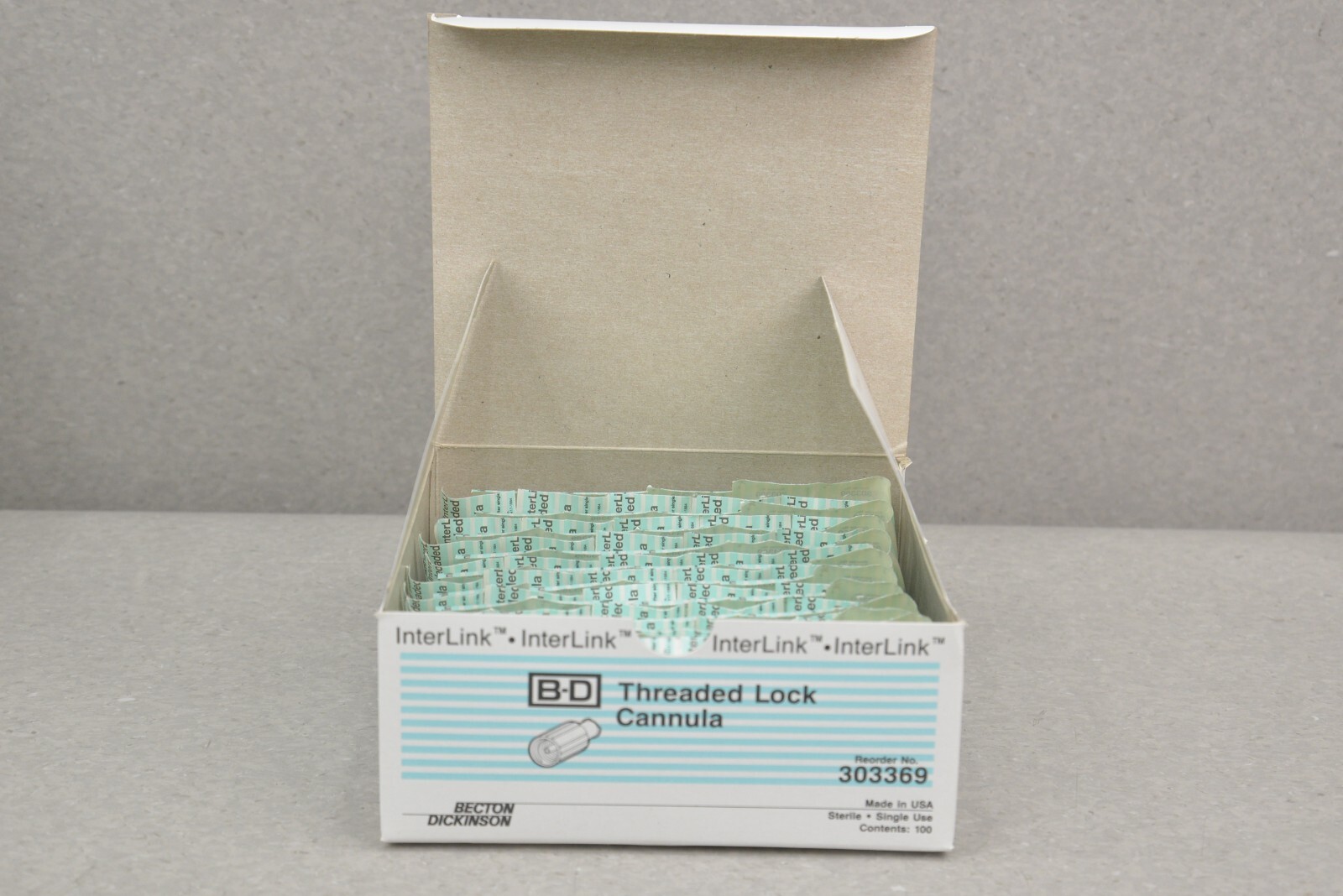 This Lot of 10 InterLink B-D Threaded Lock Cannula 303369 Single Use is new in its original packaging. These boxes came in LOT 2E202 and each box has 100 Threaded Lock Cannula Units. This lot comes with a 30 day money back guarantee. Includes everything in the pictures and nothing else.