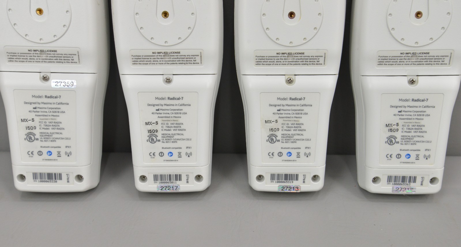 Lot of 4 Masimo Set Radical 7 Rainbow Pulse CO-Oximeter w/ 5 RDS-1 Docking Station