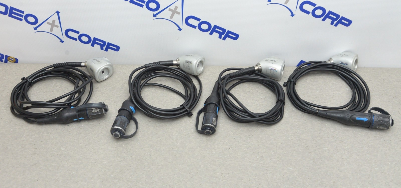 This Lot Of 4 Stryker 1488 HD Camera Head 1488210105 10ft came from a working environment and is in fair cosmetic condition; however, there is damage to the threads and the cord, for that reason it will be sold for parts. All connections are clean and in good condition. There are some scuff marks from previous use (see photos). Includes everything in the pictures and nothing else.
