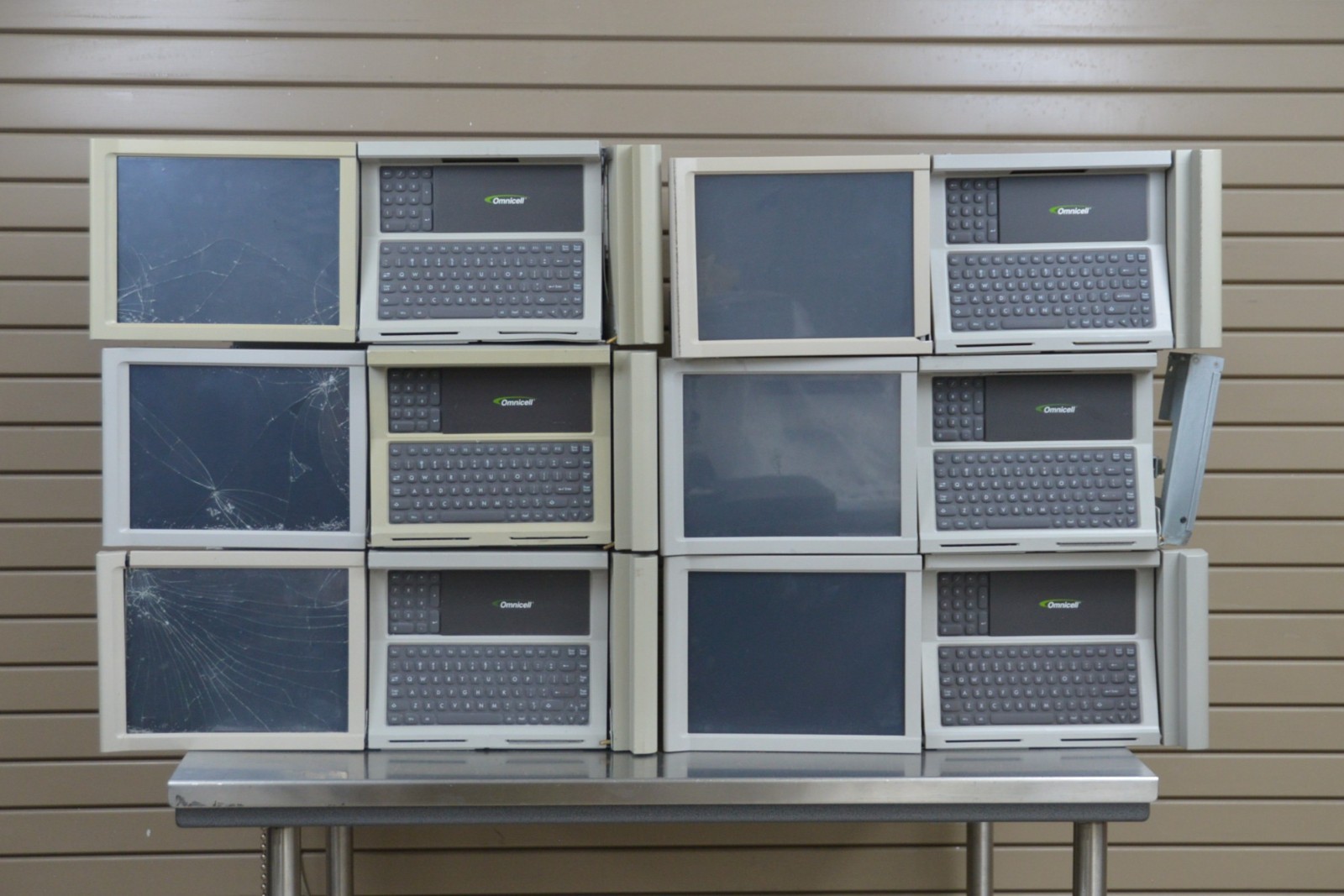 This Lot Of 6 OmniCell Ebox Assembly 15-1010 OptiFlex Automated Dispensing System is in fair condition. This system came from a working environment. This system is missing various different electrical components along with damage internals, screen, and casing, for that reason it will be sold for parts. Includes everything in the pictures and nothing else.