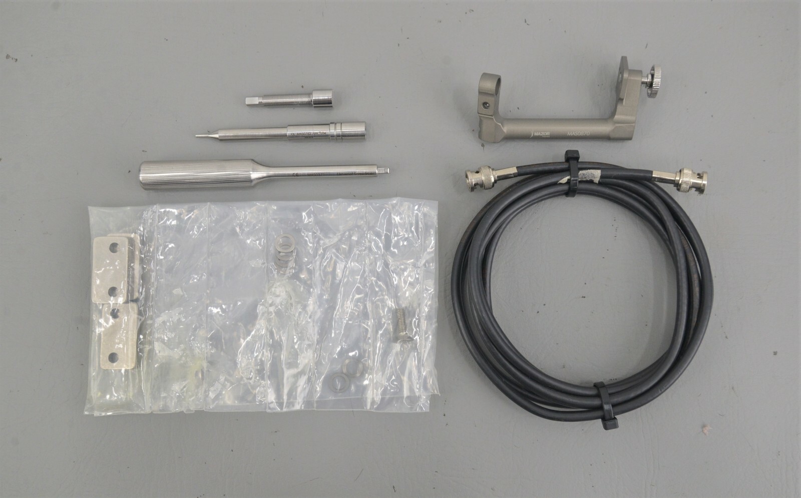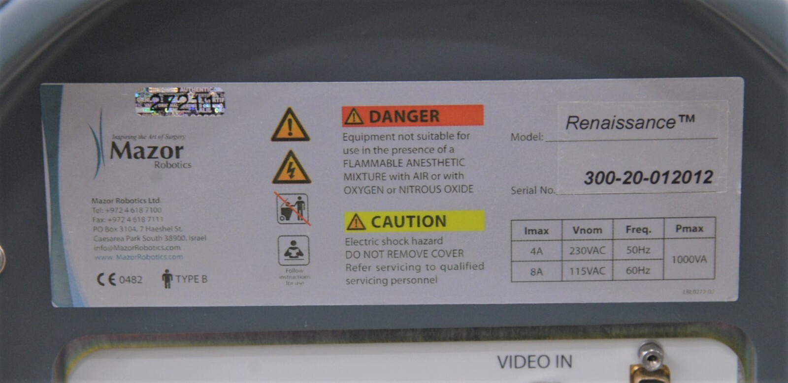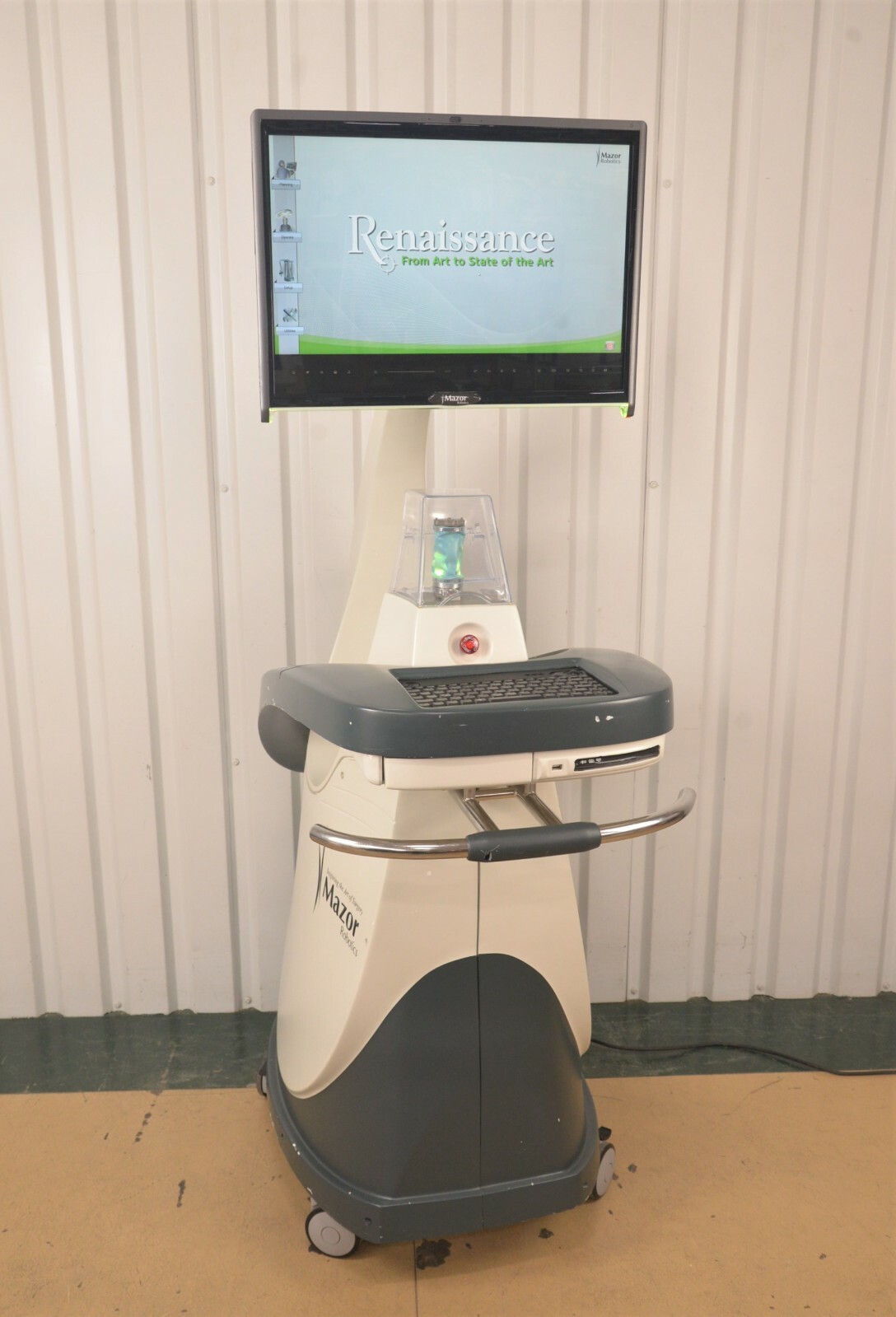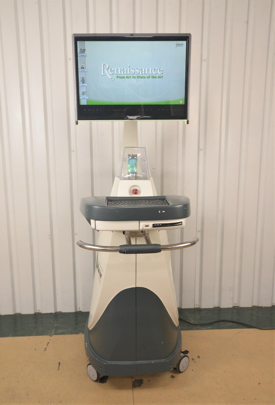 This Mazor Robotics, Renaissance, Surgical Guidance System is used but in good working condition. The unit powers on and passes all self tests. The robotic arm is in excellent condition and passes it’s calibration test (see photo). The display screen is in excellent working condition. All buttons, switches and keyboard are in excellent working condition and respond to menu selections. The overall cosmetic condition of the system is good with the exception of several body paint scrapes associated with normal use (see photos). Includes Universal Screwdriver MAS0371, Arm Tube MAS0762, Clamp MAS0870, Coax Cable, Power Cord and Misc. AccessoriesThis unit comes with a 30 day satisfaction guarantee. Includes everything in the pictures and nothing else.  All international sales are final.