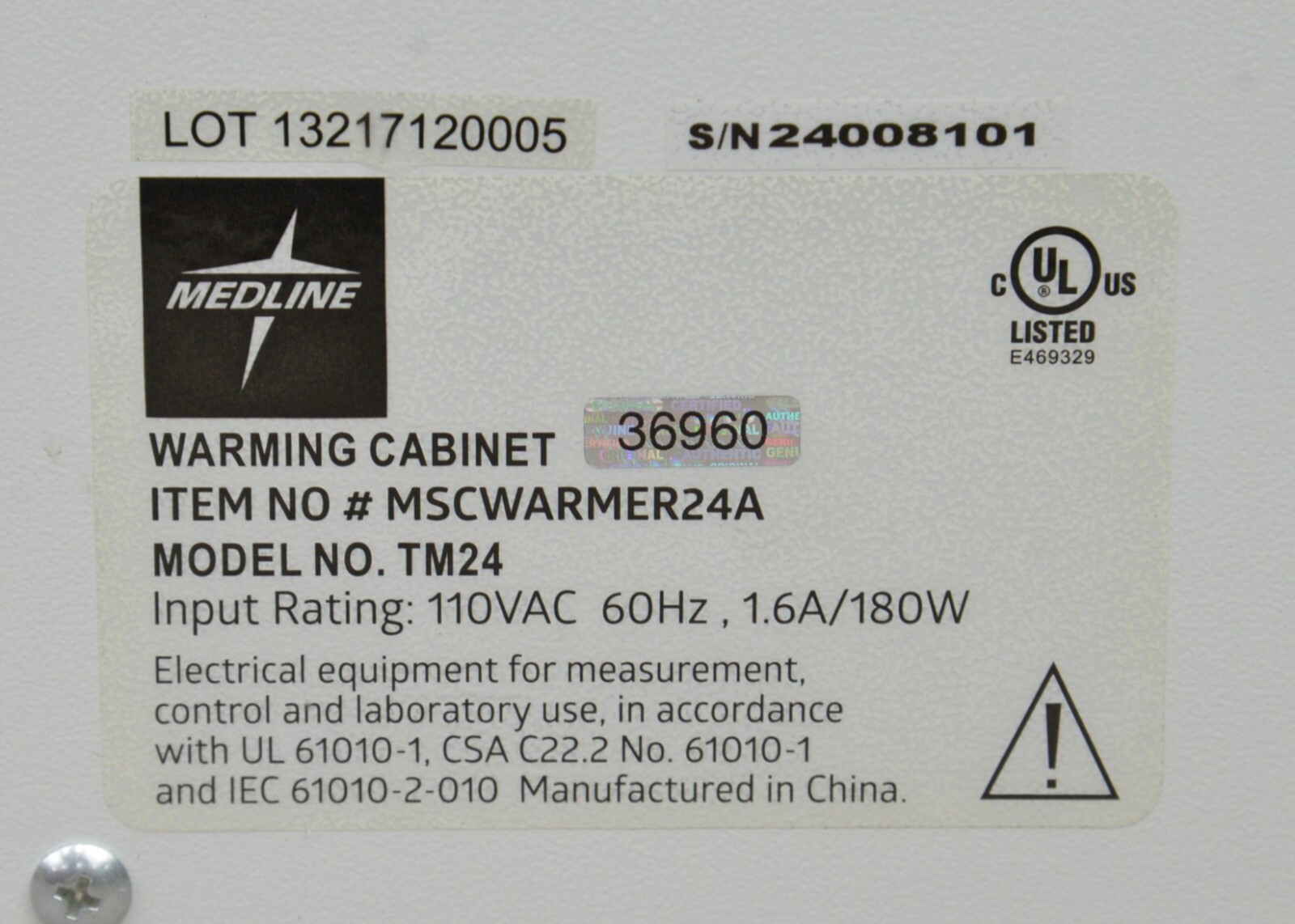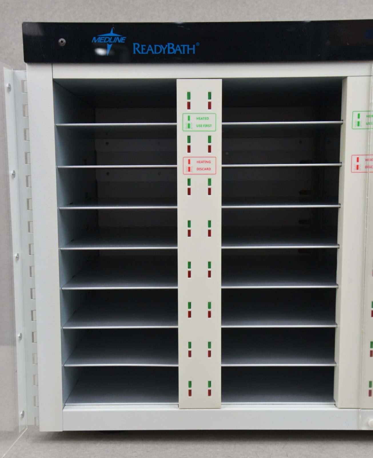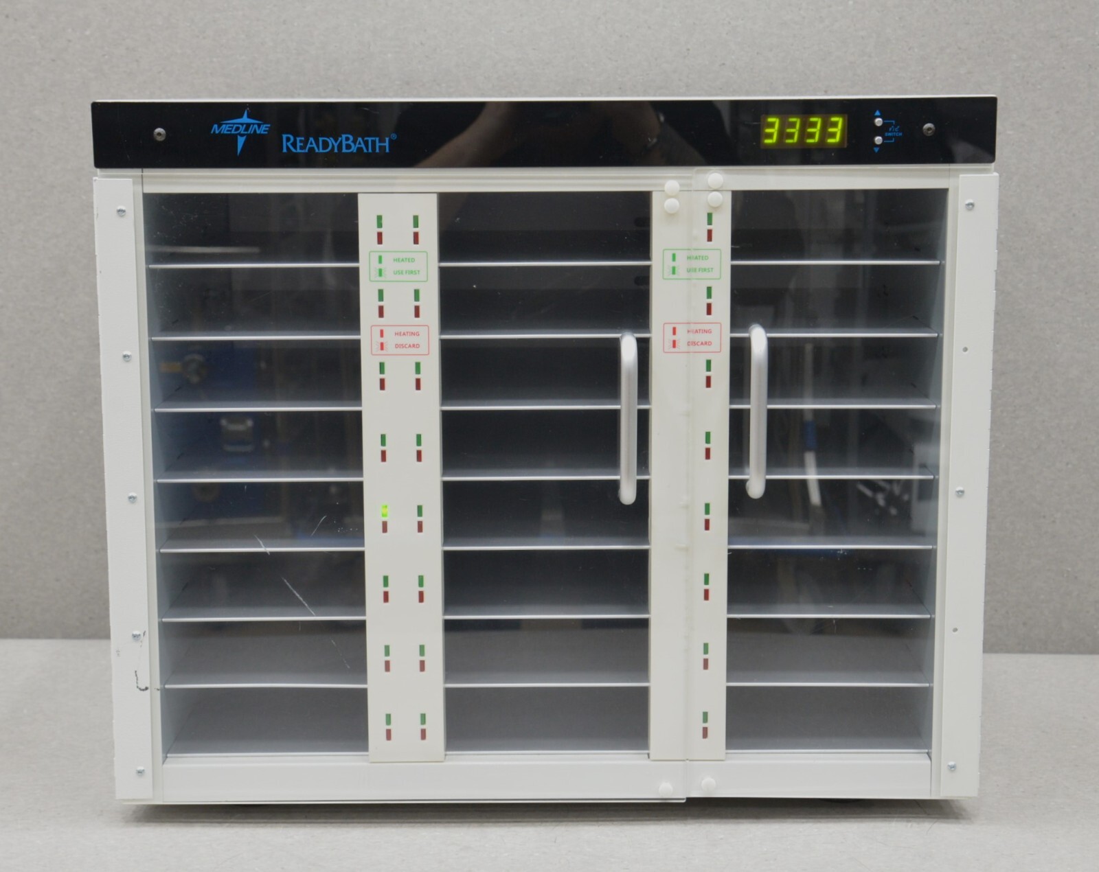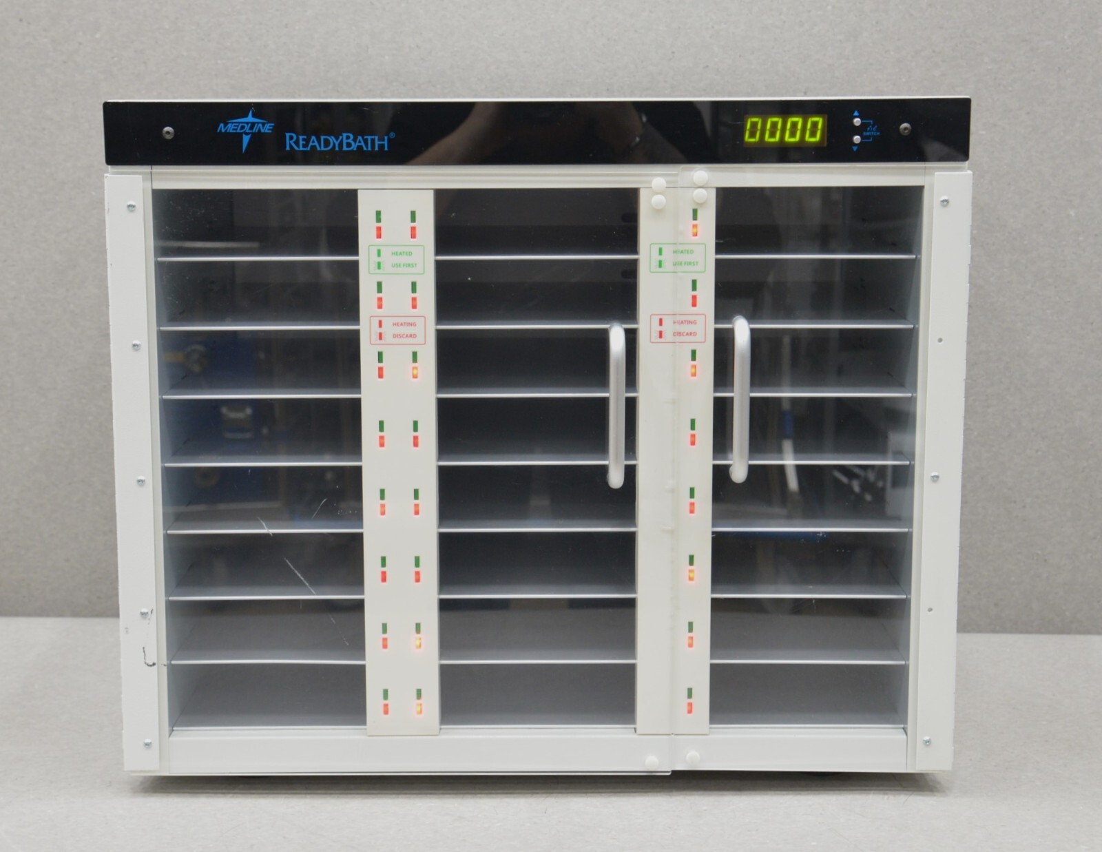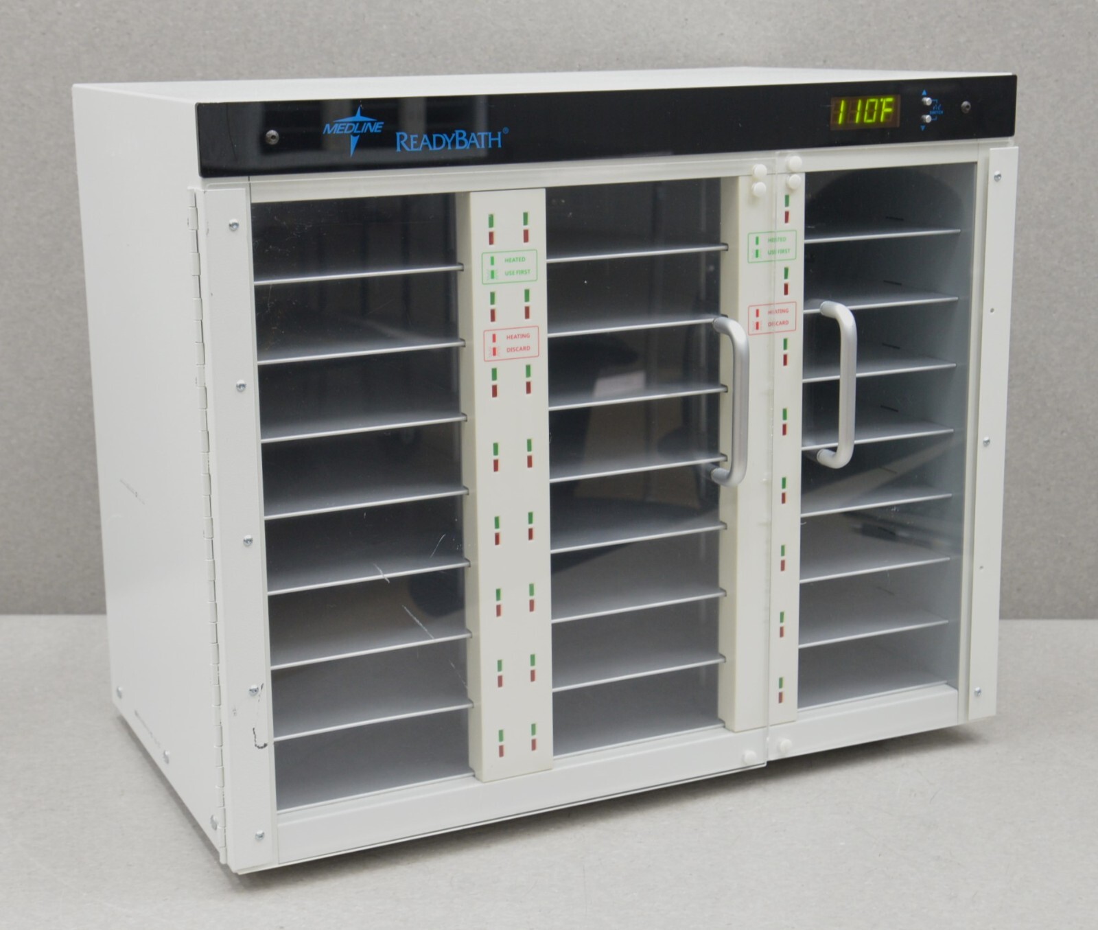 This Medline TM24 Ready Bath Warming Cabinet MSCWARMER24A is in great working condition. The unit powers on and warms up properlyThere are some minor scuff marks from previous use (see photos)This unit comes with a 30 day satisfaction guarantee. Includes everything in the pictures and nothing else.