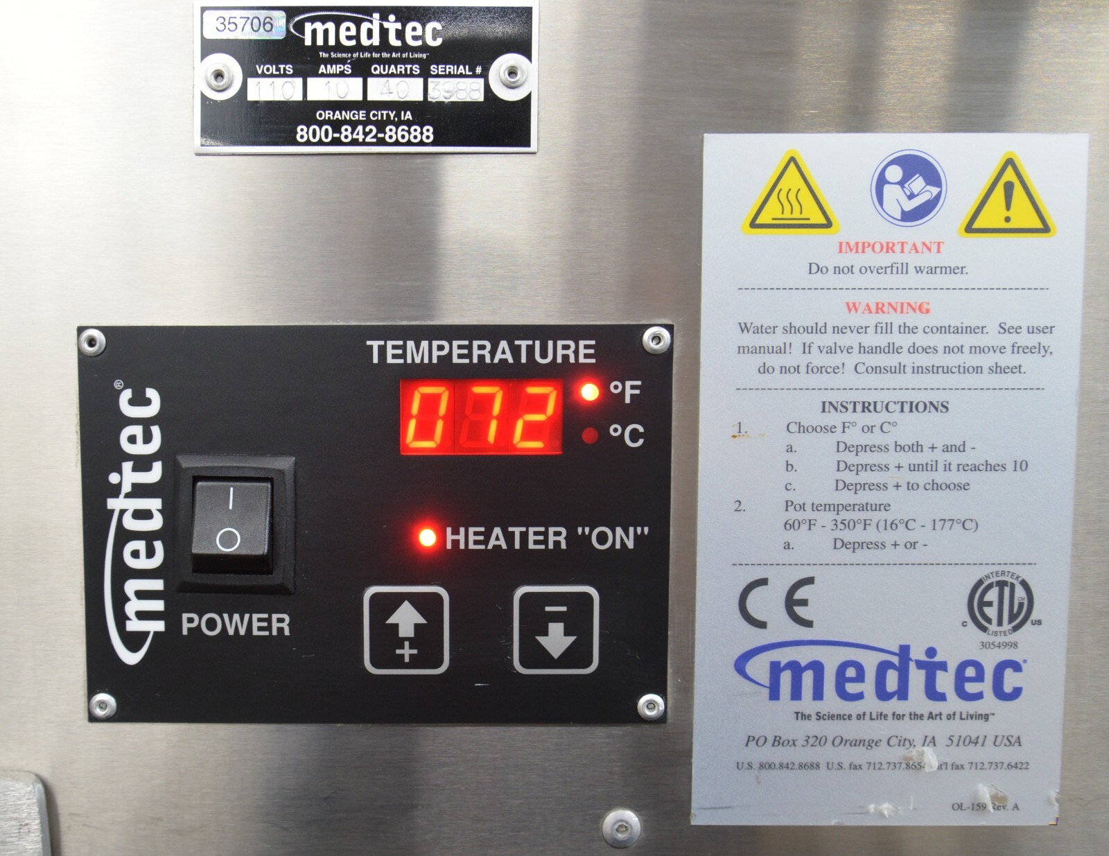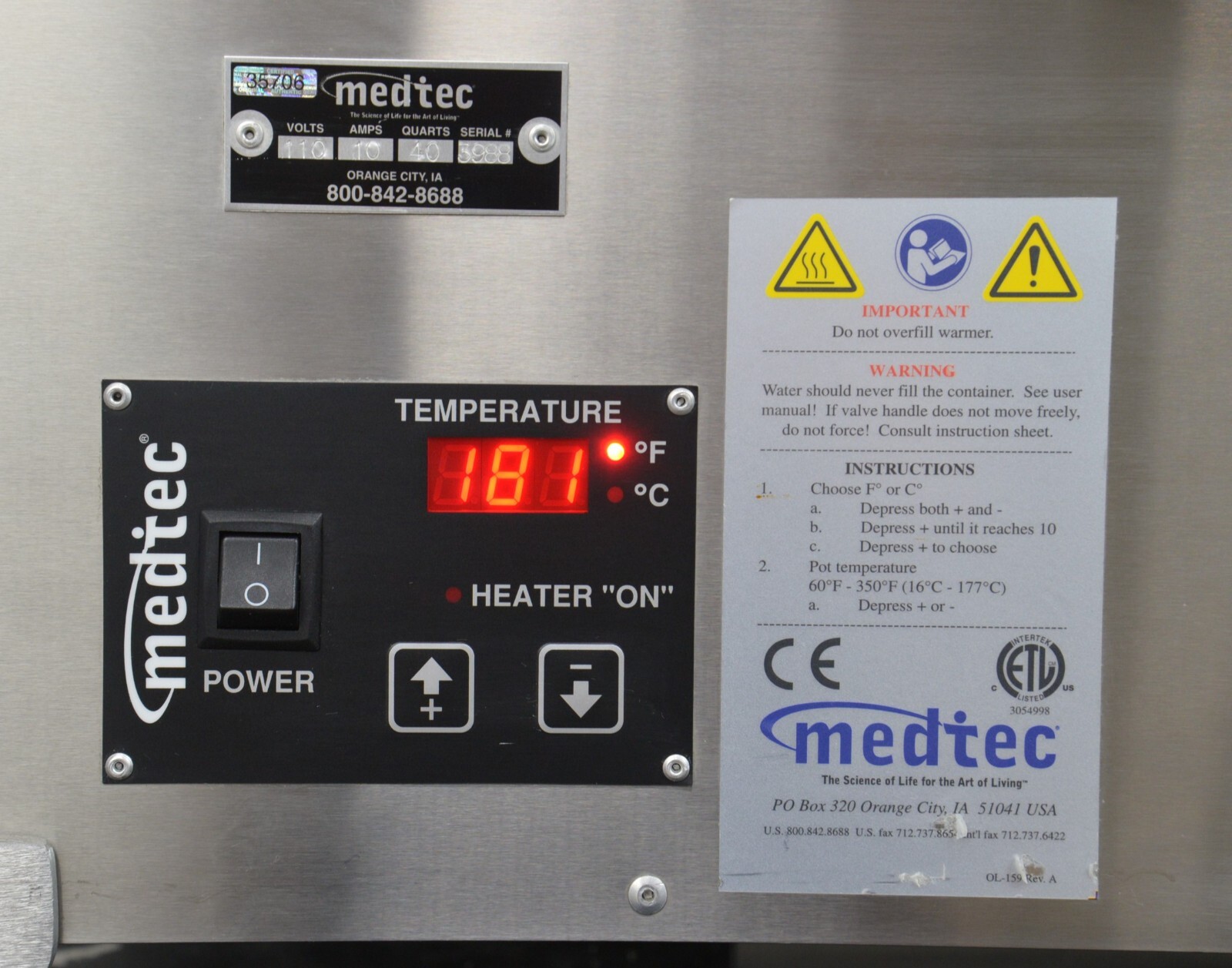 This Medtec MT-RH-1500 40Qt Digital Thermalplastic Water Bath is in good working condition. The unit powers on properly. The buttons respond to selection. The unit heats properly. There are minor scuff marks from previous use (see photos). This unit comes with a 30 day satisfaction guarantee. Includes everything in the pictures and nothing else.