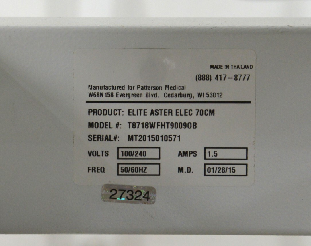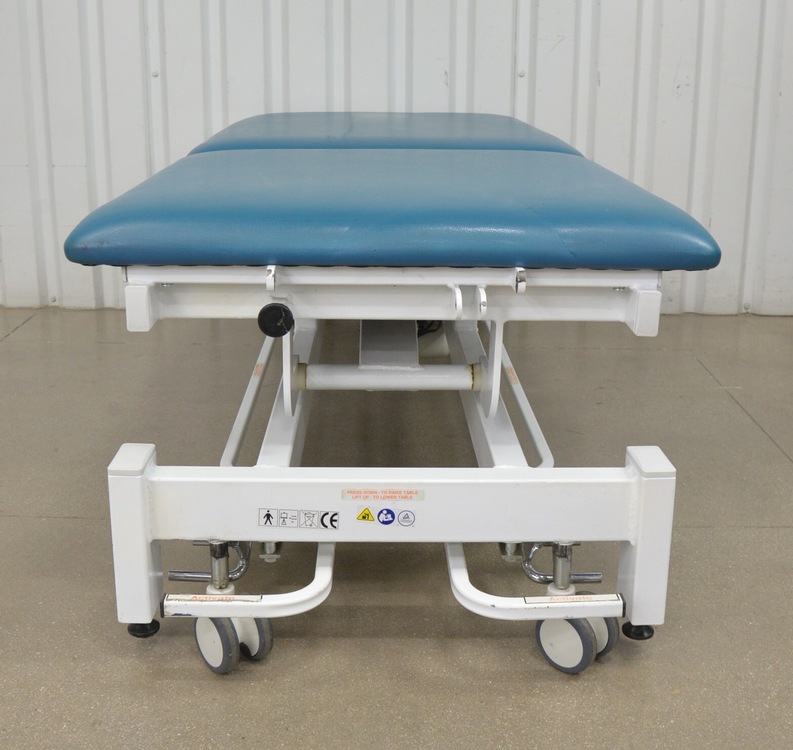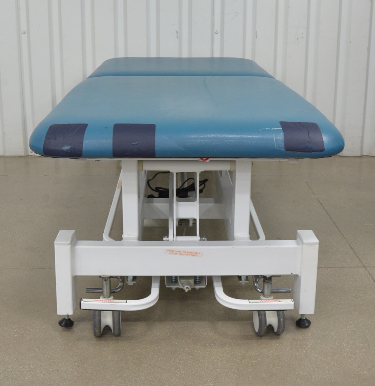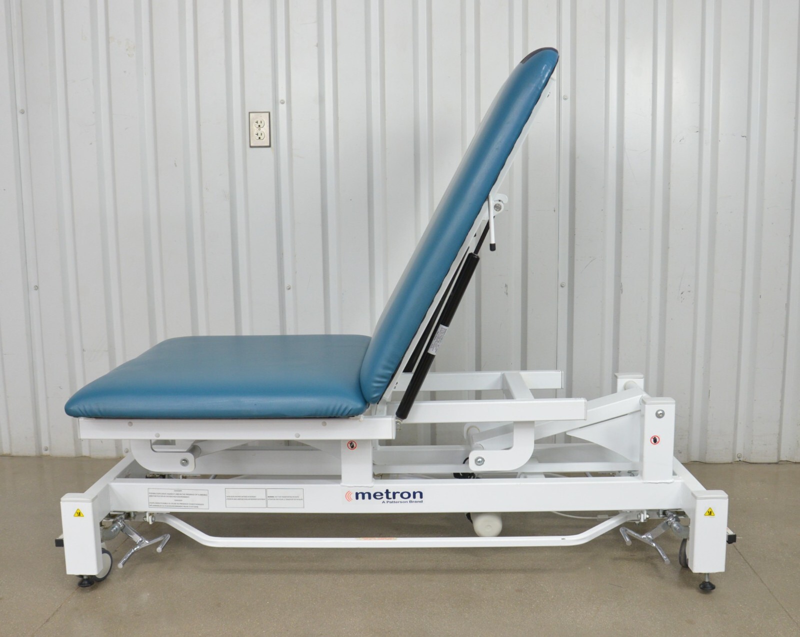 This Metron Elite Aster 3-Section Electric Treatment Table is in good cosmetic condition. The manual adjustments move properly; however this unit does not have a power supply so we can not test further and for this reason it is being sold for parts. The head section is missing. The upholstery has been repaired. There are minor scuff marks from previous use (see photo). Includes everything in the pictures and nothing else.