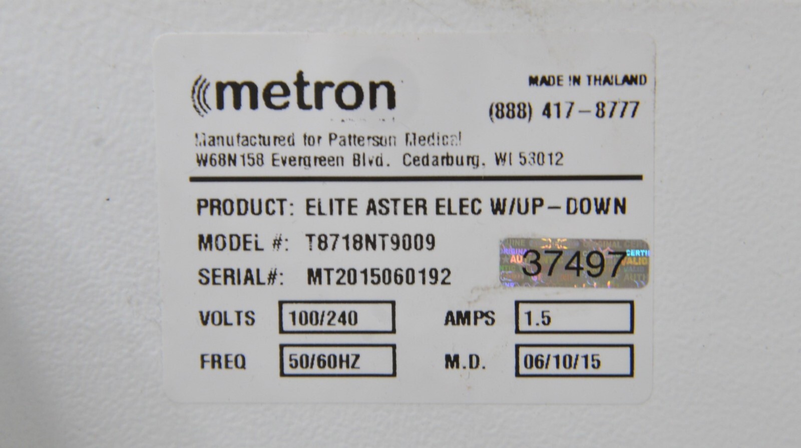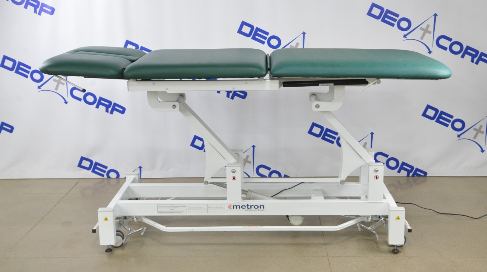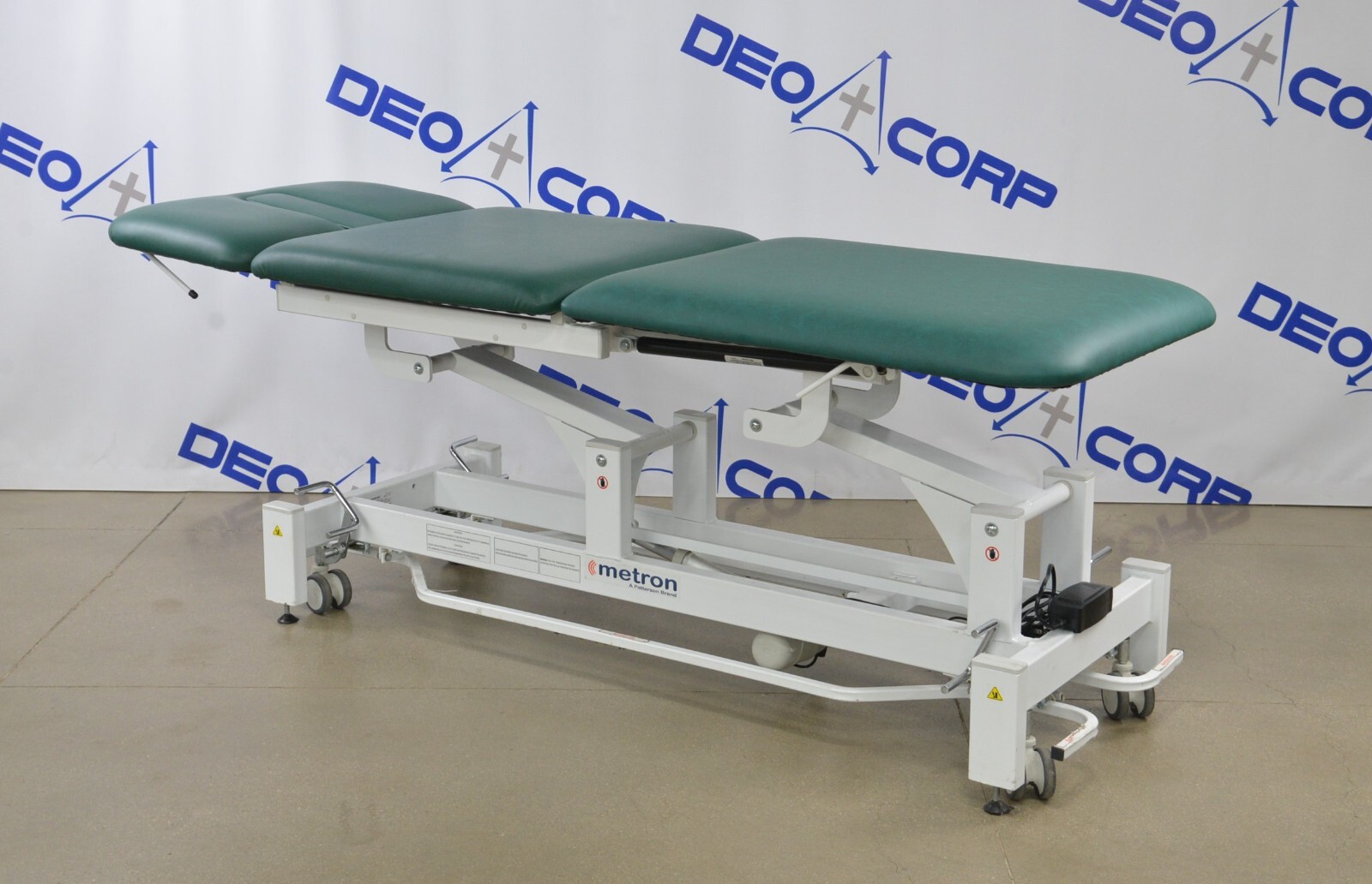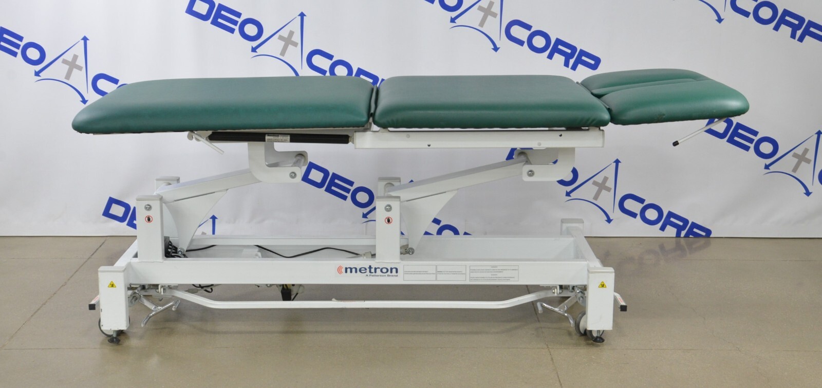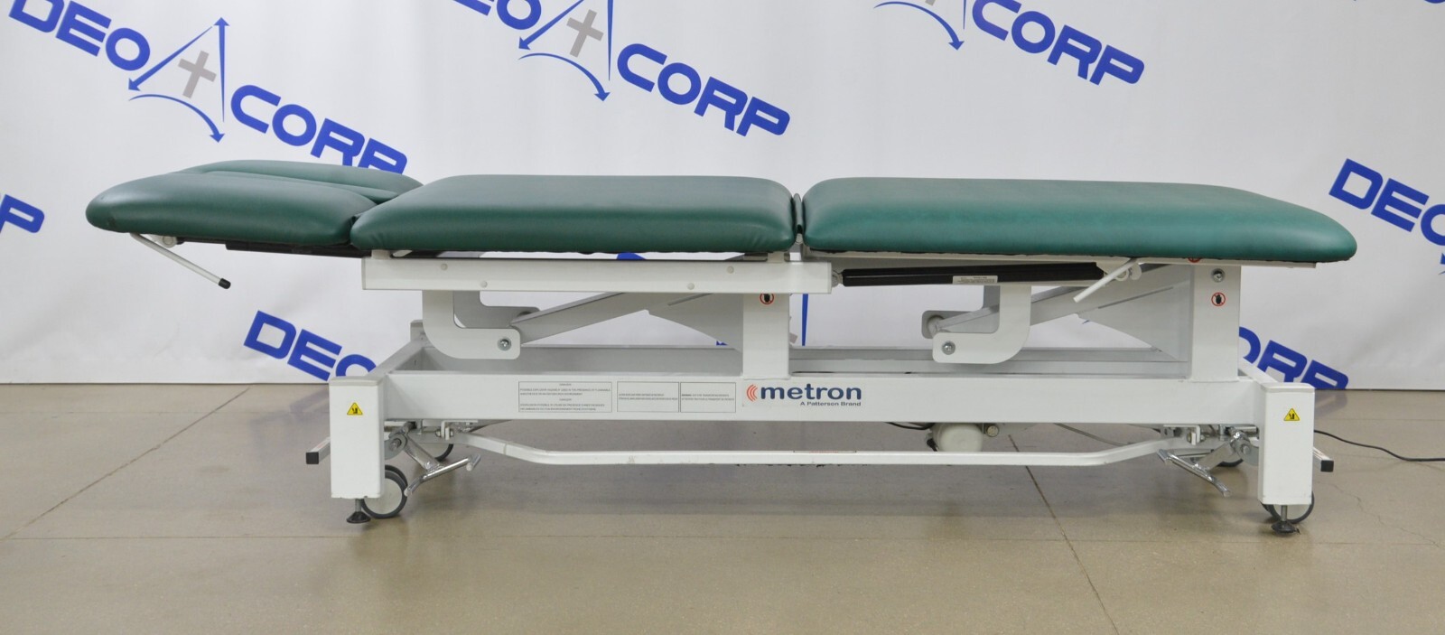 This Metron Elite Aster 3-Section Treatment Table T8718NT9009 Bar Activated is in great working condition. The unit powers on and runs smoothly through all range of motion. Both bars rise and lower the table properly. There are some minor tears and repairs in the upholstery from previous use (see photos). This unit comes with a 30 day satisfaction guarantee. Includes everything in the pictures and nothing else.
