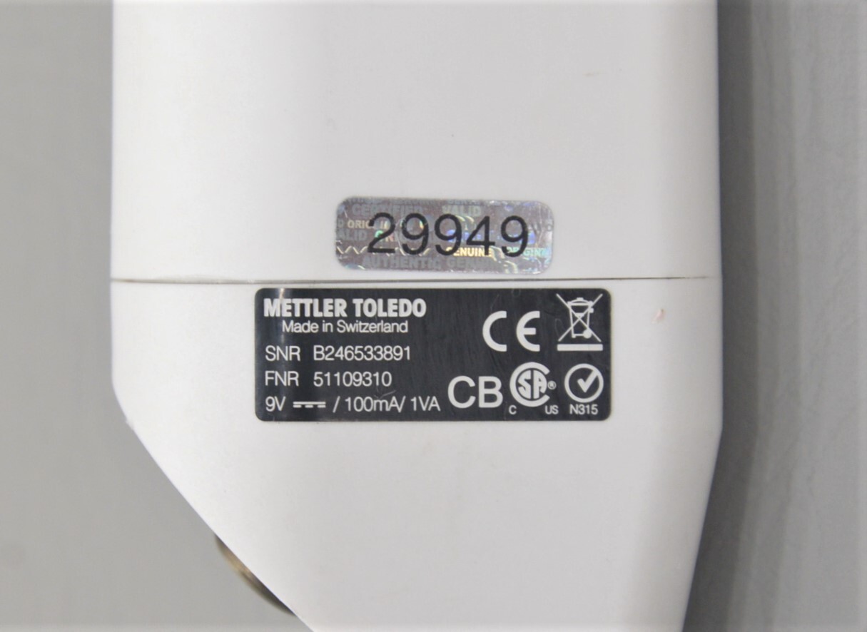This Mettler Toledo, DP5, Phototrode, 5-Wavelength Titration Color Change Sensor is used but in good cosmetic condition. We do not have the power supply for this unit and are unable to test it, for this reason it is being sold as-is, no returns. The switches are in good condition but one is missing its cover (see photos). The overall cosmetic condition of this unit is good with the exception of some discoloration associated with previous use (see photos).
