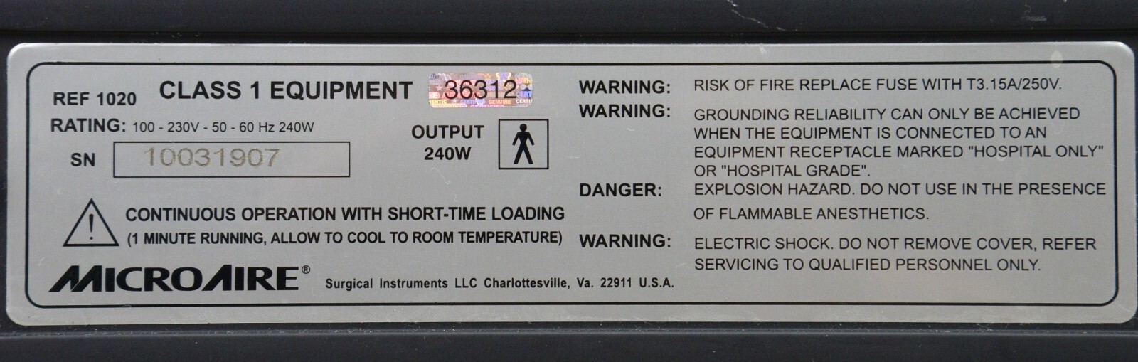 This Microaire Surgical Systems 1020 Lipoplasty Electric Console Console is in good working condition. This unit powers on properly. The connection points are clean and in good condition. There are minor scuff marks from previous use (see photos). We are not experts in the subject matter; therefore, we are unable to fully test this unit. However, this unit comes with a 30 day satisfaction guarantee. Includes everything in the pictures and nothing else.