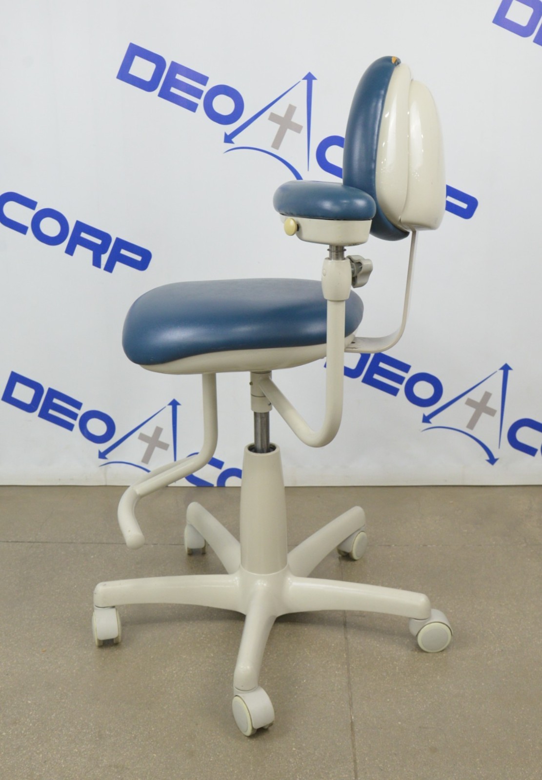 This Midmark 153812*320937 Dental Assistants Stool W/ Back Support is in great condition. This stools manual adjustments function properly. There is minor damage to the upholstery. There are scuff marks from previous use (see photo). This unit comes with a 30 day satisfaction guarantee. Includes everything in the pictures and nothing else.