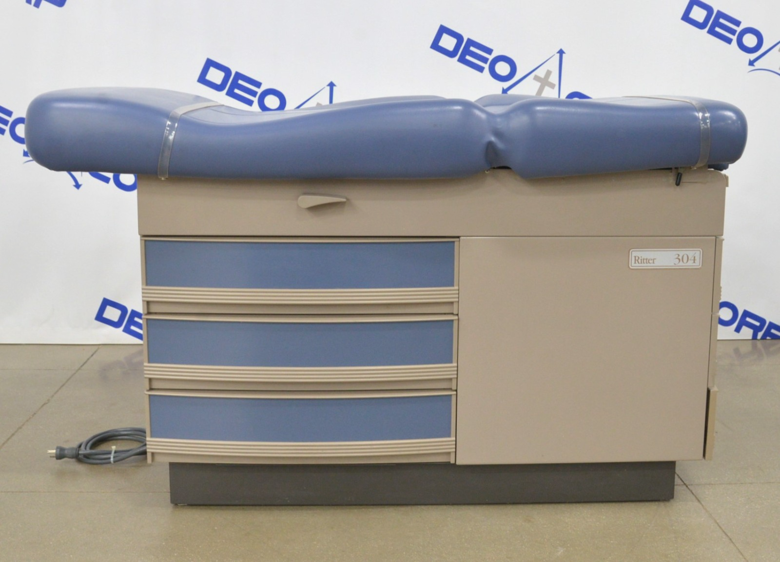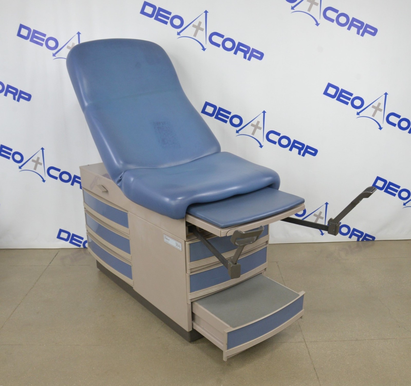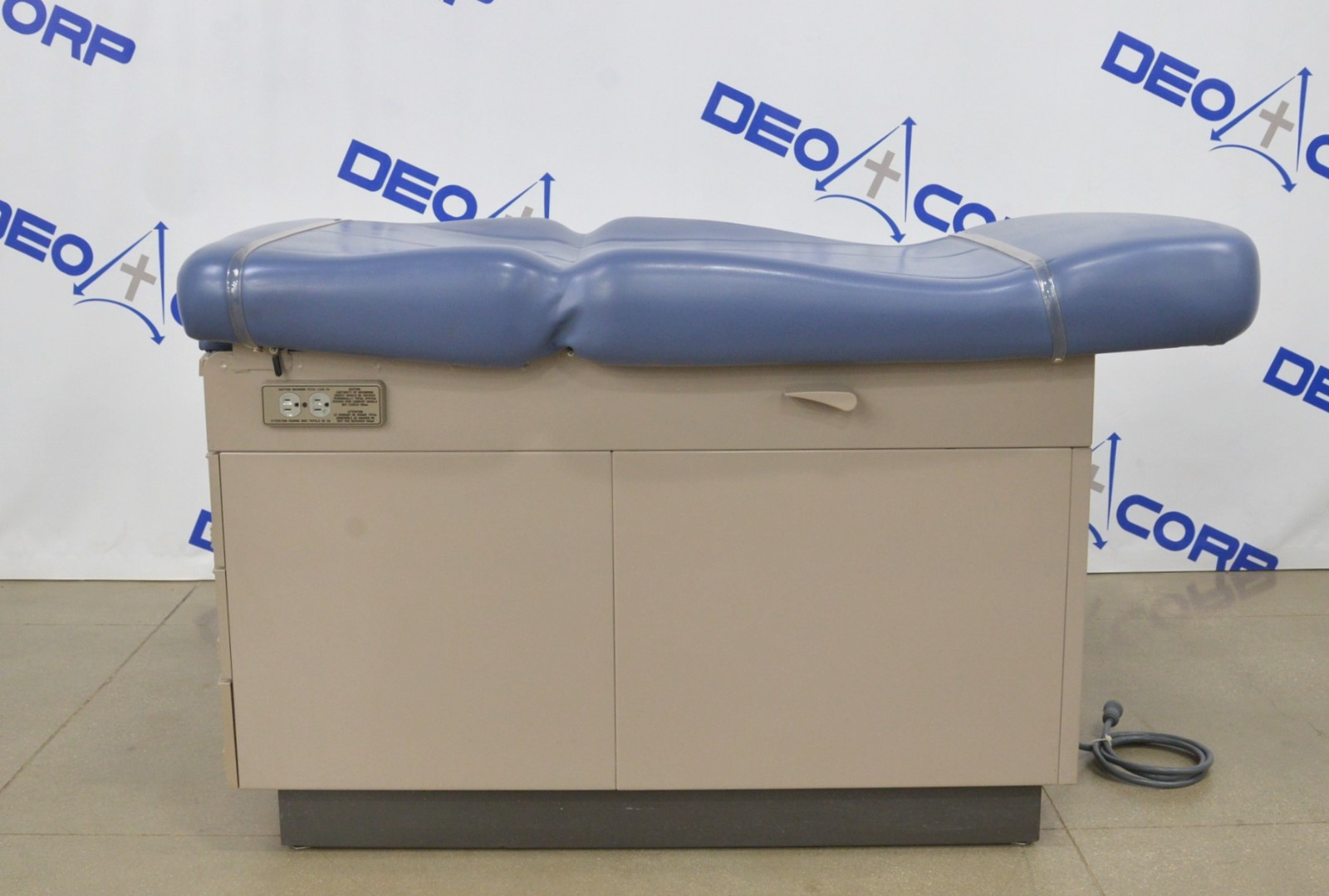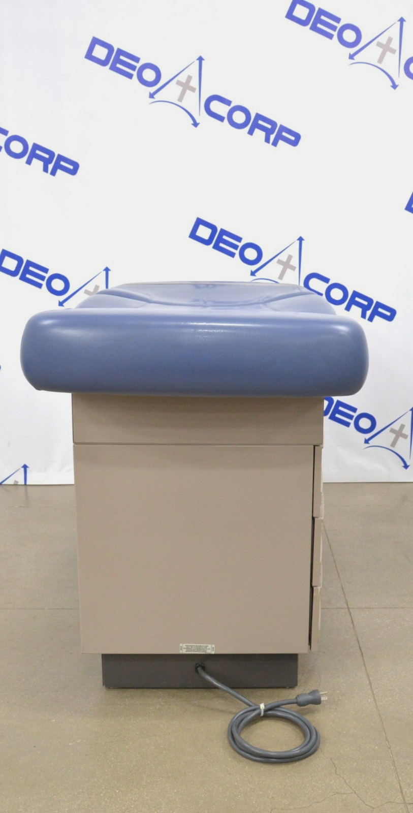 This Midmark 304-001 Barrier Free Manual Exam Table is in great working condition. All manual adjustments move properly. The upholstery has a minor repair on the back of the table on the left side. There are minor scuff marks and slight discoloration from previous use (see photos). This unit comes with a 30 day money back guarantee. Includes everything in the pictures and nothing else.