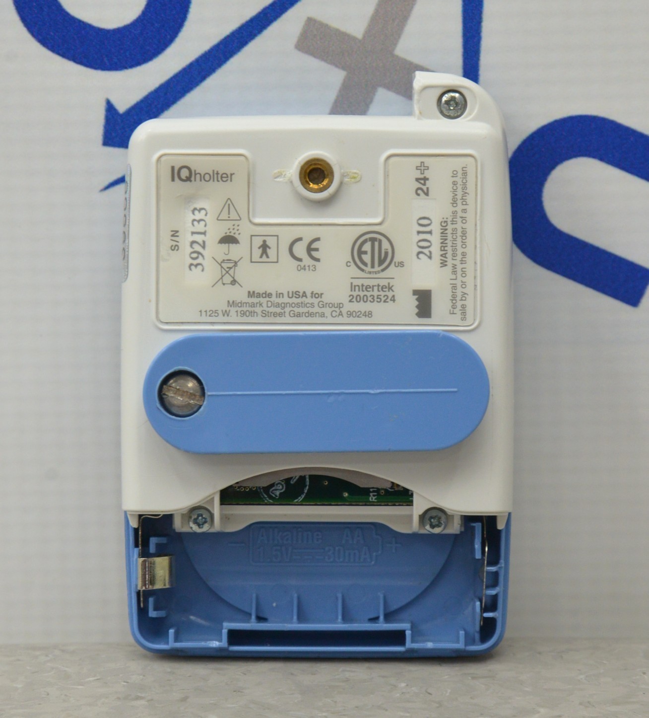 This Midmark IQholter Digital Holter Recorder is in good working condition. This unit powers on properly. The connection points are clean and in good condition. This unit does not come with a SD card and leads. There are some minor scuff marks from previous use (see photos)This unit is powered by a AA battery, the battery is not included. The battery cover is missing. This unit comes with a 30 day satisfaction guarantee. Includes everything in the pictures and nothing else.