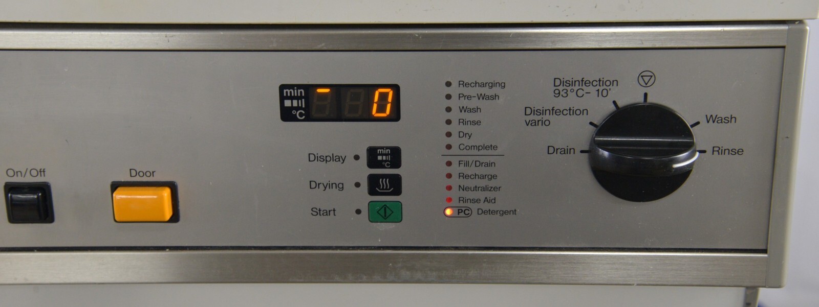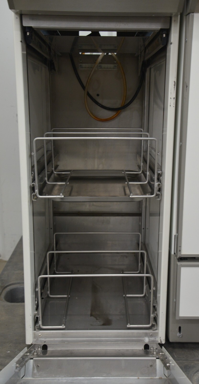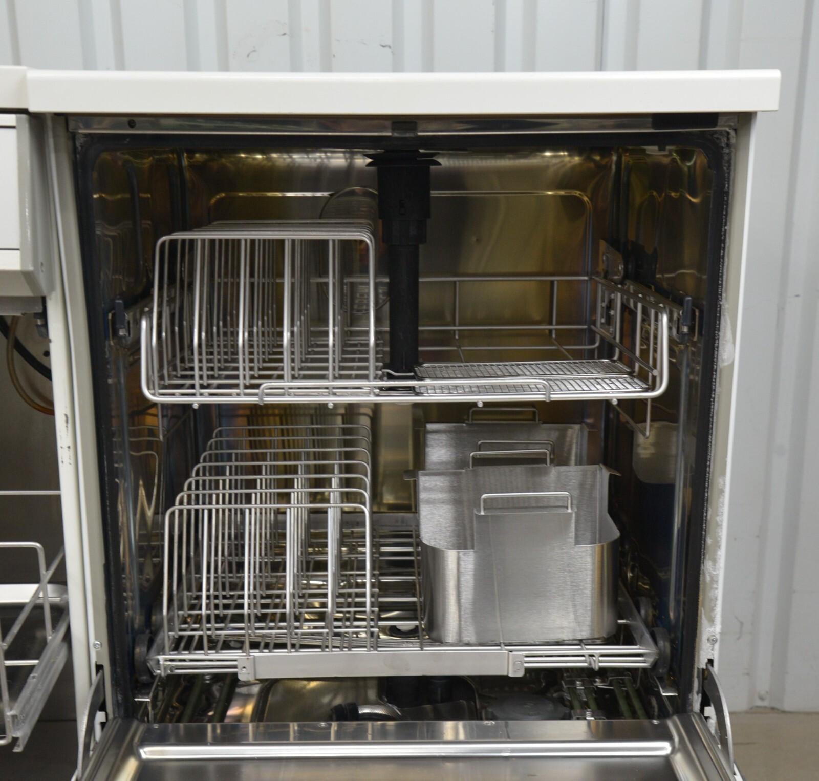 This Miele Professional G 7881 Lab Glassware Washer w/ Dryer G 7896 is in good cosmetic condition. This unit powers on and responds to selection; however, this unit was tested by a third party and it will not cycle, for this reason it is being sold for parts. The connections are clean and in good condition. There are minor scuff marks from previous use (see photos). Includes everything in the pictures and nothing else.