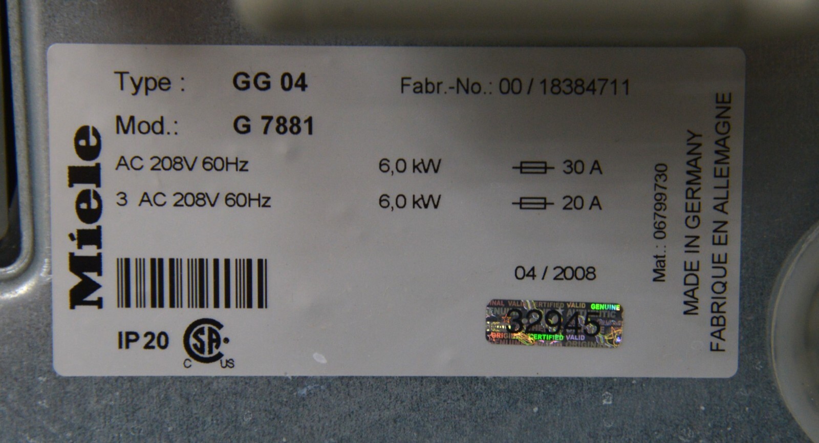 Miele Professional G 7881 Lab Glassware Washer w/ Dryer G 7896