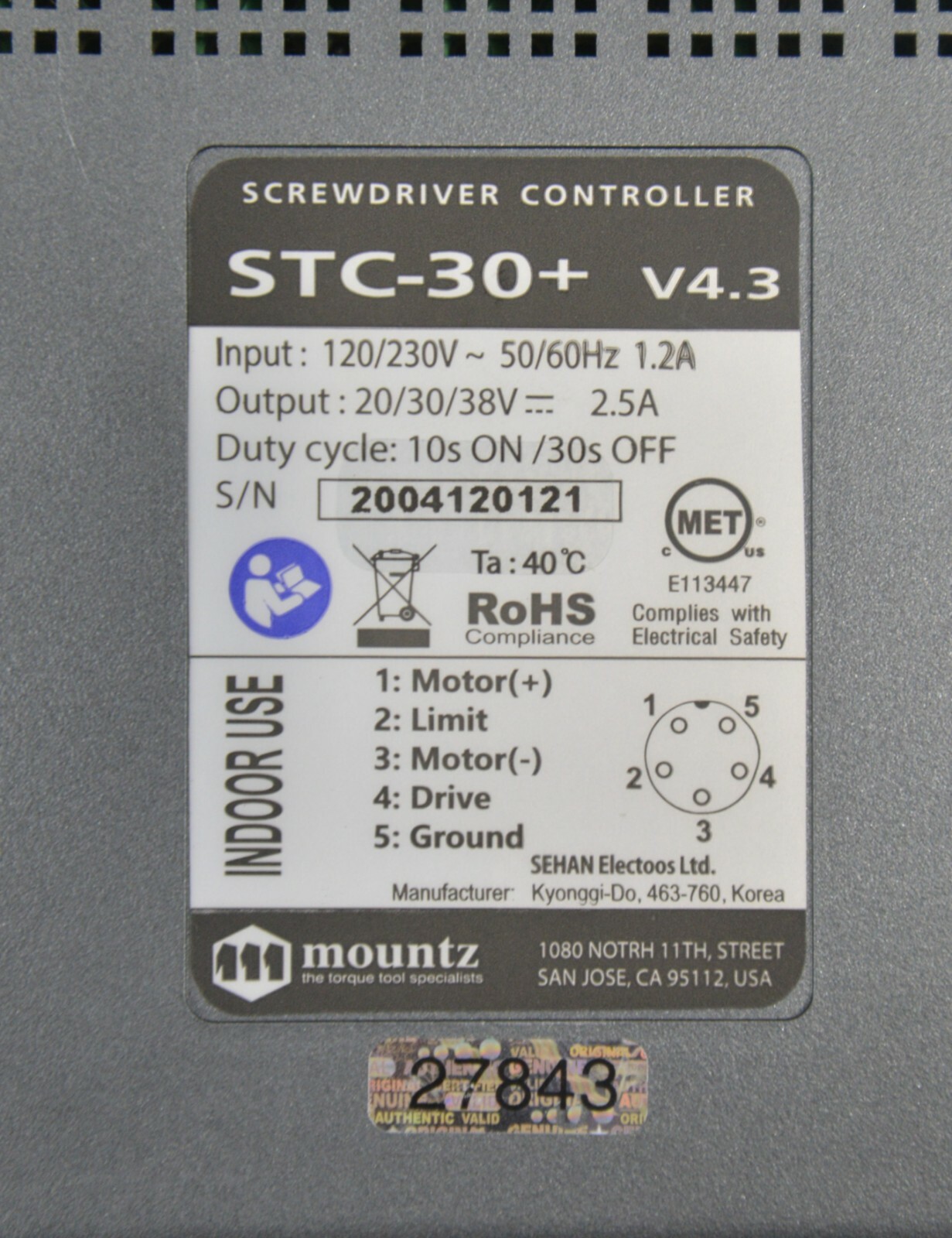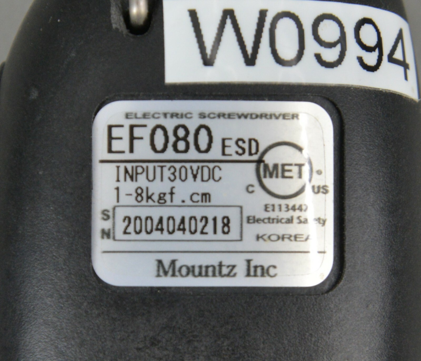 Mountz E-DRIV EF080 ESD Electric Screwdriver 0.8 – 6.9 lbf.in STC30+ Transformer