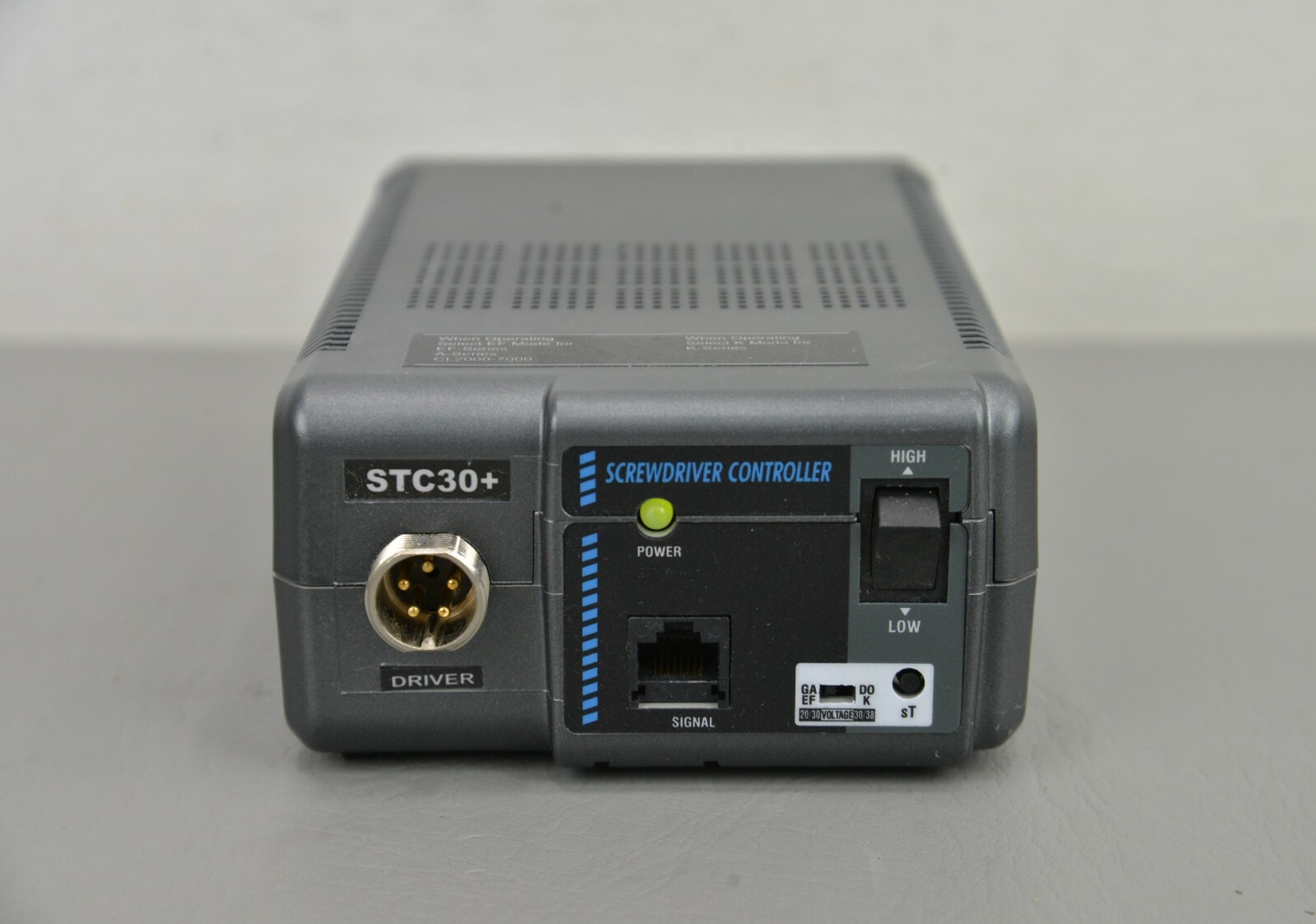 This kit is in good condition with little use. The transformer powers on and functions properly. The electric screwdriver is in excellent working condition, it is shrink wrapped to keep the previous desired pressure but it can easily be removed (see photo). The drive size is 1/4″ F/HEX. Includes the electric torque screwdriver, STC30+ transformer,  connecting cable and  power cord. This unit comes with a 30 day satisfaction guarantee. Includes everything in the picture and nothing else.