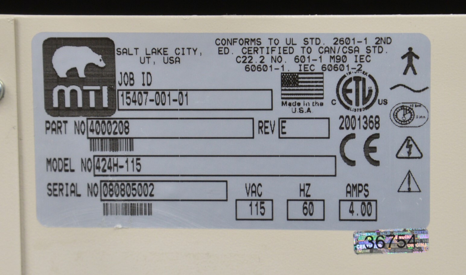 DISCLAIMER: Regardless of the origin of the equipment, documentation provided or identification appearing upon the equipment, the equipment described and offered here is in no way certified for, recommended for, or offered for any specific use. The purchaser agrees that the seller shall not be held responsible or liable for any injuries or damages, whether incidental or consequential, associated in any way with the equipment. The purchaser, by bidding on this equipment, indicates their acknowledgment of, and agreement to the terms of this disclaimer.