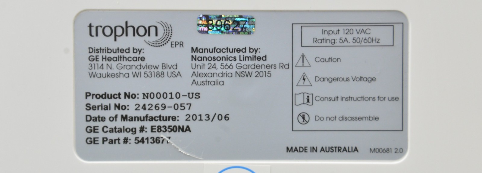 Nanosonics Trophon EPR High Level Disinfection N00010 2013/06
