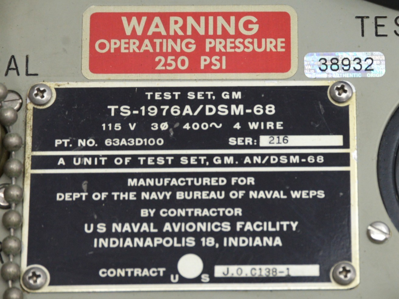 NAVEWEPS Guided Missile Test Set AN/DSM-68 63A3D100 – 1965