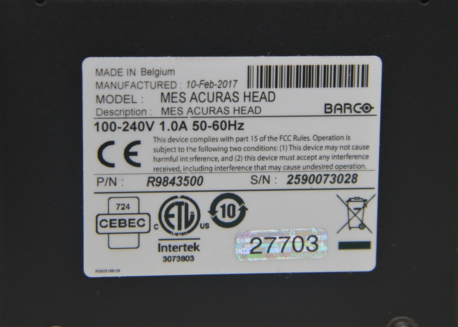 New Barco MES Acuras Auto Alignment Head R9843500 w/ Canon EOS 1100D SLR Camera