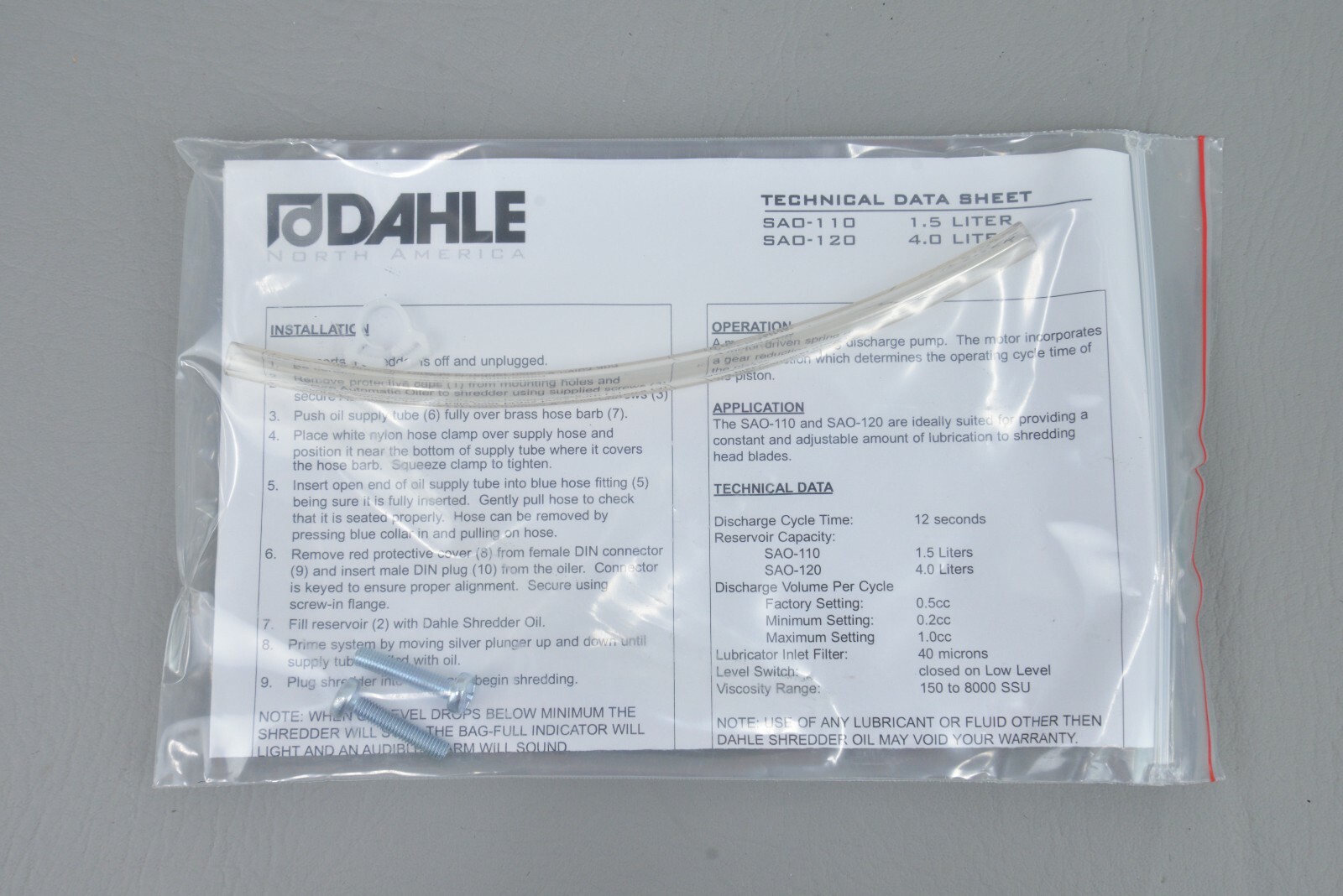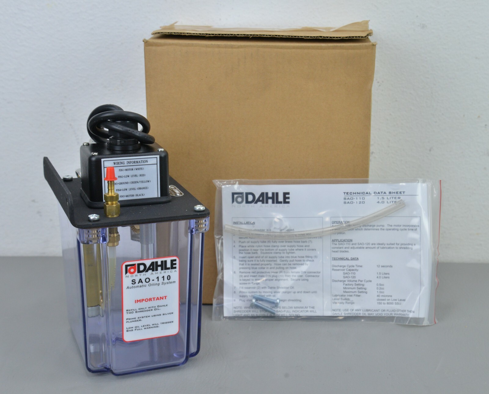 This New, Dahle, SAO-110, Automatic Oiling System is new. Items were removed from their original packaging for photography purposes only. This item comes with a 30 day satisfaction guarantee. Includes everything displayed in the photos and nothing else.