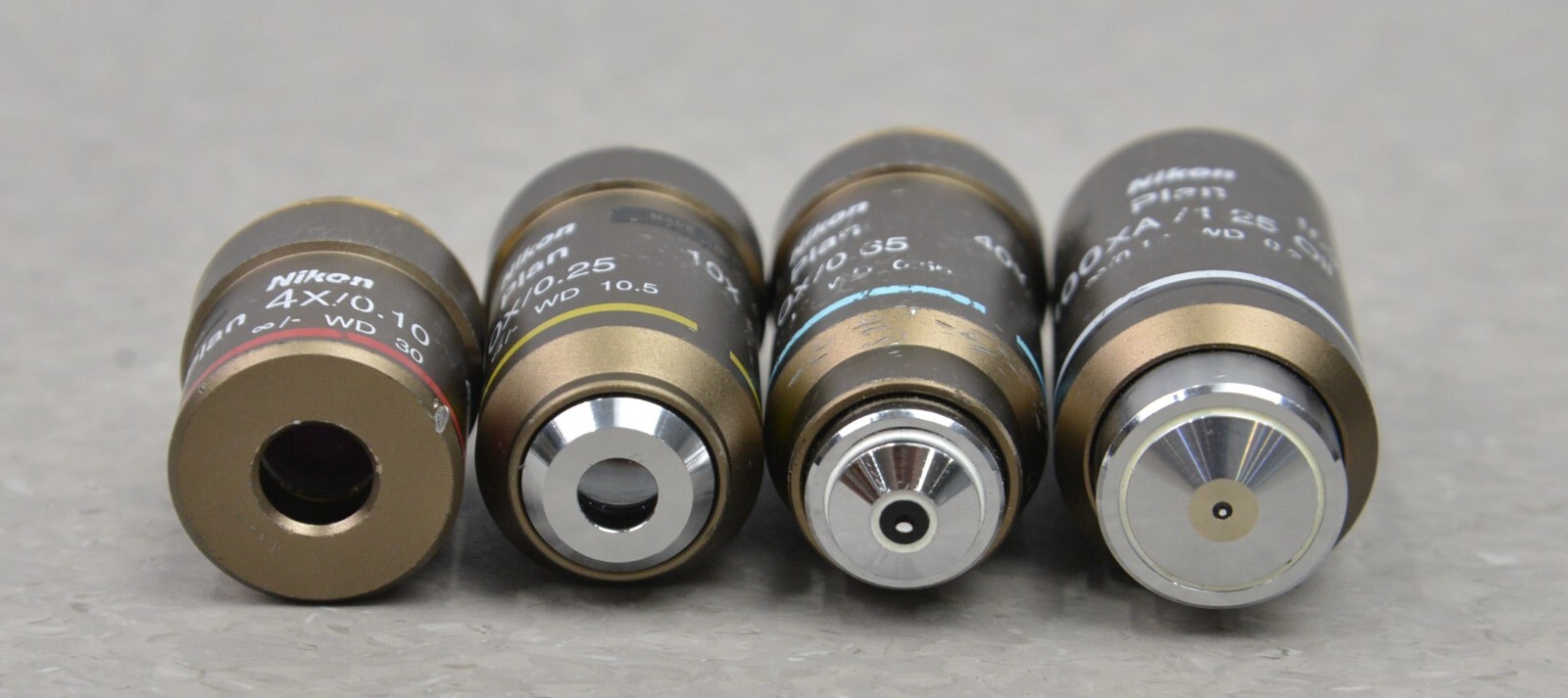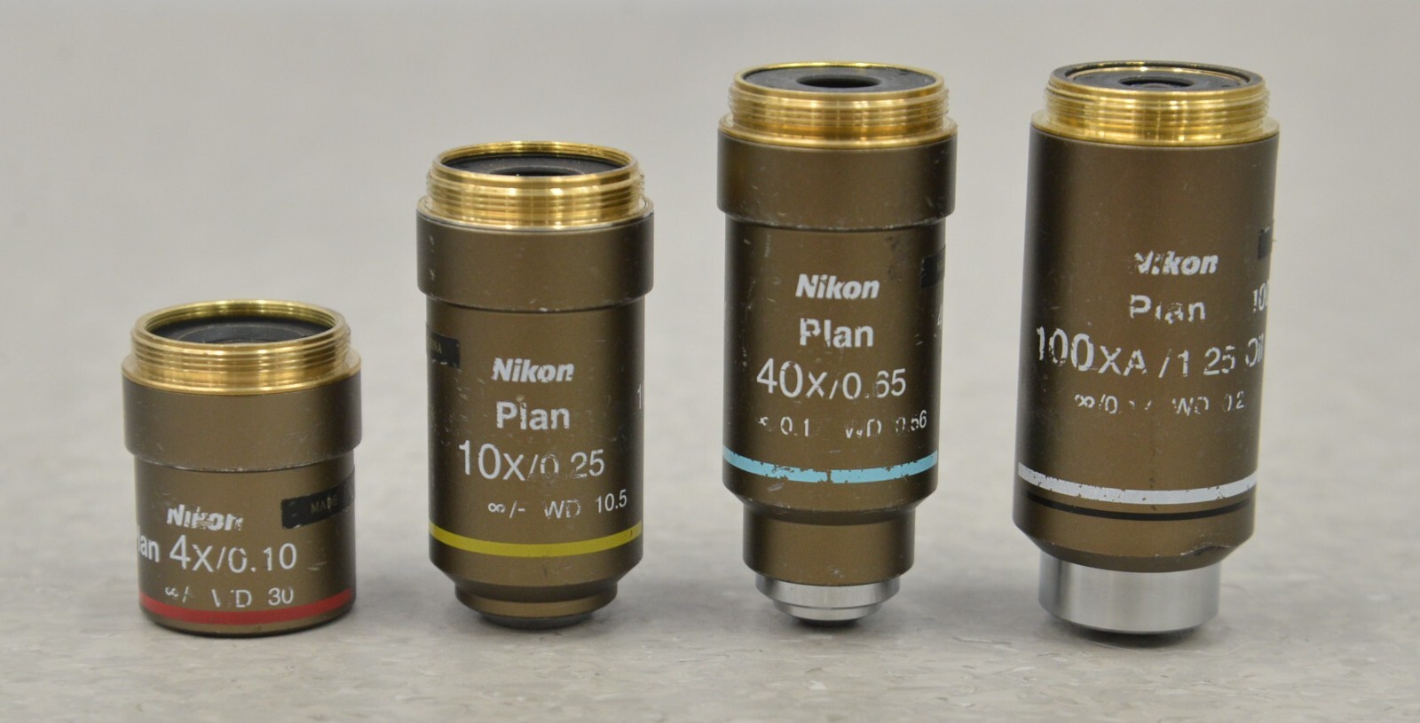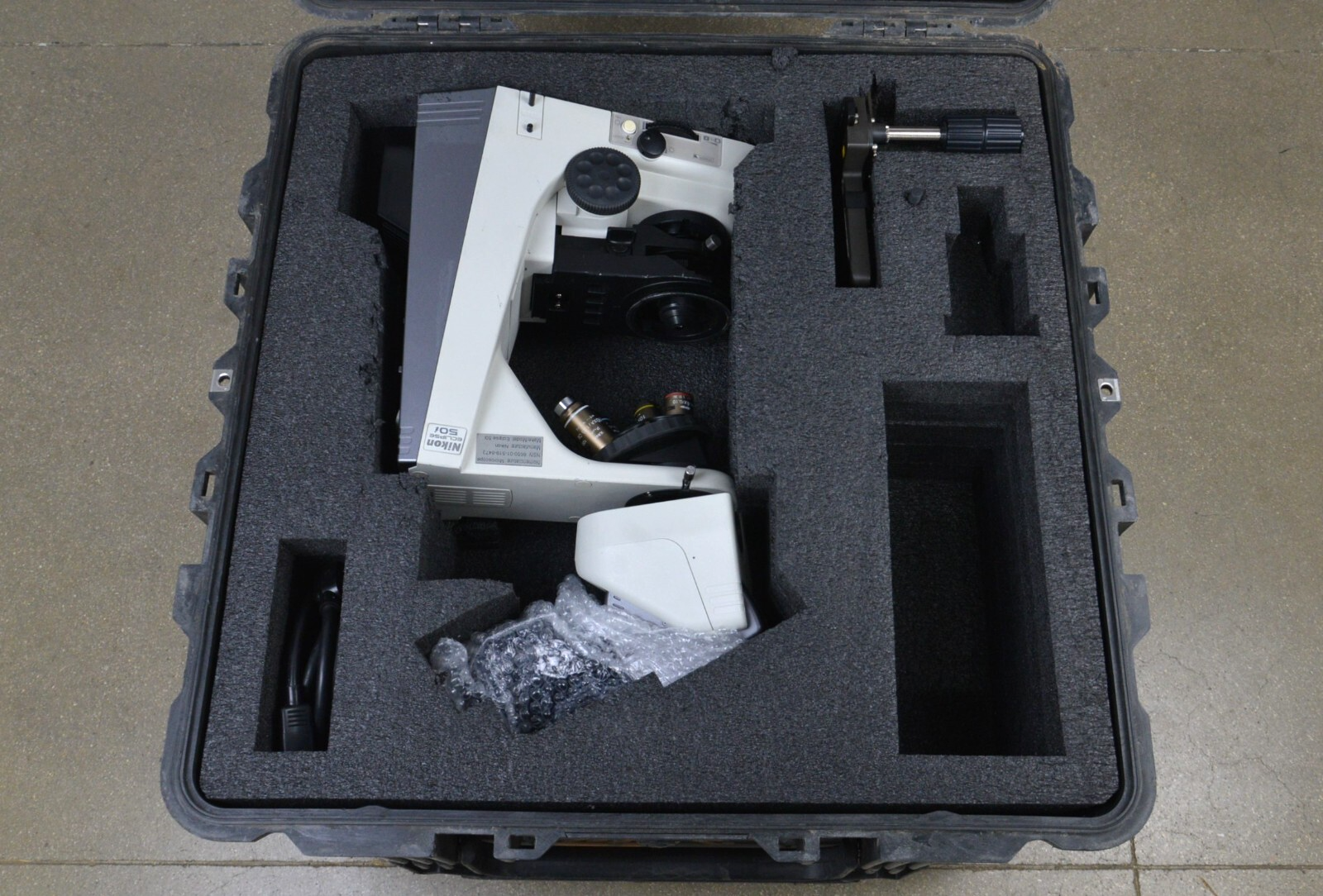 This Nikon Eclipse 50i Upright Microscope W/ 4 Plan Objectives 4x, 10x, 40x, 100xA is in good working condition. The unit powers on and all adjustments work properly. The lenses have a clear view. The Plan objectives are clean and in good condition. There are some scuff marks from previous use and 2 latches are broken on the case. (see photos). This unit comes with a 30 day satisfaction guarantee. Includes everything in the pictures and nothing else.