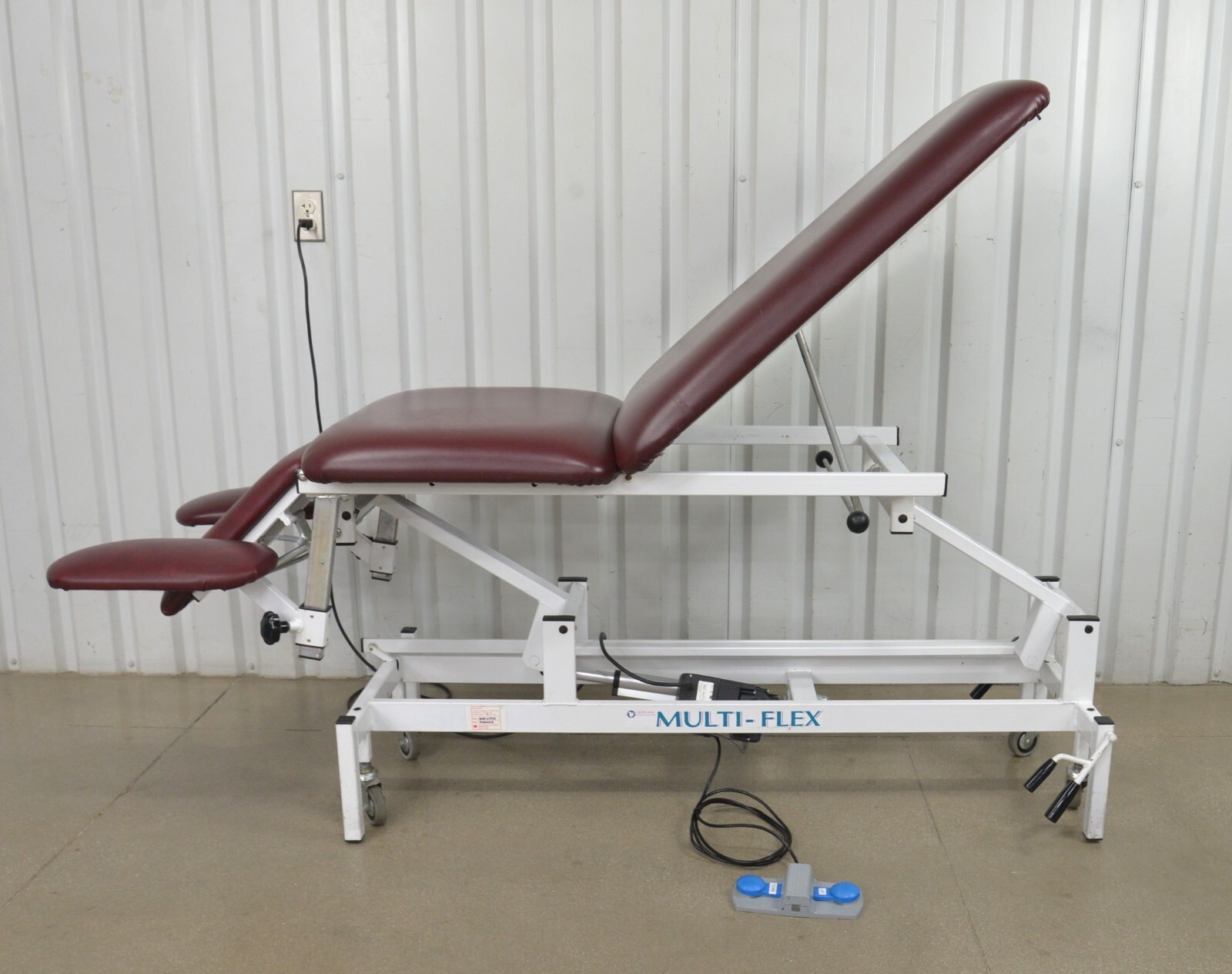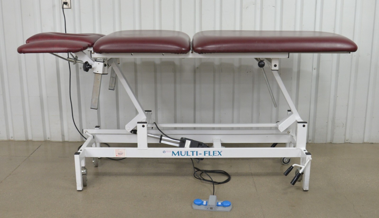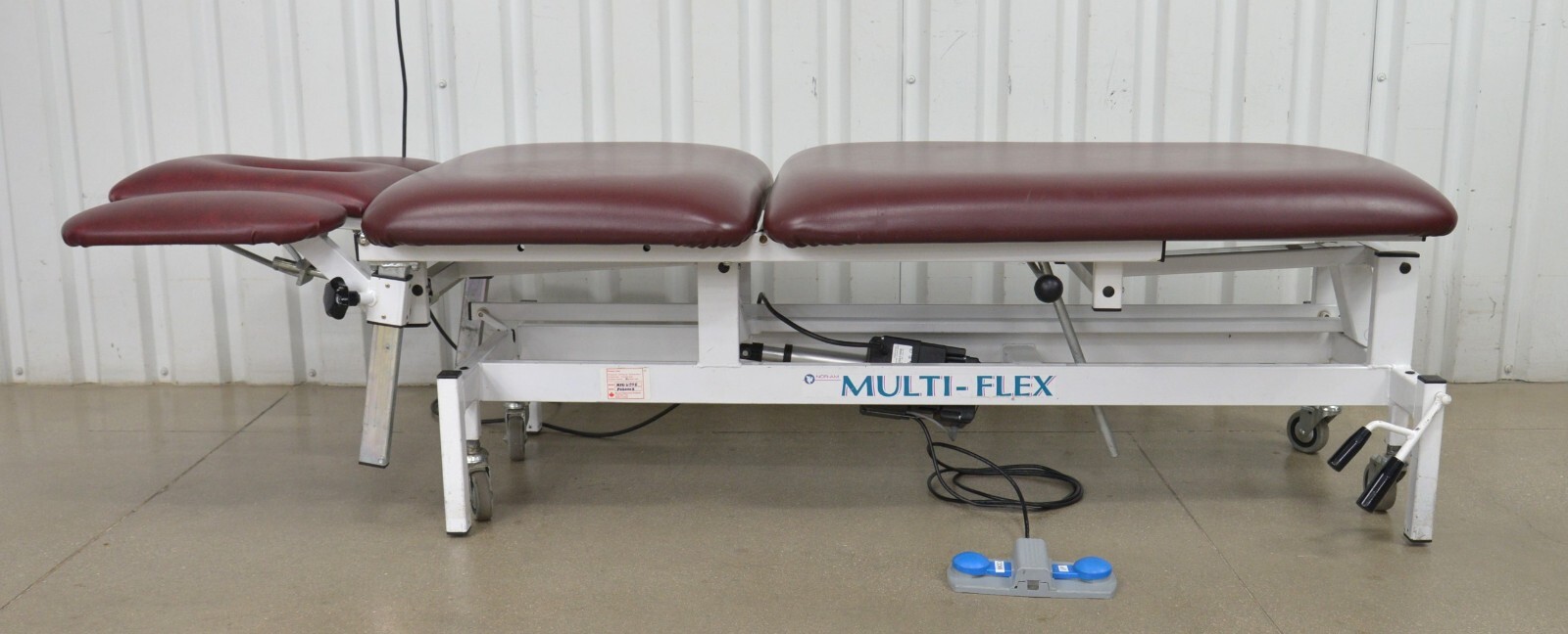 This Nor-Am Patient Care MultiFlex MFE-6193E 5 Section Treatment Table W/ Foot Switch is in good working condition. This unit powers on and moves properly through all range of motion. The upholstery has been repaired. There are some minor scuff marks from previous use (see photos)This unit comes with a 30 day money back guarantee. Includes everything in the pictures and nothing else.