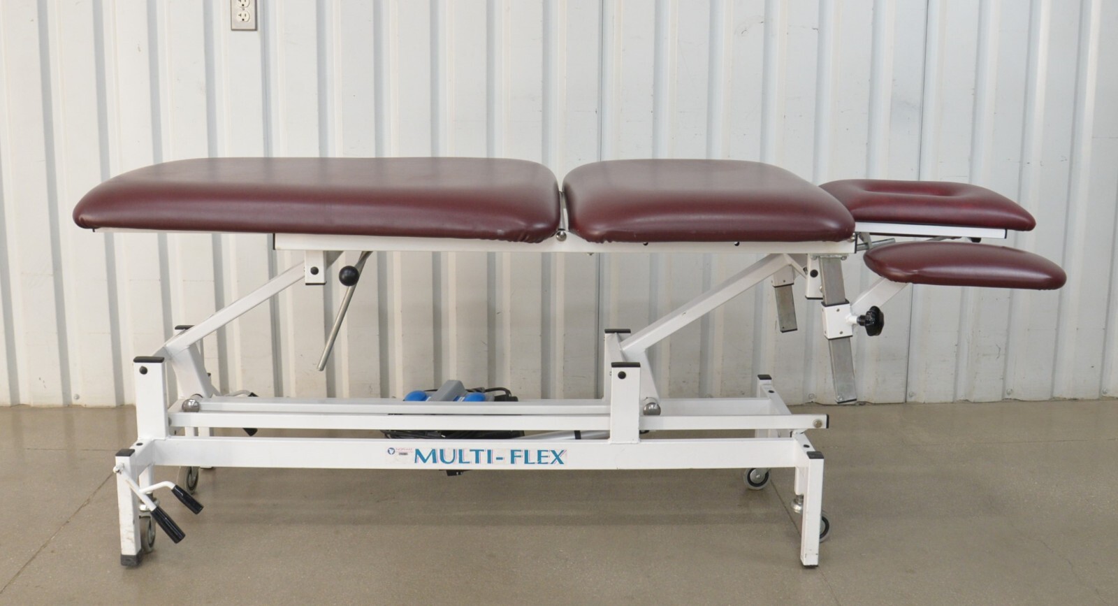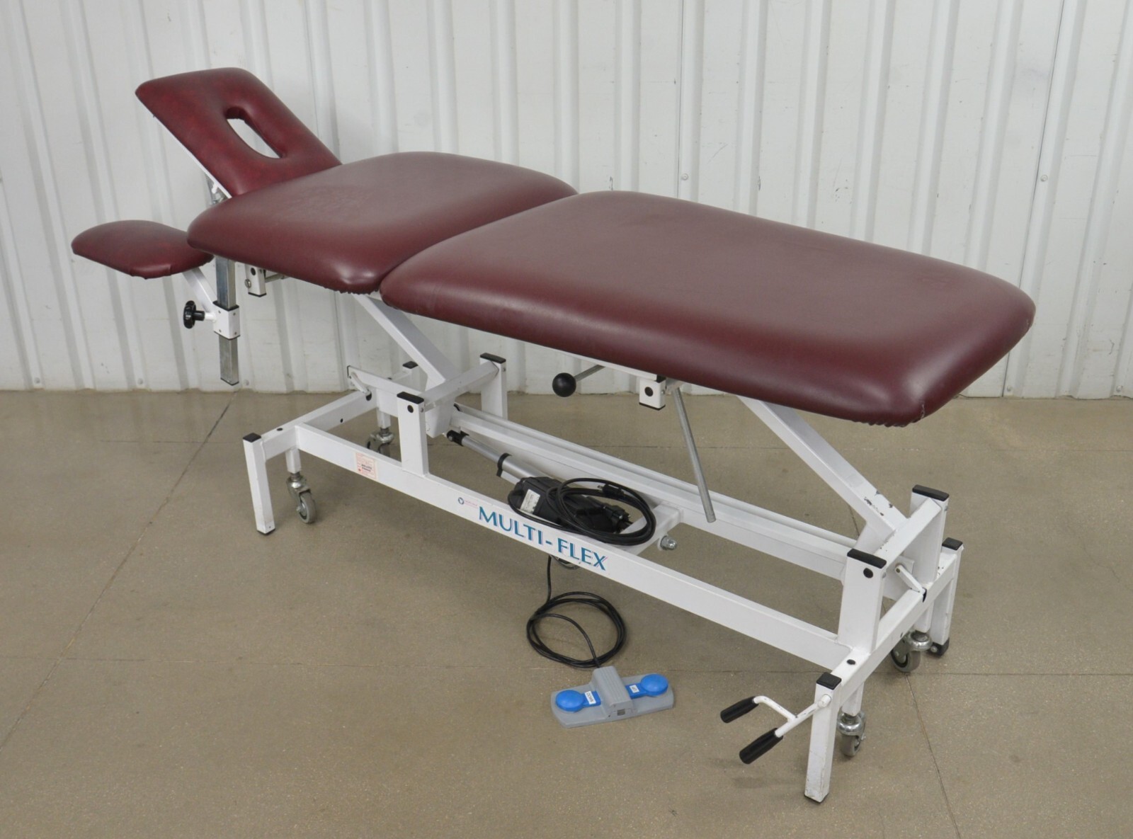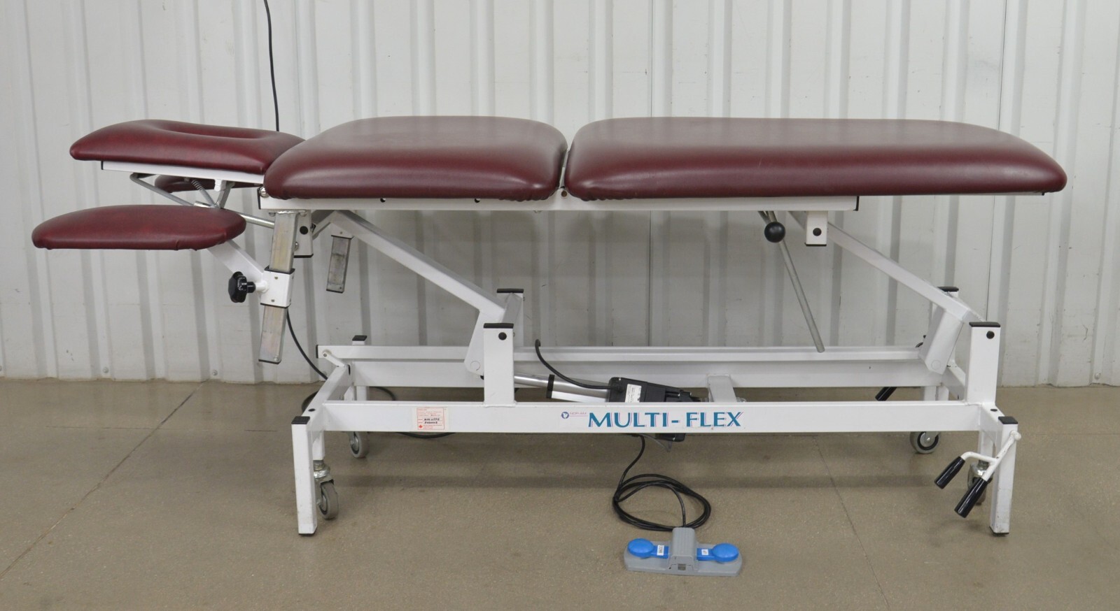 This Nor-Am Patient Care MultiFlex MFE-6193E 5 Section Treatment Table W/ Foot Switch is in good working condition. This unit powers on and moves properly through all range of motion. The upholstery has been repaired. There are some minor scuff marks from previous use (see photos)This unit comes with a 30 day money back guarantee. Includes everything in the pictures and nothing else.