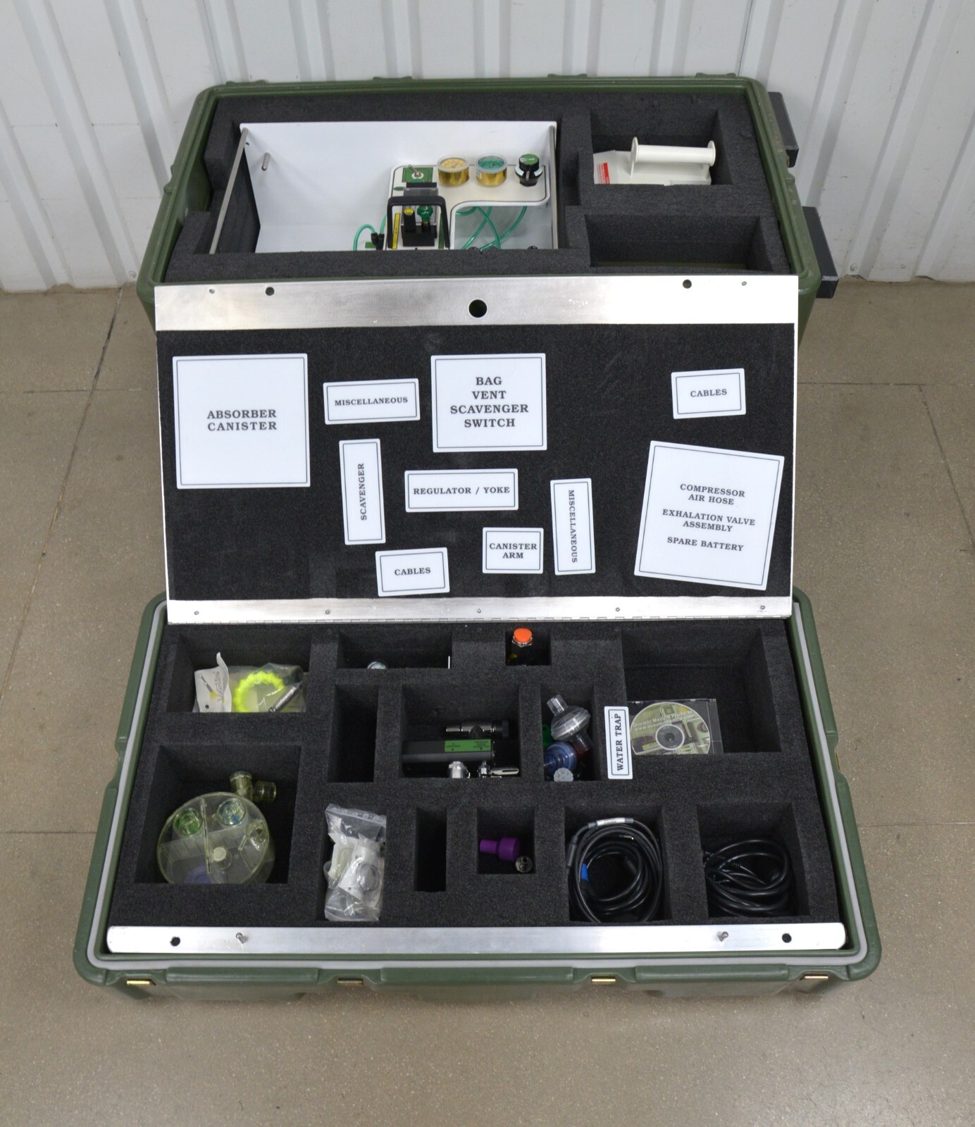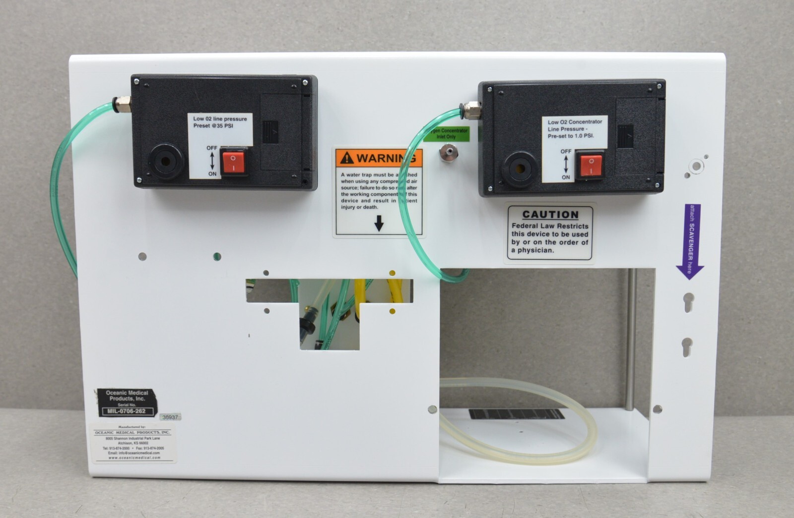 This Oceanic Medical Magellan-2200 Model-2 is in great cosmetic condition. The connection points are clean and in good condition. There are a few small scuff marks from previous use (see photos). This unit is missing the vaporizer, ventilator, bellow and scavenger. The battery is not included. This system comes with a 30 day satisfaction guarantee. Includes everything in the pictures and nothing else.