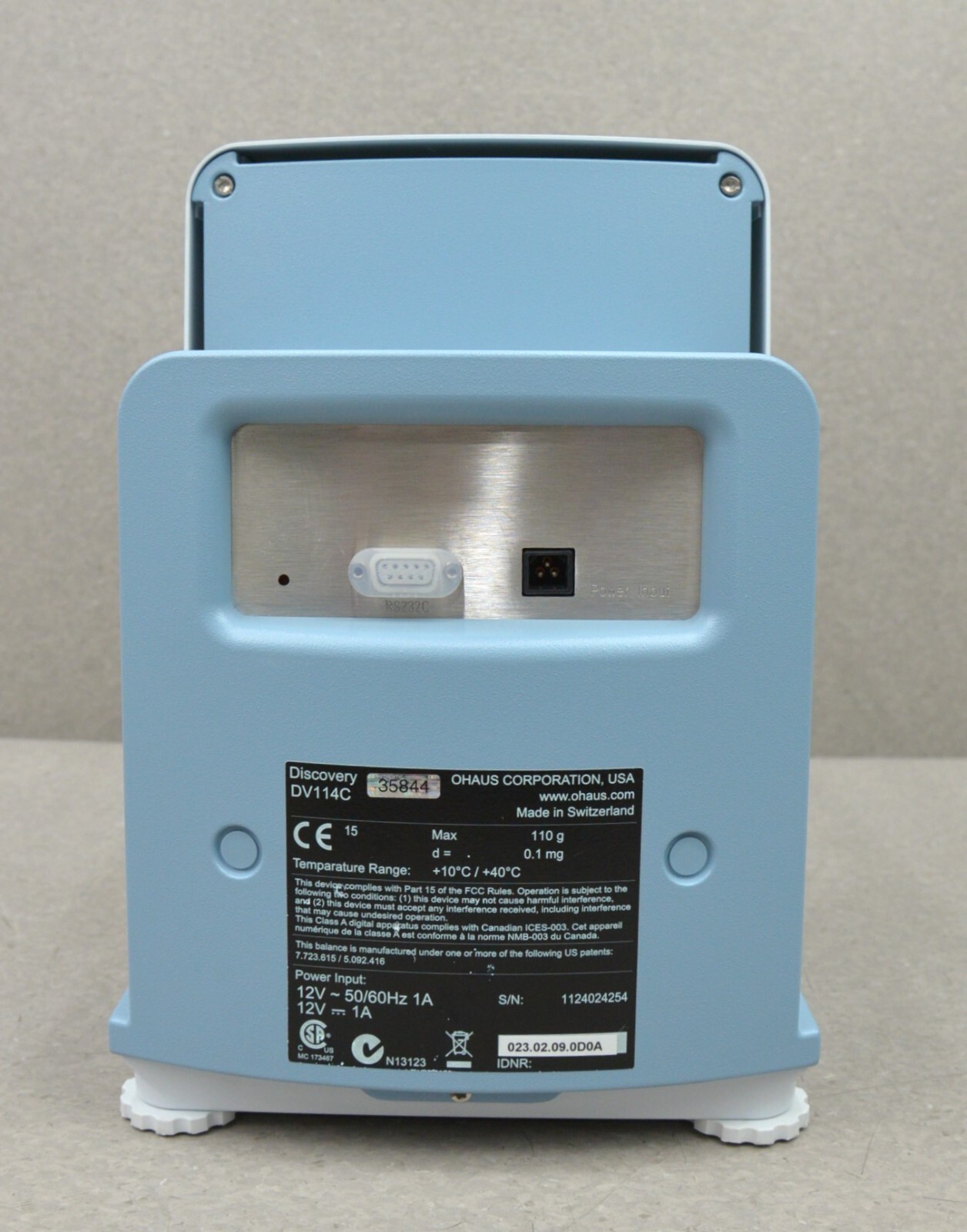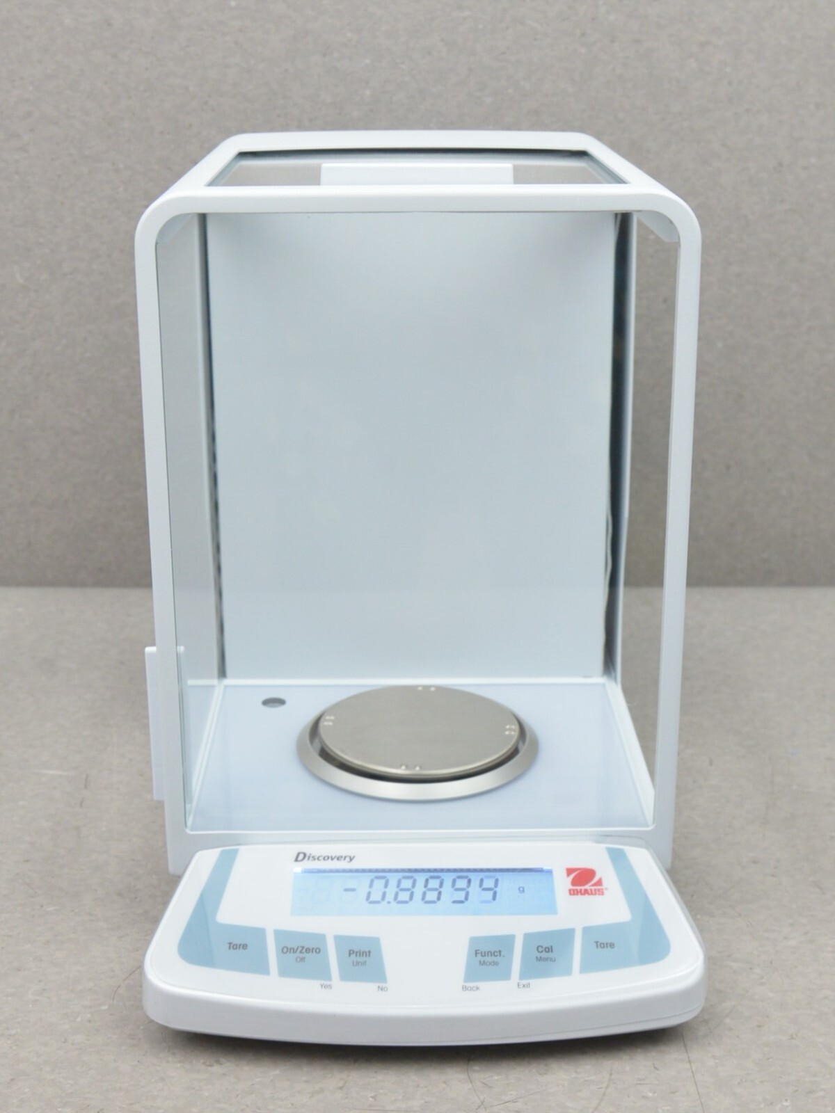 This OHaus DV114C Discovery Analytical Balance Scale is in good cosmetic condition. This unit powers on; however, there is an internal mechanism that is not working that causes the unit to be unable to calibrate and for this reason it is being sold for parts. The display screen has a clear image and the buttons respond properly to selection. One of the glass shields are missing. There are minor scuff marks and discoloration from previous use (see photos). Includes everything in the pictures and nothing else.