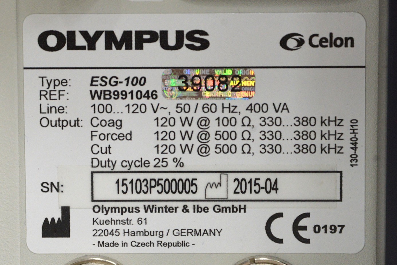 This Olympus ESG-100 Software V2.11-A ESU Generator is in great working condition. The unit powers on and the display screen responds properly to selections. The connections are clean and in good condition. There are some minor scuff marks and stains from previous use (see photos). This unit comes with a 30 day money back guarantee. Includes everything in the pictures and nothing else.