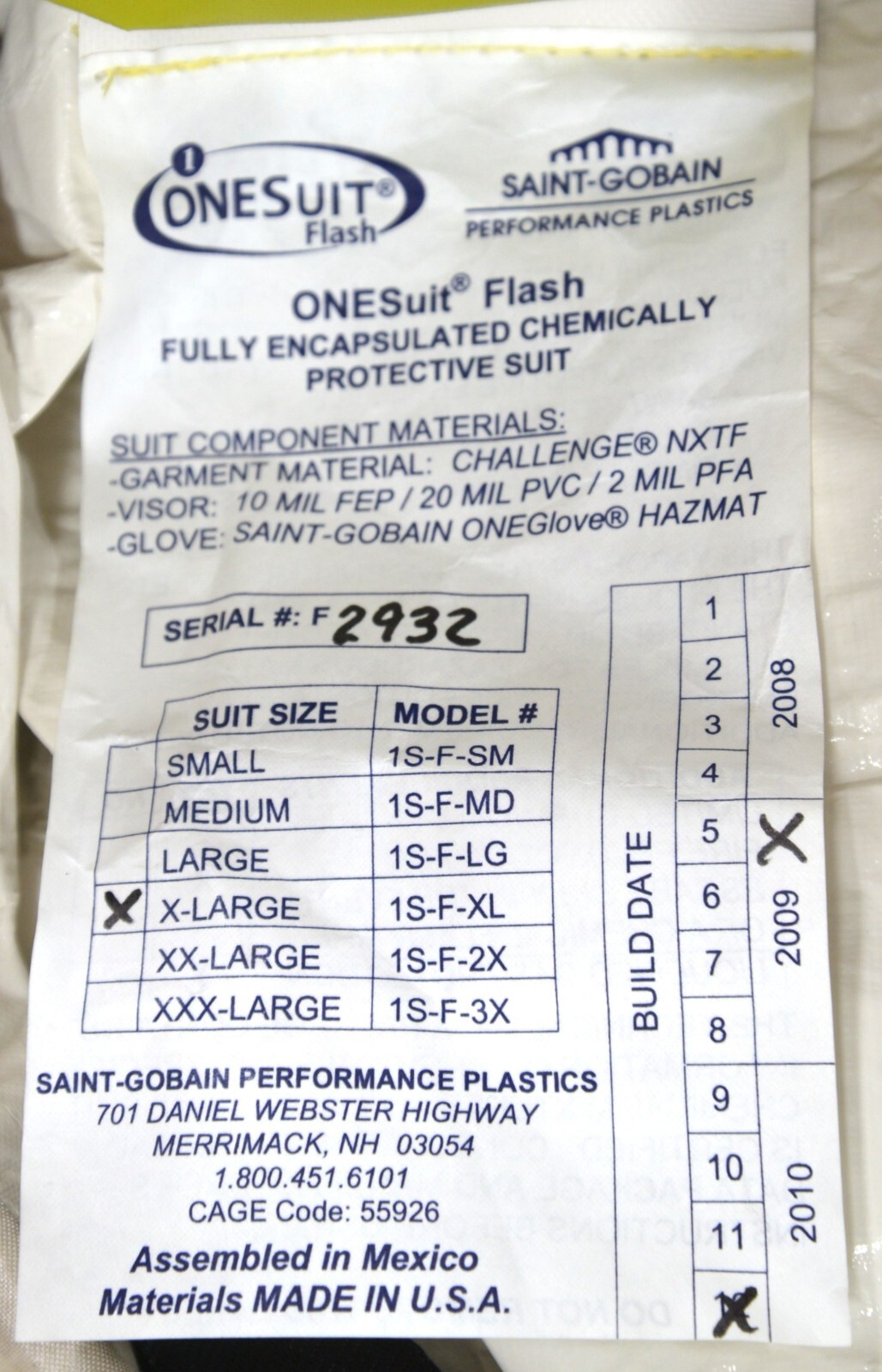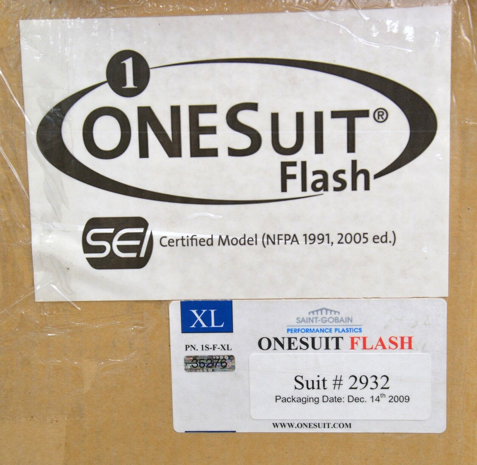 ONESuit Flash Protective Hazmat Suit NFPA 1901,2005 ed X-Large Saint Gobain SEI