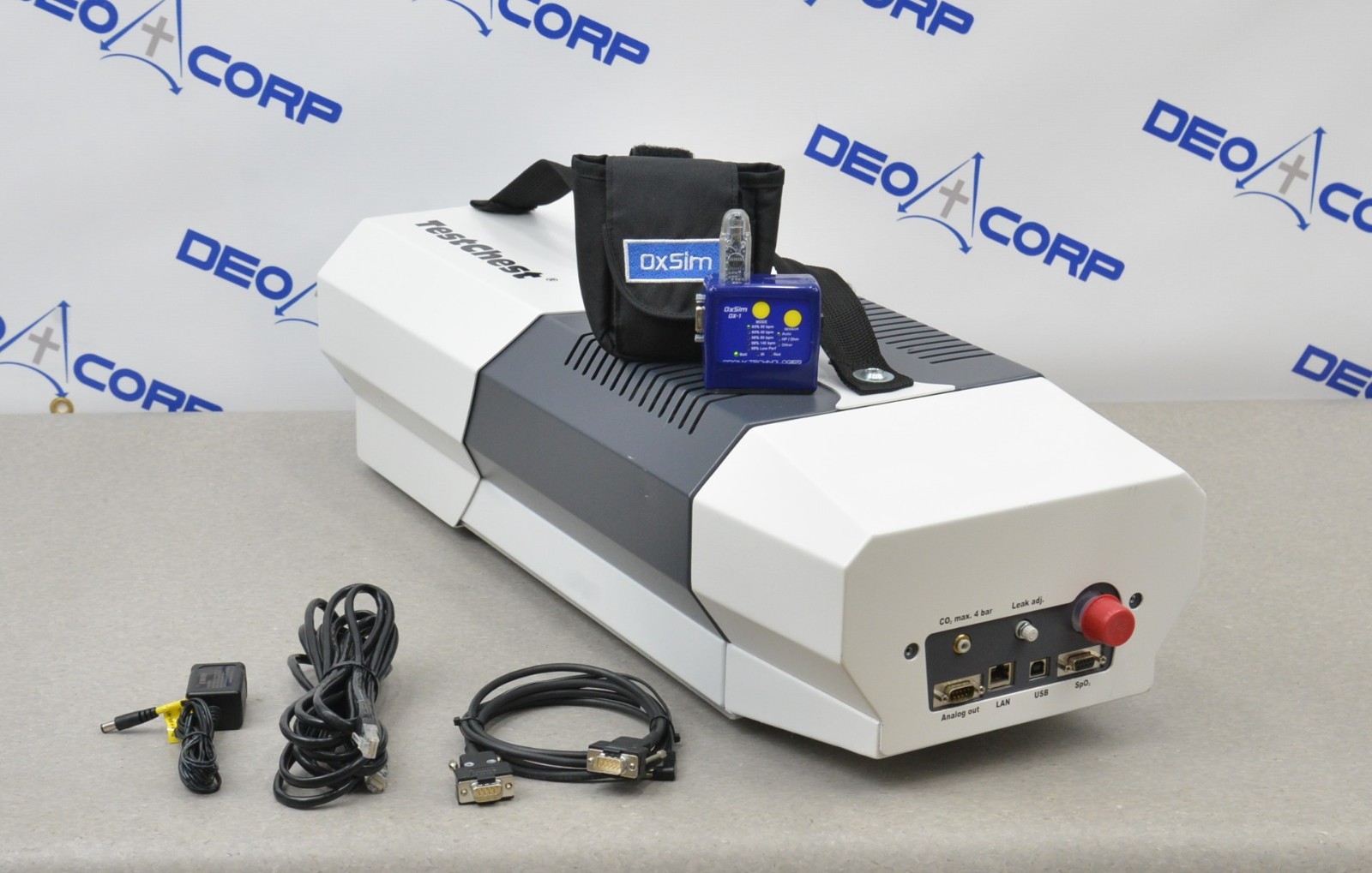 This Organis TestChest V3 System W/ Pronk Technologies OxSim OX-1 Pulse Oximeter is in good working condition. The units power on properly. The OxSim responds properly to selections. The connection ports are clean and in good condition. There are some scuff marks from previous use (see photos). This unit comes with a 30 day money back guarantee. Includes everything in the pictures and nothing else.