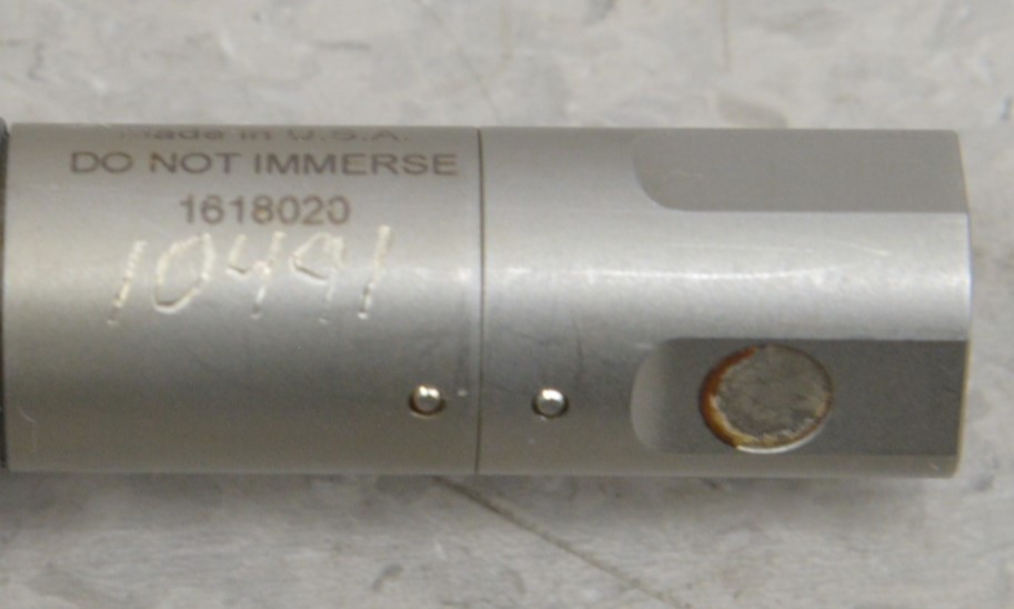 This OsteoMed Handpiece 450-0777 Straight 1:1 Drill came from a working environment and is in good condition. The connections are clean and in good condition. There are some minor scuff marks and some numbers etched in to it from previous use (see photos). This unit comes with a 30 day satisfaction guarantee. Includes everything in the pictures and nothing else.