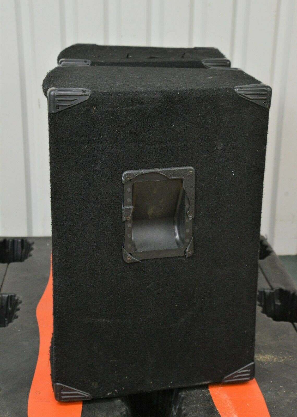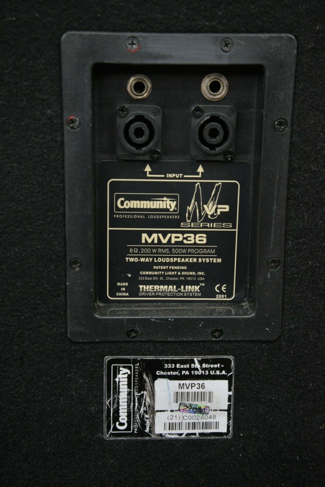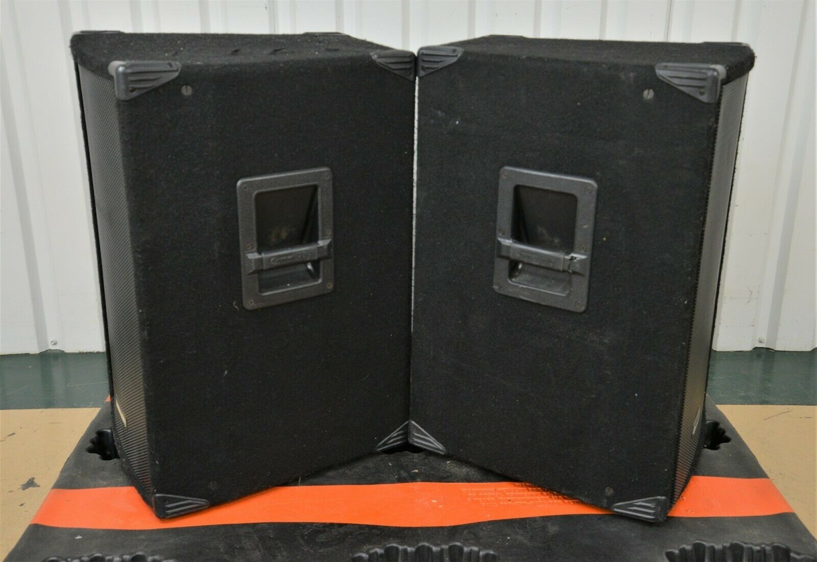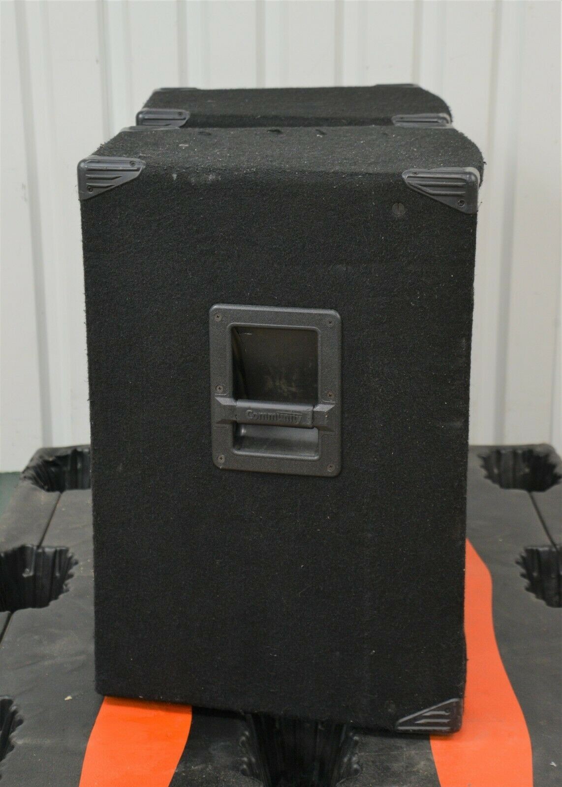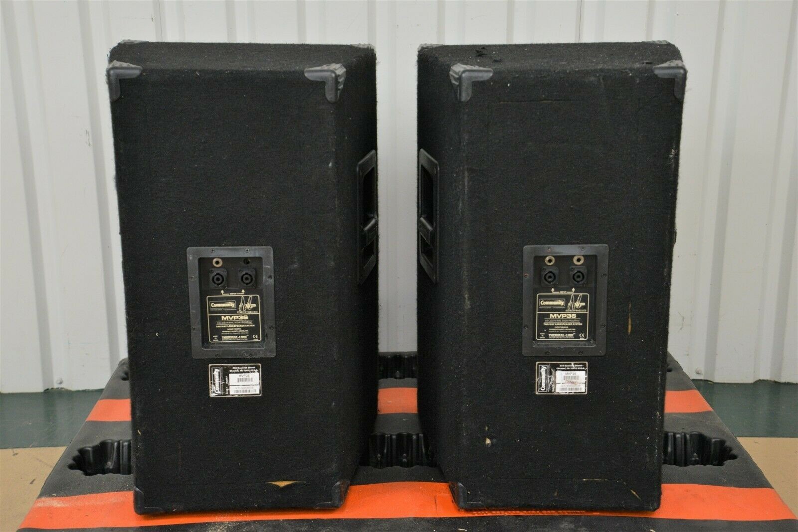 This Pair of Community MVP36 Professional Loudspeakers 15″ Two-Way Speakers are in good cosmetic condition. The connections are clean and in good condition. The speakers have some scuffs along the felt covering. Both steel grills are in good condition with the exception of the right one missing the screws and a few areas of chipped paint (see photo). The right speaker has damage to both handles. This system comes with a 30 day satisfaction guarantee. Includes everything in the pictures and nothing else.