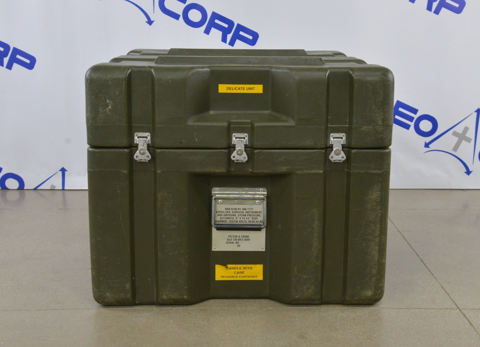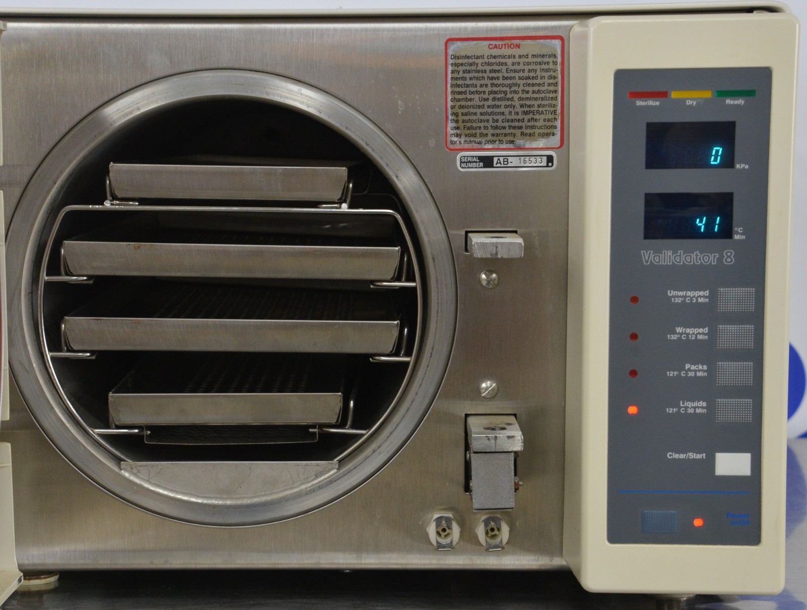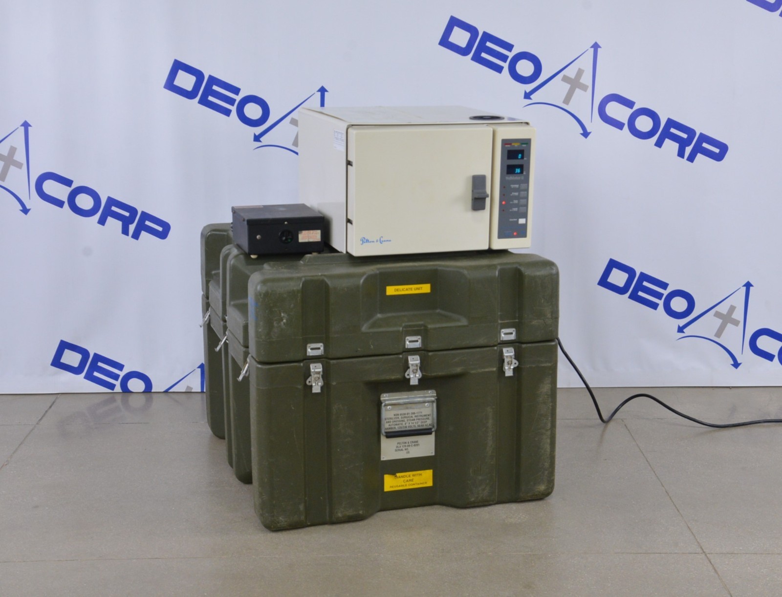 This Pelton & Crane Validator 8 AB Autoclave Sterilizer is in great working condition. The unit powers on and responds to selections. The unit heats up properly. The display is clear and the buttons respond to selection. The door opens and closes securely. We are unable to test the Military Transformer Box. There are some scuff marks from previous use (see photos). This unit comes with a 30 day satisfaction guarantee. Includes everything in the pictures and nothing else.