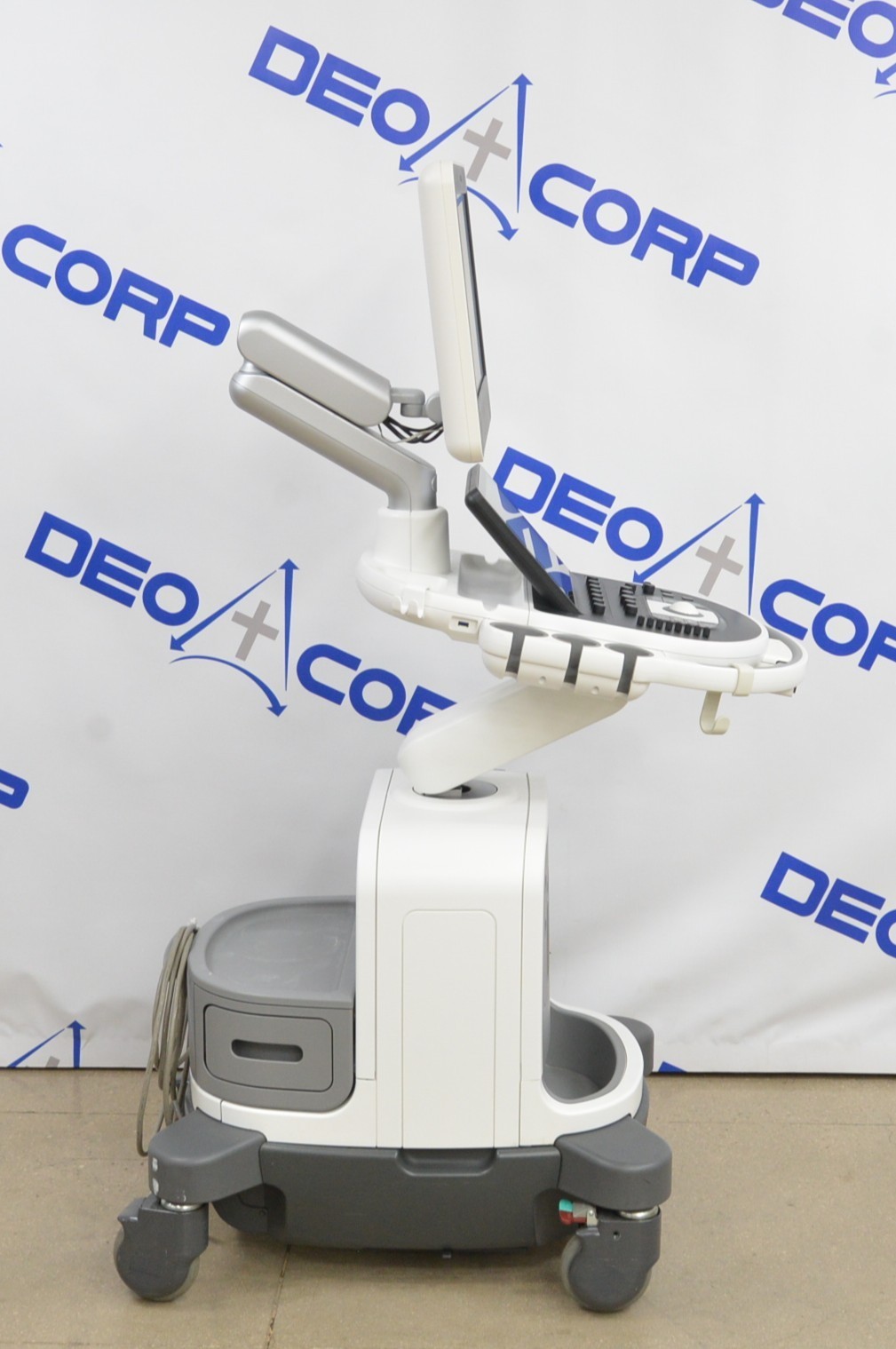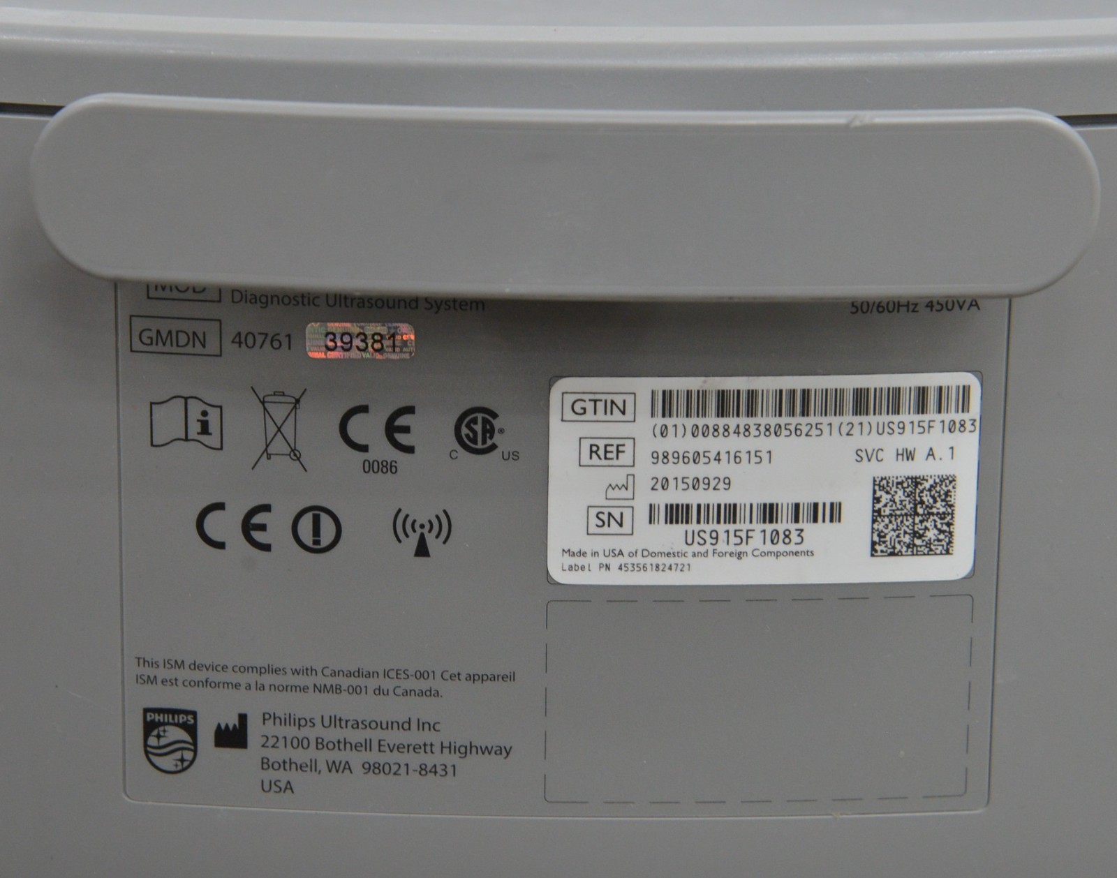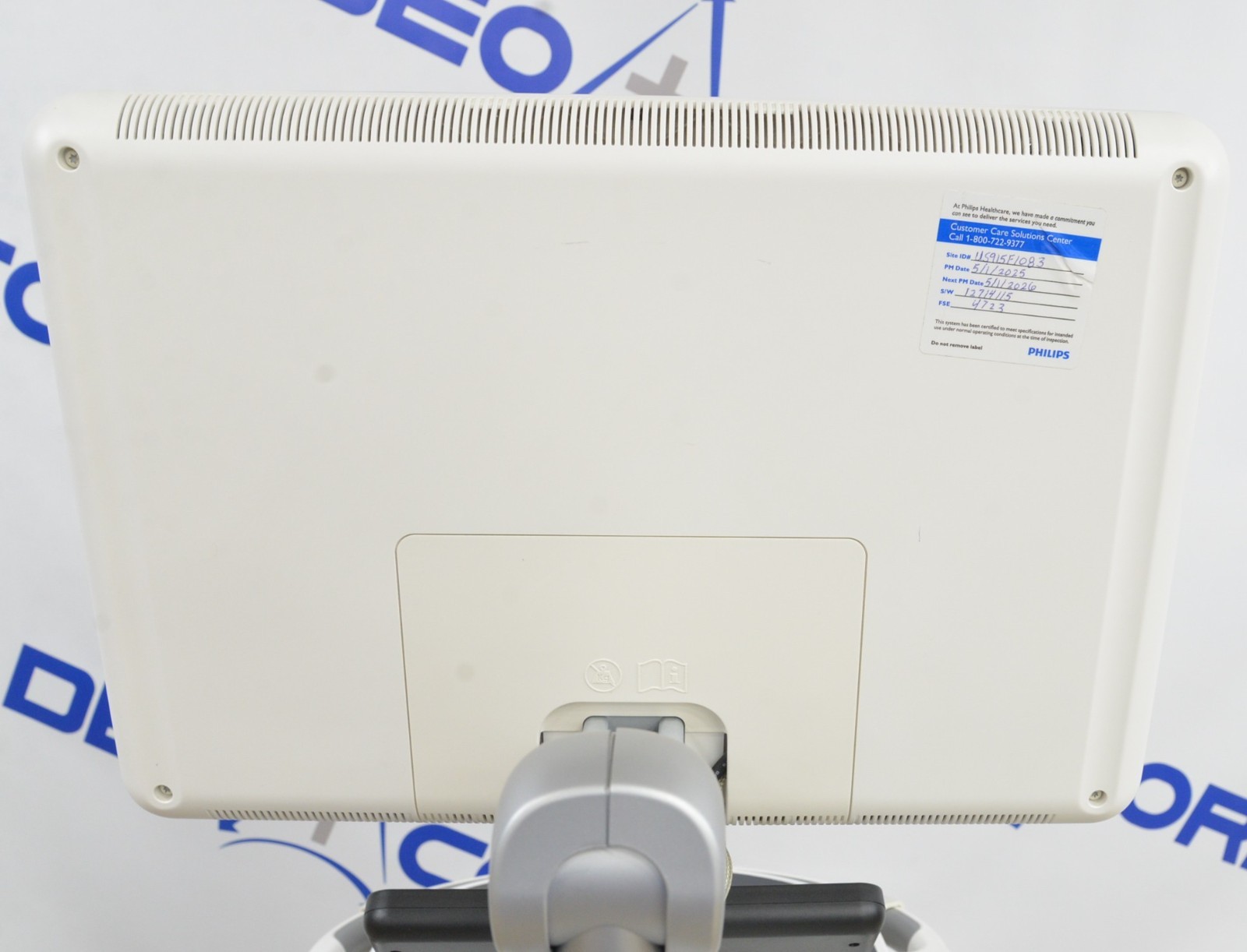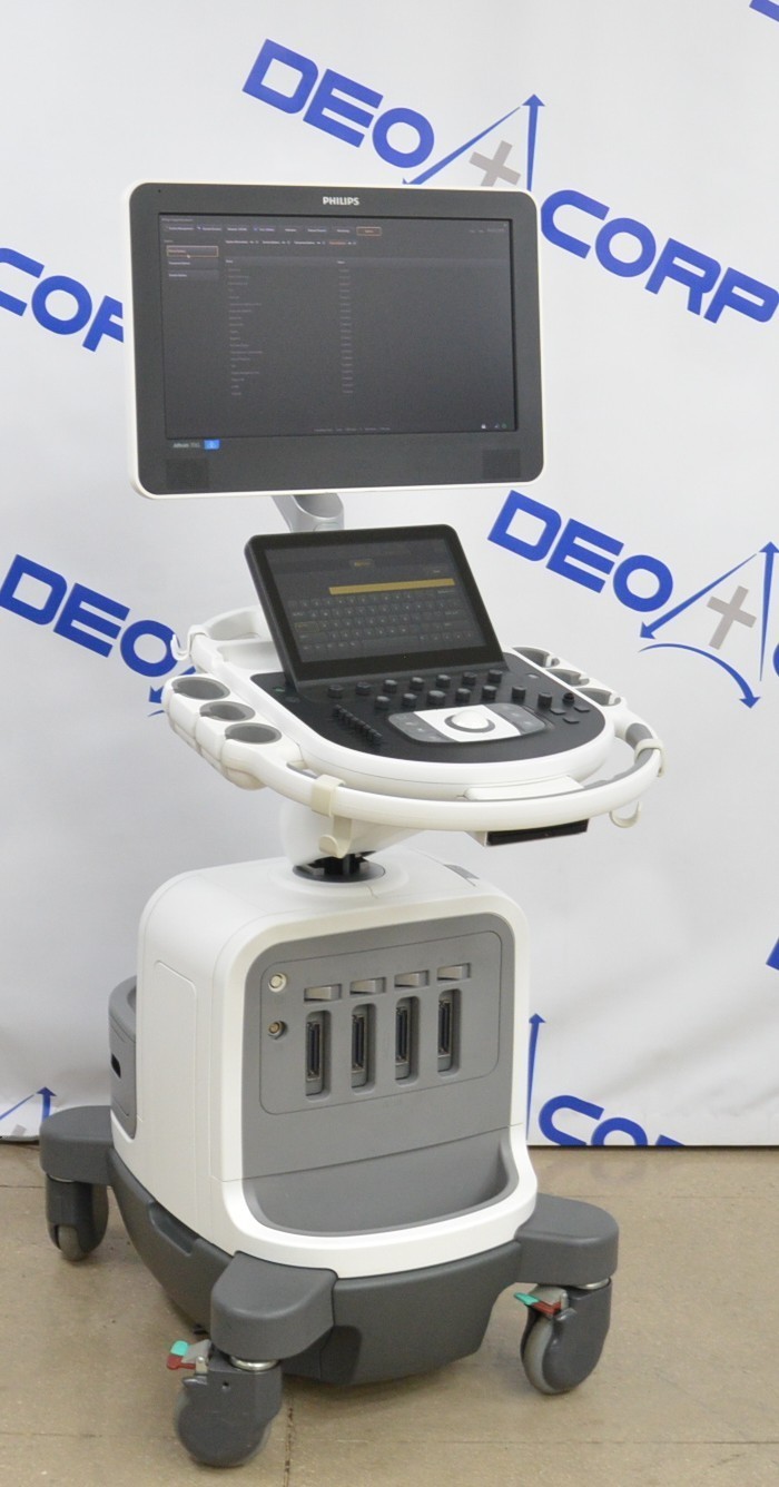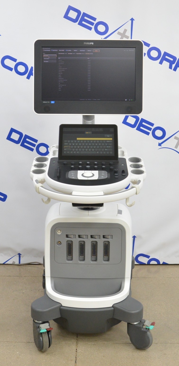 This Philips Affiniti 70G Diagnostic System V. 3.0.3 2015 is in great working condition. The unit powers on properly. Both display screens produce a clear image and respond to touch screen and buttons. All connection points are clean and in good condition. The current hardware version is A.1. The focus knob is missing the cover; however, it does not effect the functionality. There are minor scuff marks from previous use (see photos). There was a handpiece used for testing purposes, it is not included. This unit comes with a 30 day satisfaction guarantee. Includes everything in the pictures and nothing else.