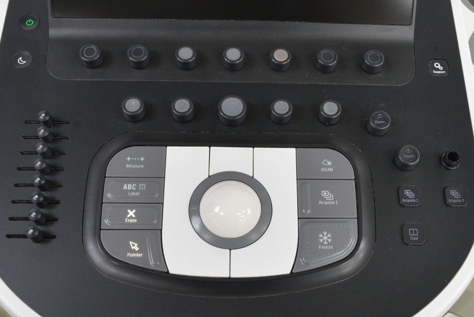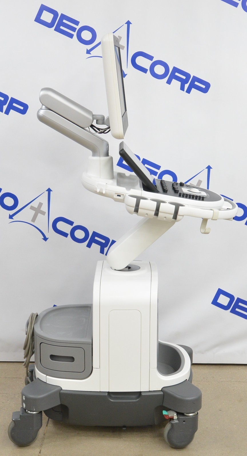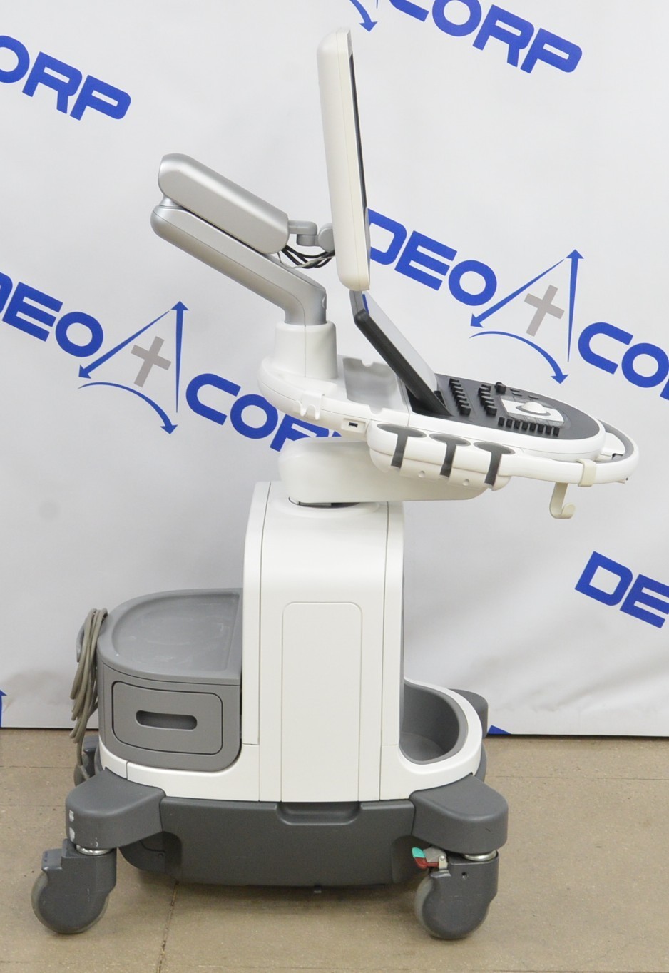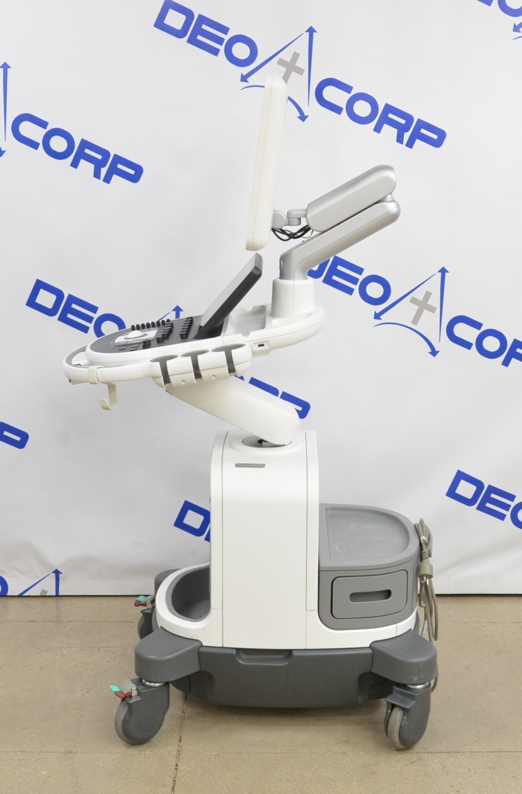 This Philips Affiniti 70G Diagnostic System V. 3.0.3 2015 is in great working condition. The unit powers on properly. Both display screens produce a clear image and respond to touch screen and buttons. All connection points are clean and in good condition. The current hardware version is A.1. The focus knob is missing the cover; however, it does not effect the functionality. There are minor scuff marks from previous use (see photos). There was a handpiece used for testing purposes, it is not included. This unit comes with a 30 day satisfaction guarantee. Includes everything in the pictures and nothing else.