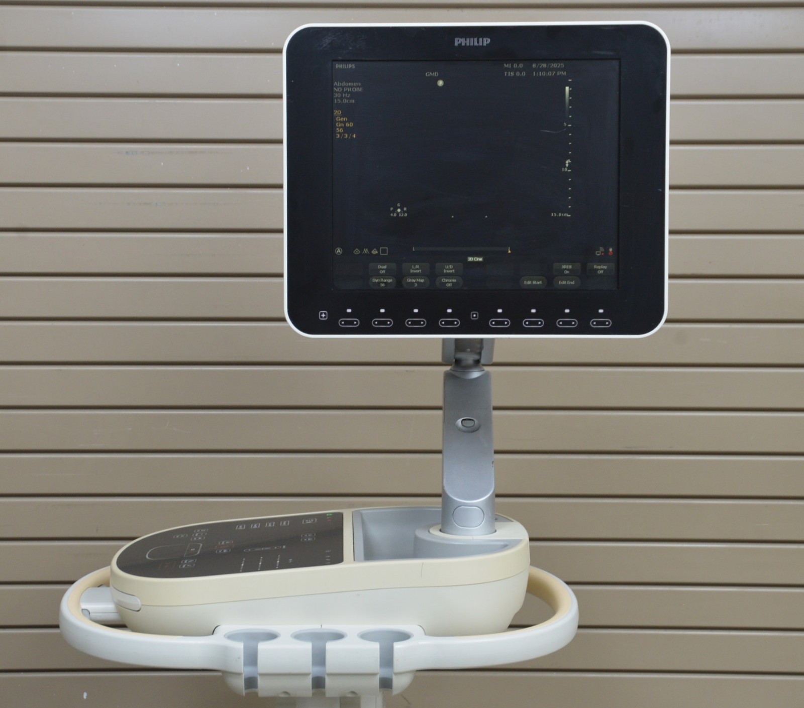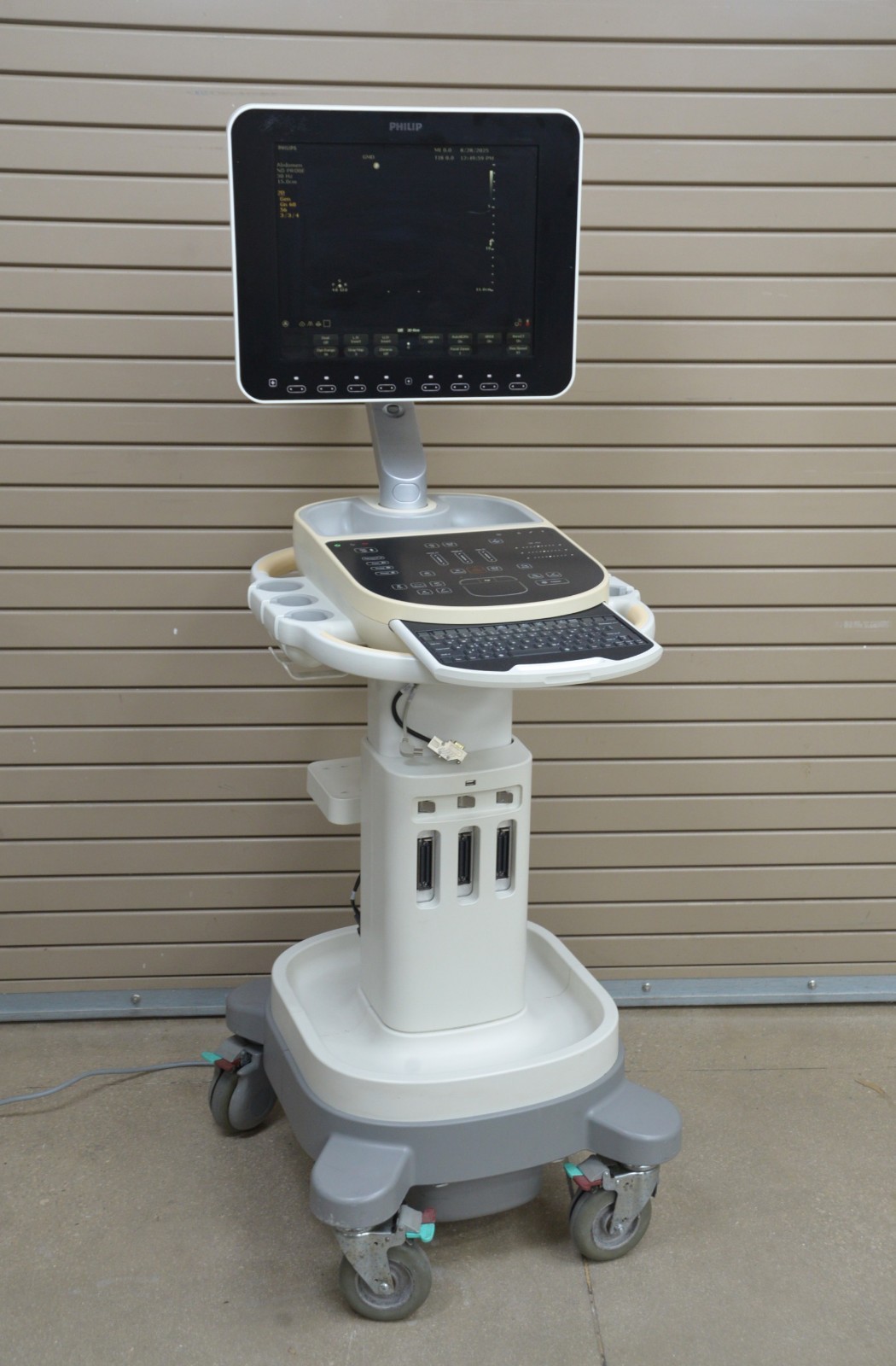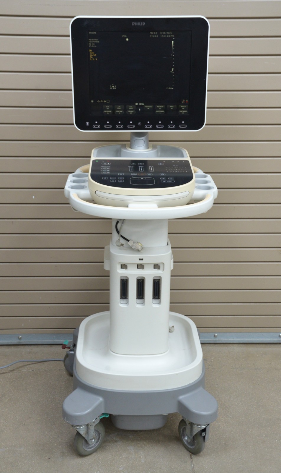 This Philips Sparq Diagnostic Imaging Machine 2015 is in great working condition. The unit powers on and responds to selection. The display screen produces a clear image. The touch pad and keyboard light up and respond to selection. This unit passed the “run system test”. The connection ports are clean and in good condition. There are some scuff marks from previous use (see photos). This unit comes with a 30 day satisfaction guarantee. Includes everything in the pictures and nothing else.