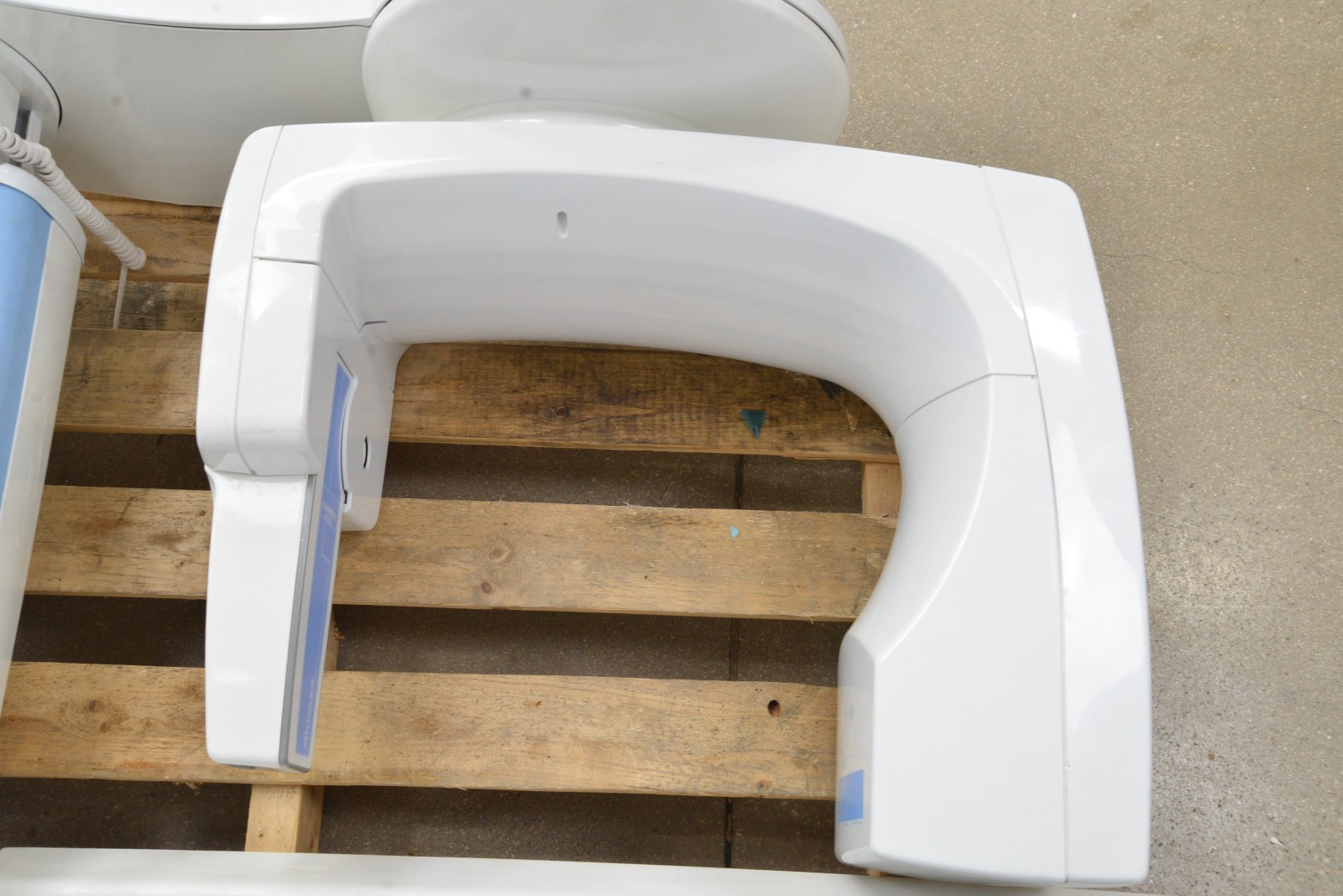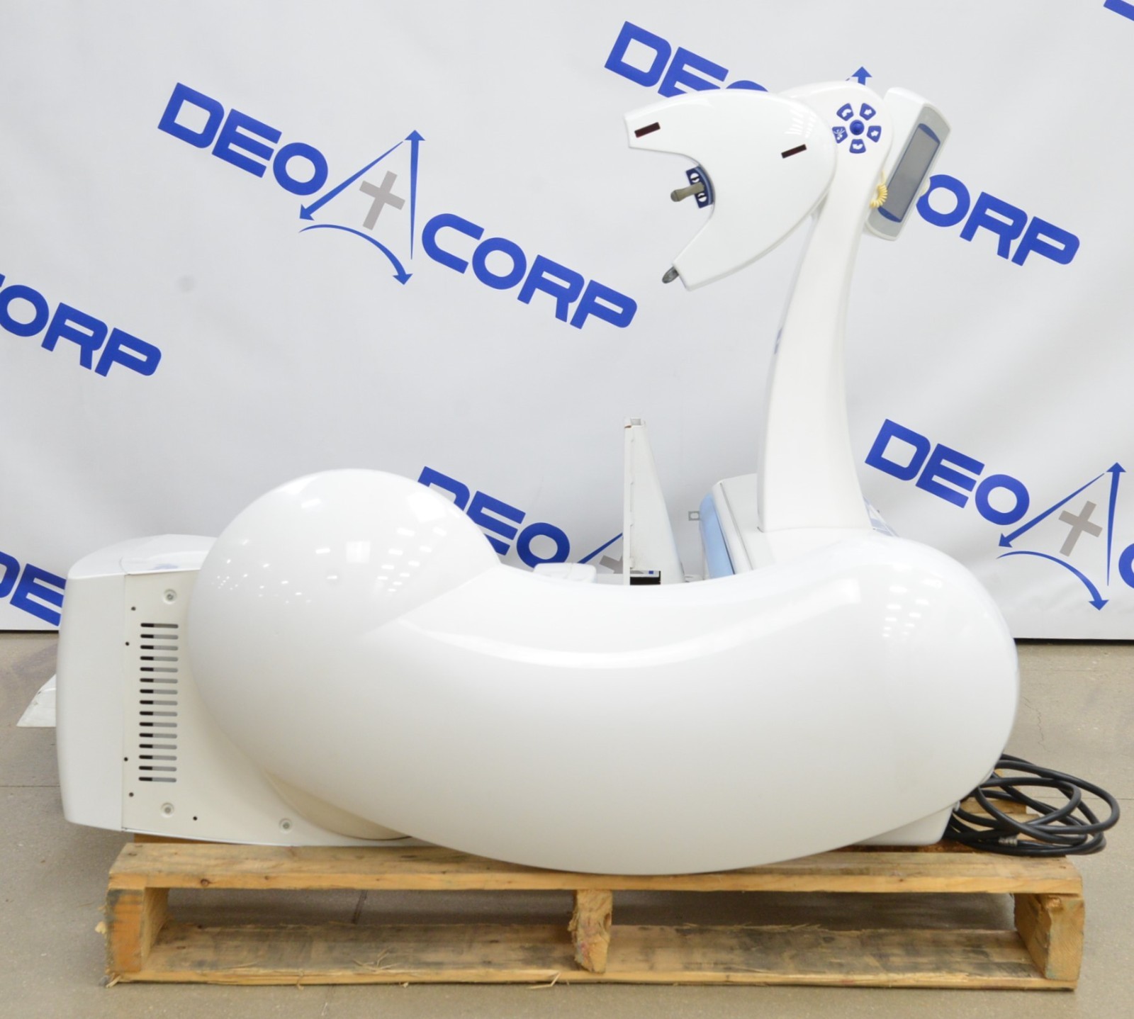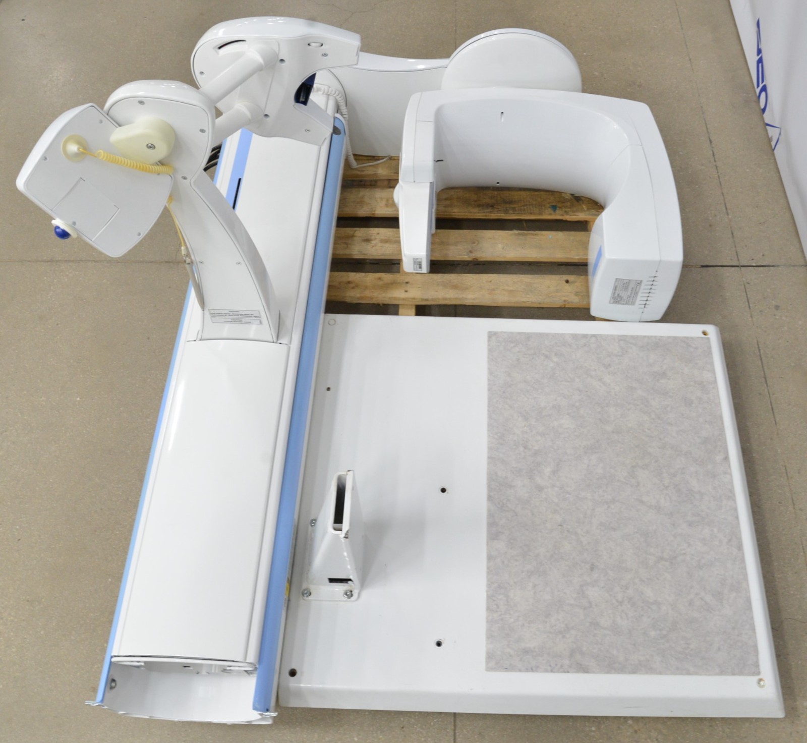 This Planmeca ProMax Panoramic Imaging Unit, Dimax3 is in good working condition. The unit powers on properly. The display screen produces a clear image with some pixilation and responds to selection. The exposure count is 3,442. There are scuff marks and the mouth guides are broken from previous use (see photos). The metal plate is missing for the unit to stand up and connected to the floor stand. This unit comes with a 30 day satisfaction guarantee. Includes everything in the pictures and nothing else.