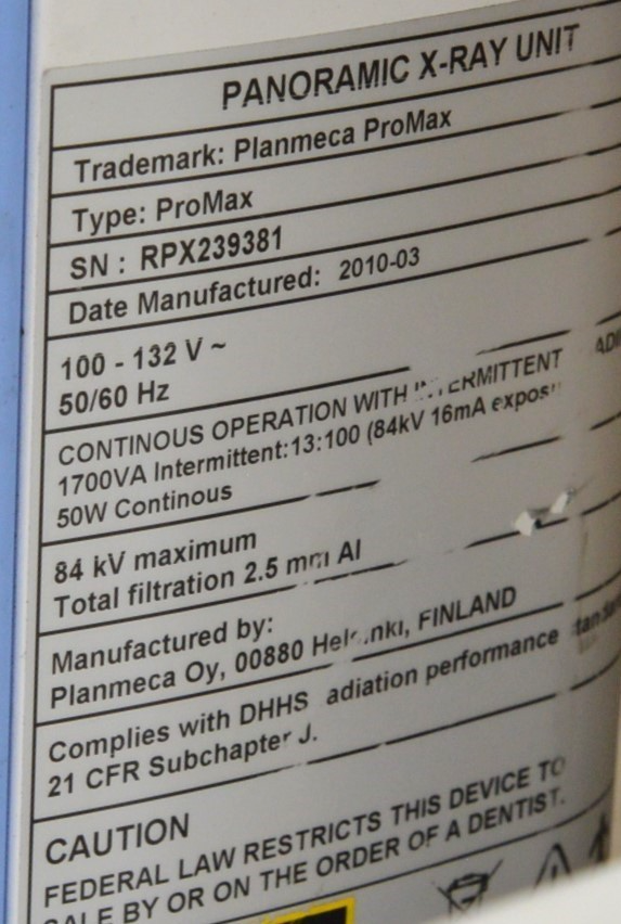 Planmeca ProMax Panoramic Imaging Unit, Dimax3