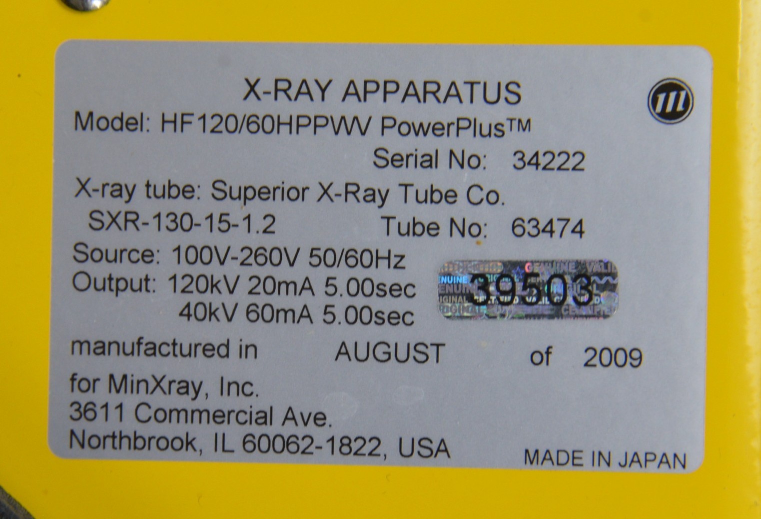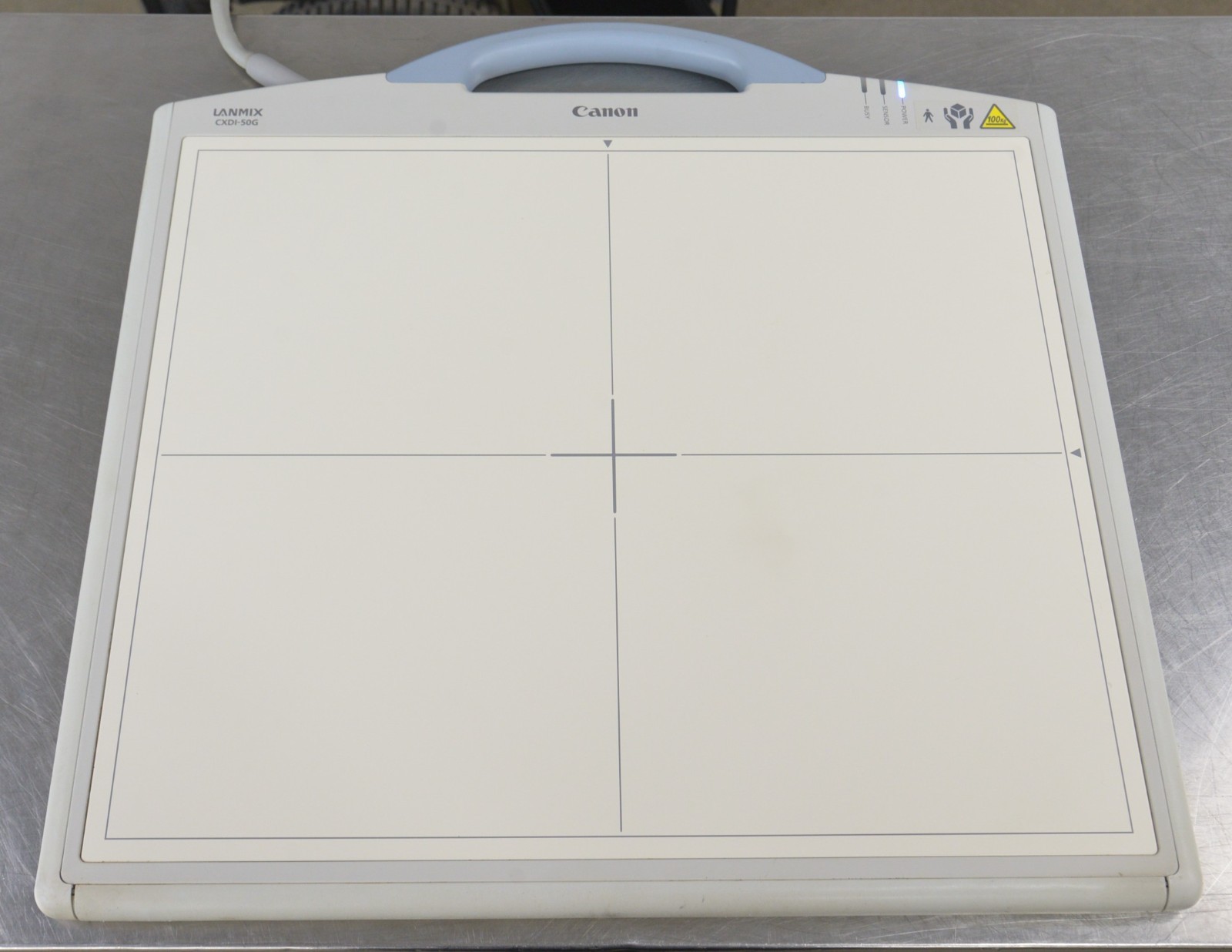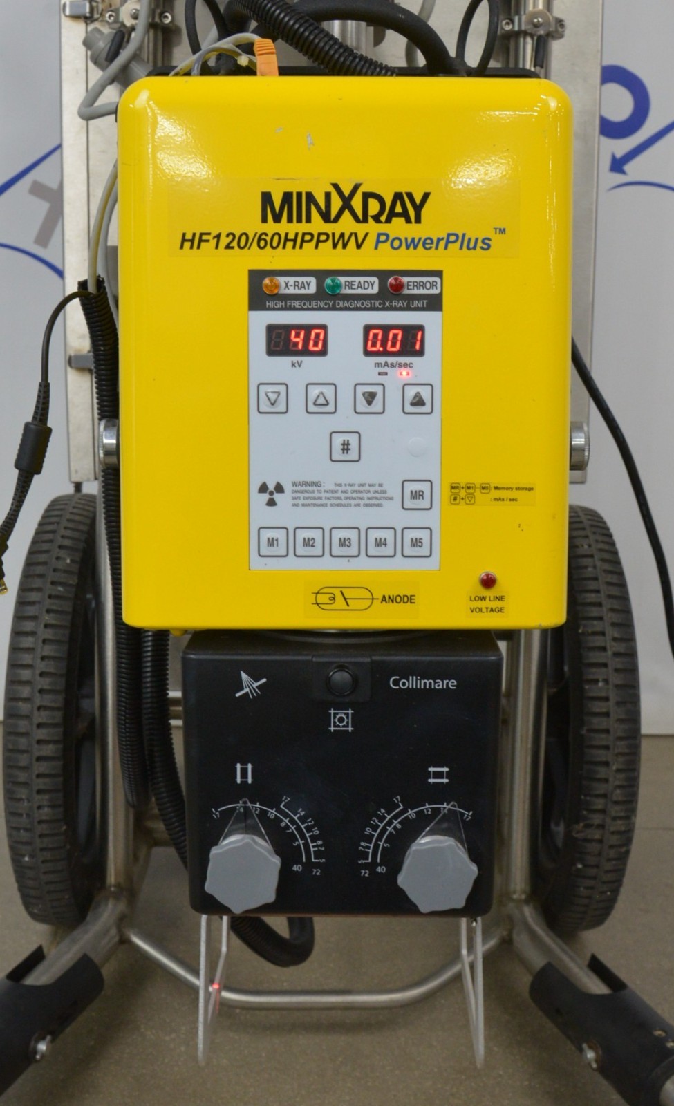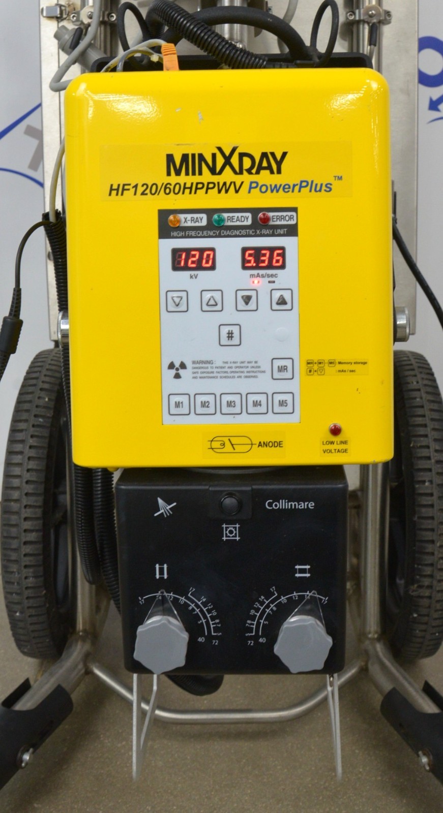 This PowerPlus HF120/60HPPWV Portable Apparatus W/Canon CXDI-50G & Power Box is in great working condition. The unit powers on and responds properly to selection. All manual adjustments move smoothly. The connections are clean and in good condition. There are scuff marks from previous use (see photos). The cable jacket to the Canon detector has minor damage; however, this does not effect the functioning. This unit comes with a 30 day satisfaction guarantee. Includes everything in the pictures and nothing else.